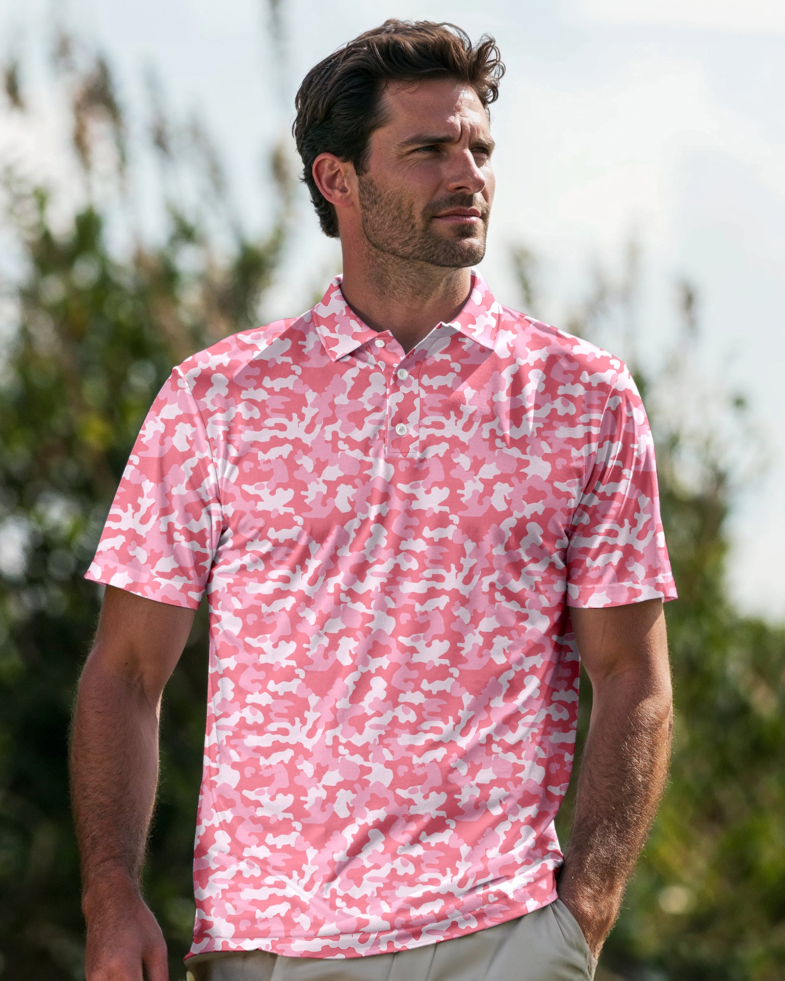 Step into the wild while standing out in style with our Pink Camo Polo. This bold shirt combines the classic silhouette of a polo with a playful pink camouflage pattern, perfect for those who want to make a statement. Crafted from soft, breathable fabric, it ensures comfort and durability, whether you're on a casual outing or an adventurous excursion. Embrace a unique blend of fashion and function with this eye-catching piece.