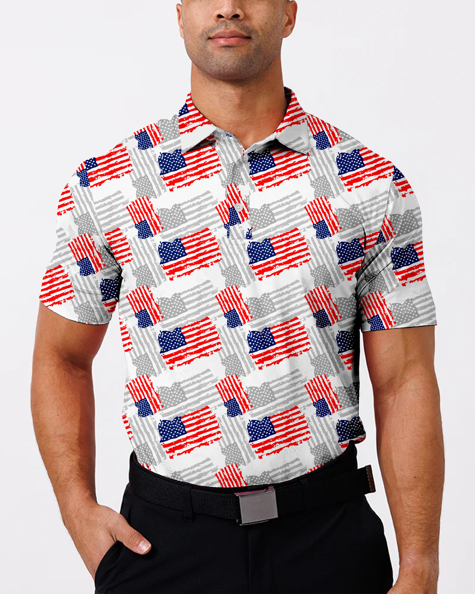 Show off your patriotic spirit with our American Fight Polo featuring a unique flag design. Made with high-quality materials, this polo is not only stylish but also comfortable to wear all day long. Perfect for any casual outing or sporting event, this polo will surely make a statement wherever you go. Get yours today and represent America in style!