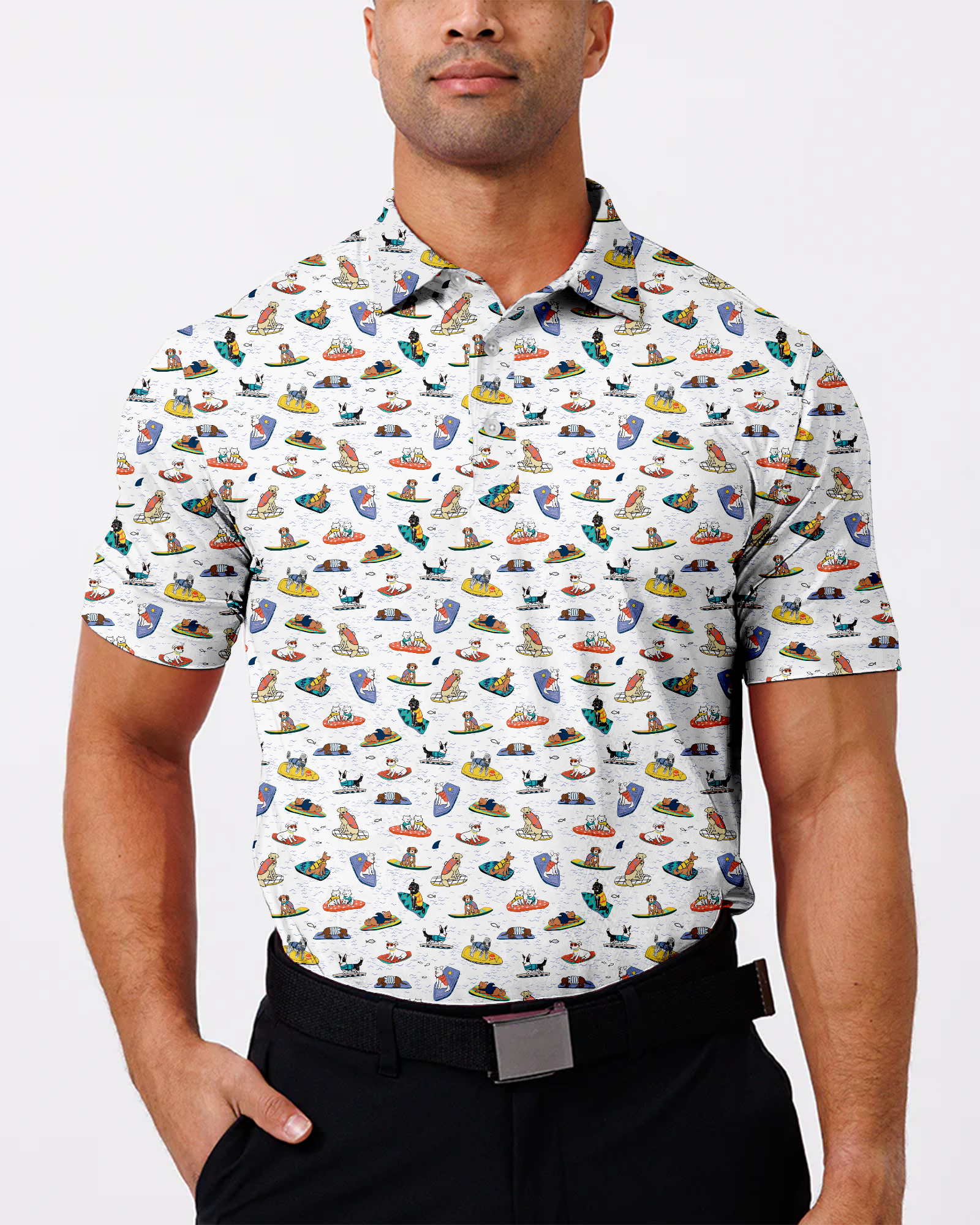 Get ready to hit the waves in style with our Boogie Board Dogs Polo! This fun and playful design features adorable dogs riding boogie boards, perfect for adding a touch of whimsy to your wardrobe. Made from high-quality materials, this polo is not only comfortable to wear but also durable for all your adventures. Whether you're hitting the beach or just hanging out with friends, this polo is sure to make a statement. Upgrade your casual look with the Boogie Board Dogs Polo today!