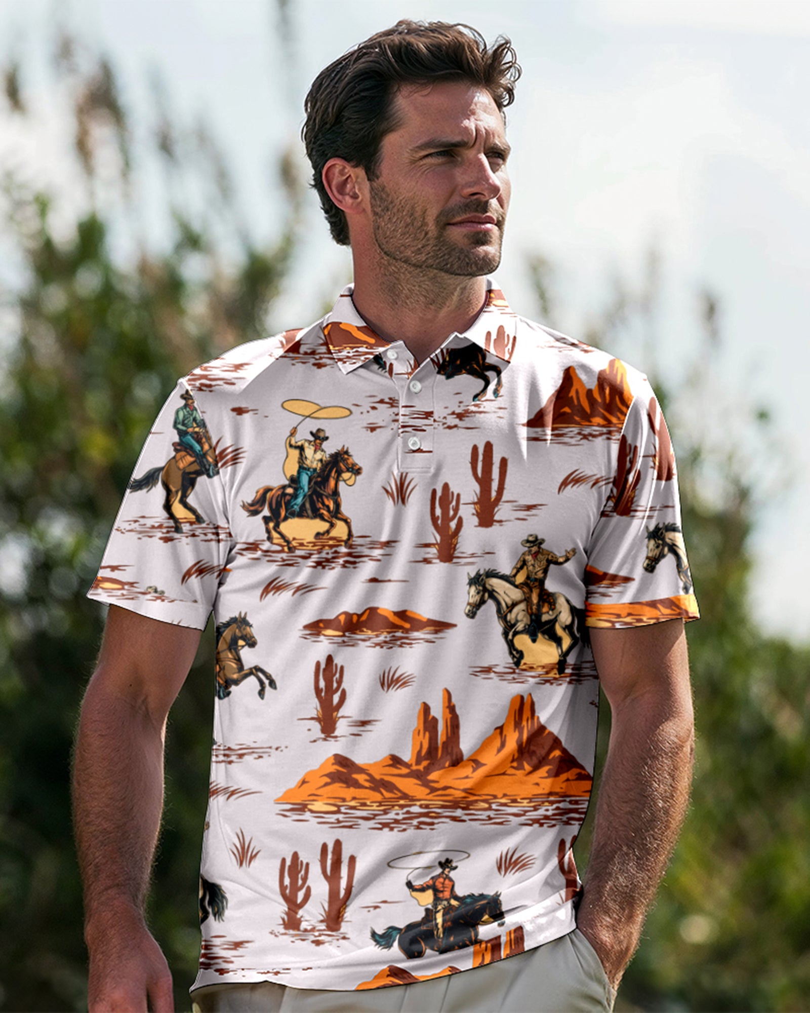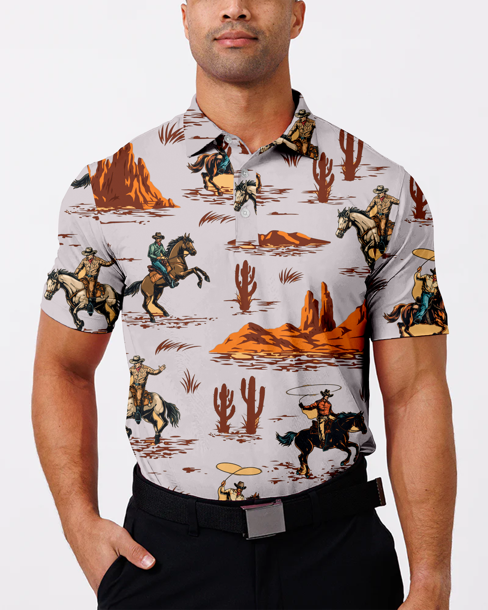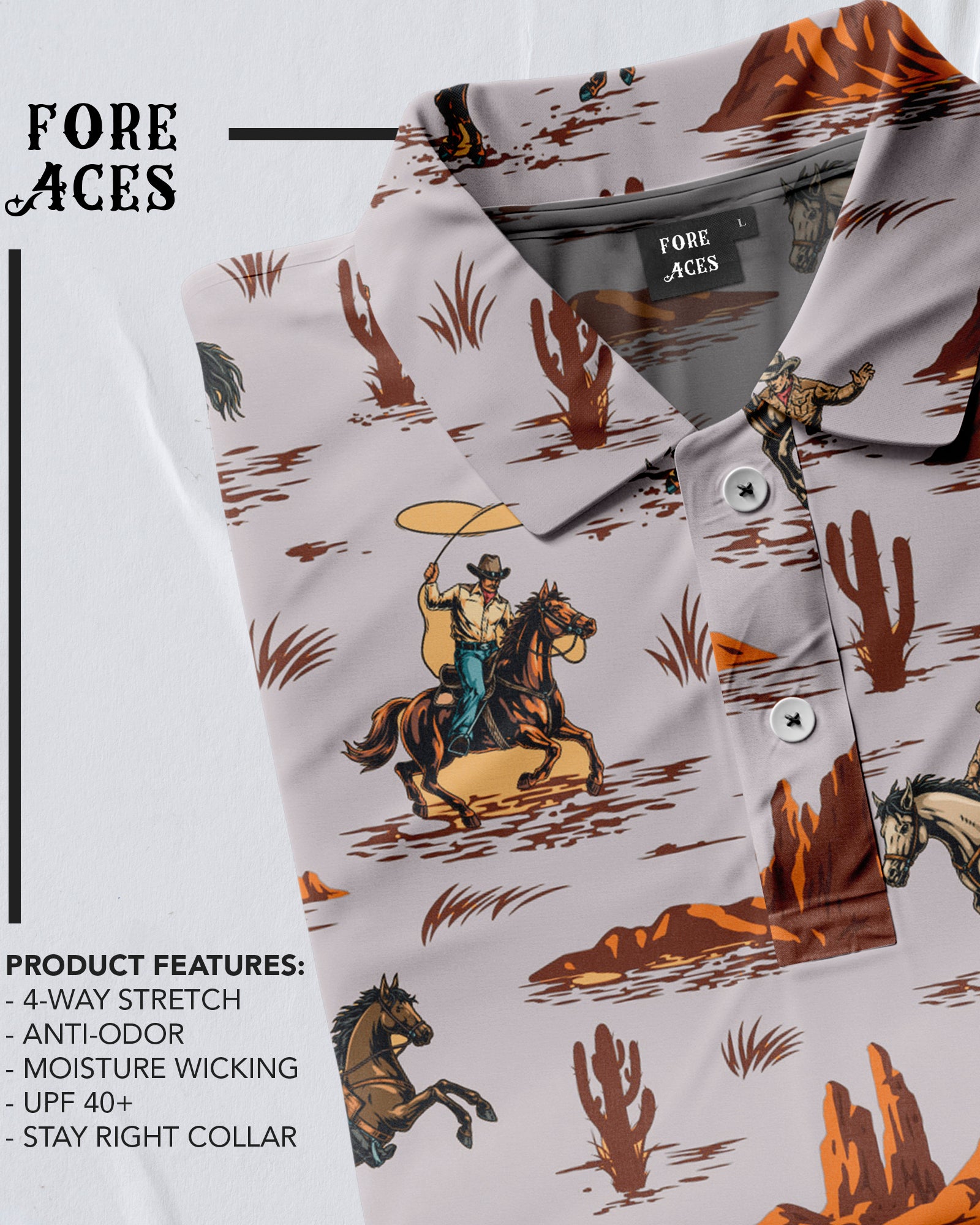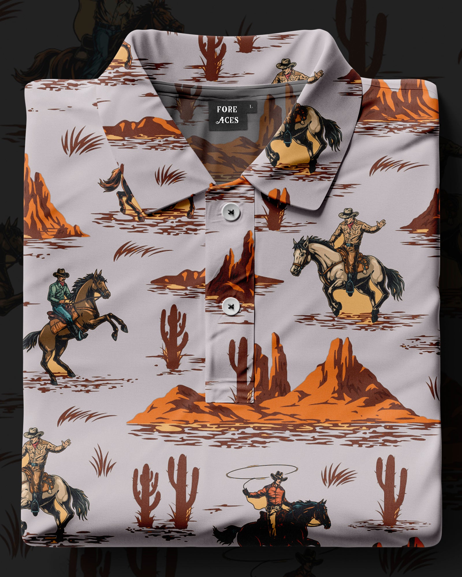 Introducing the Cowboy Ways Polo golf shirt, a stylish and comfortable option for your next round on the course. Made with high-quality materials, this polo features a classic cowboy-inspired design that will make you stand out on the green. With its moisture-wicking fabric and breathable construction, you'll stay cool and dry from the first hole to the last. Whether you're a seasoned pro or just starting out, the Cowboy Ways Polo golf shirt is the perfect choice for any golfer looking to add a touch of western flair to their game.