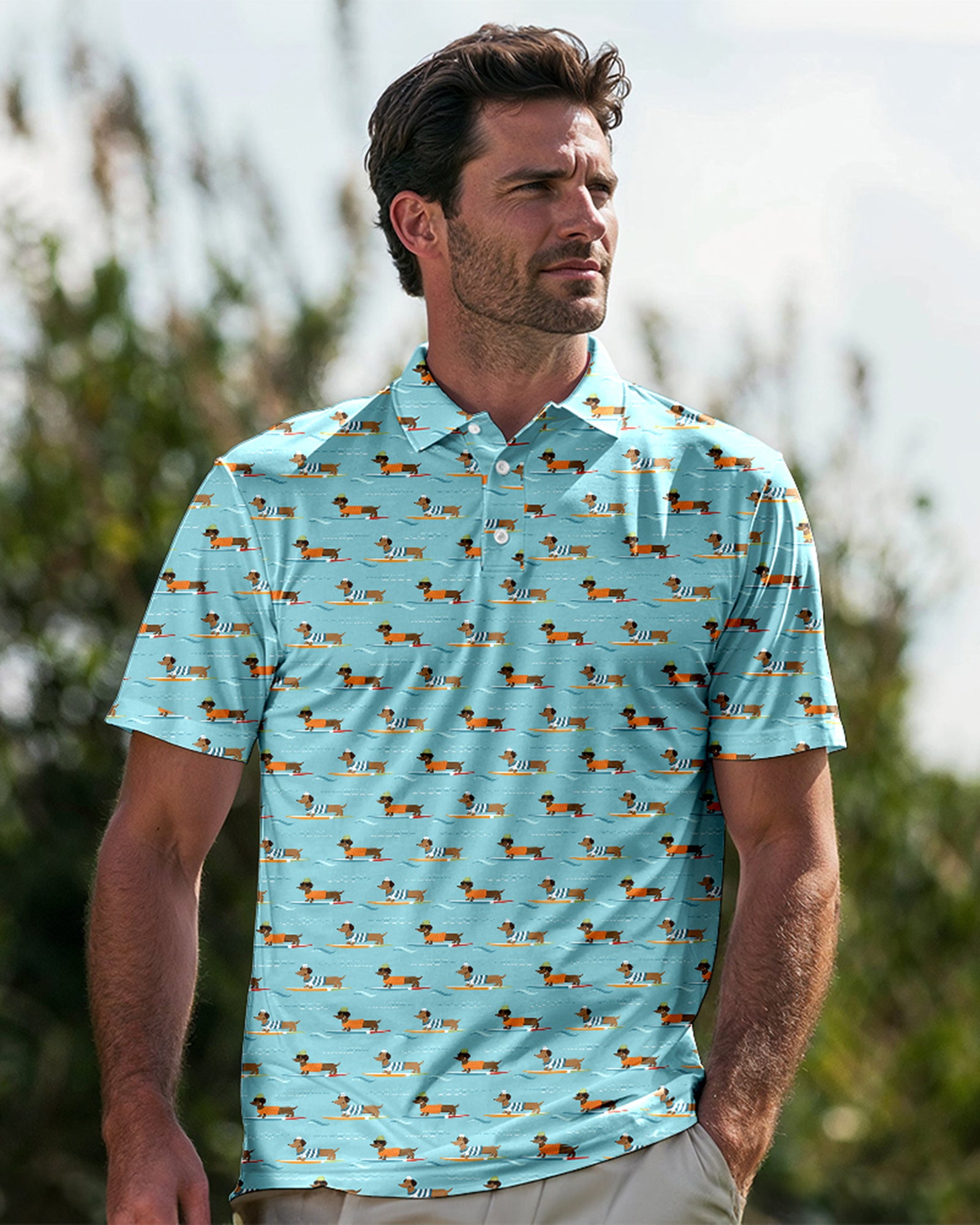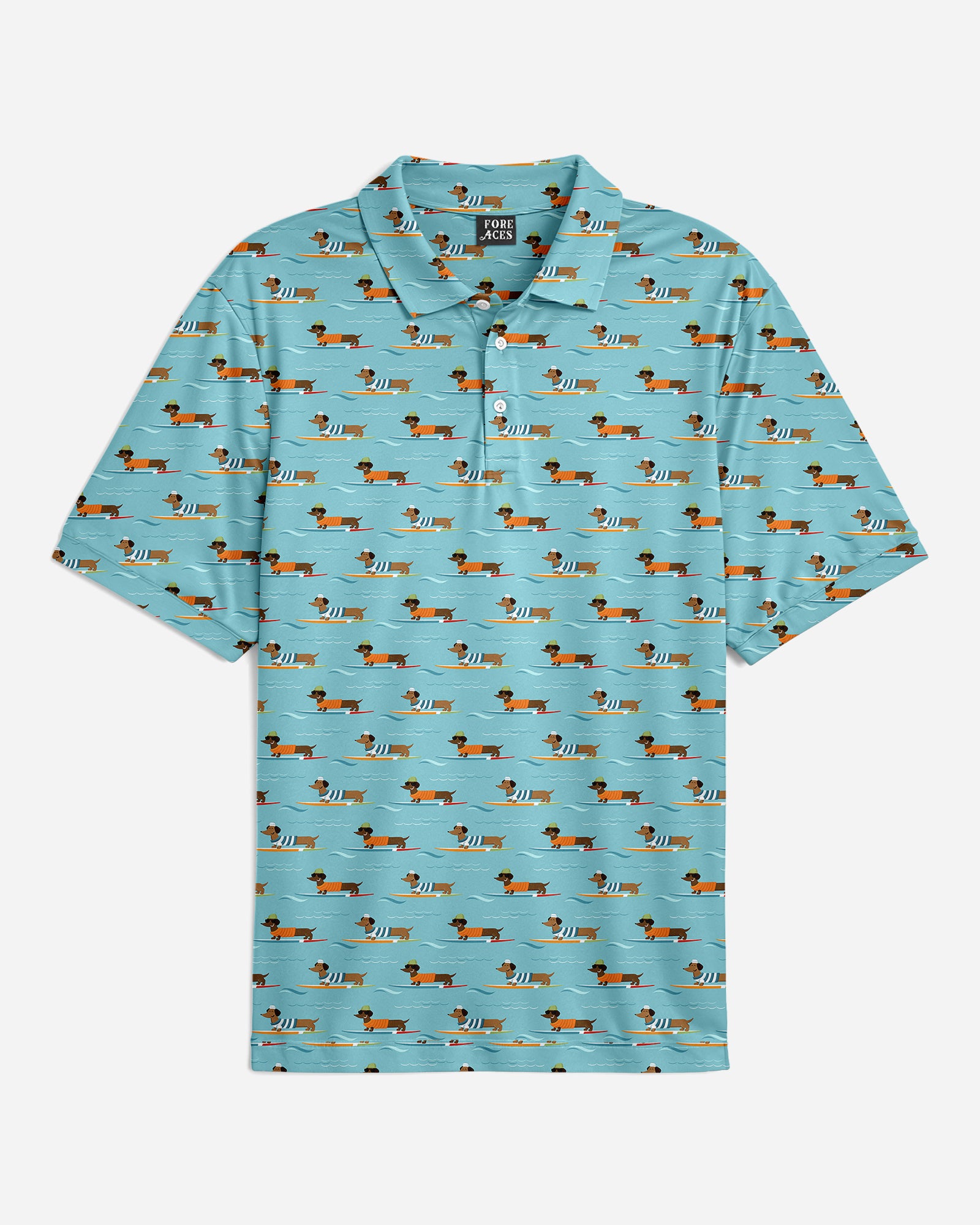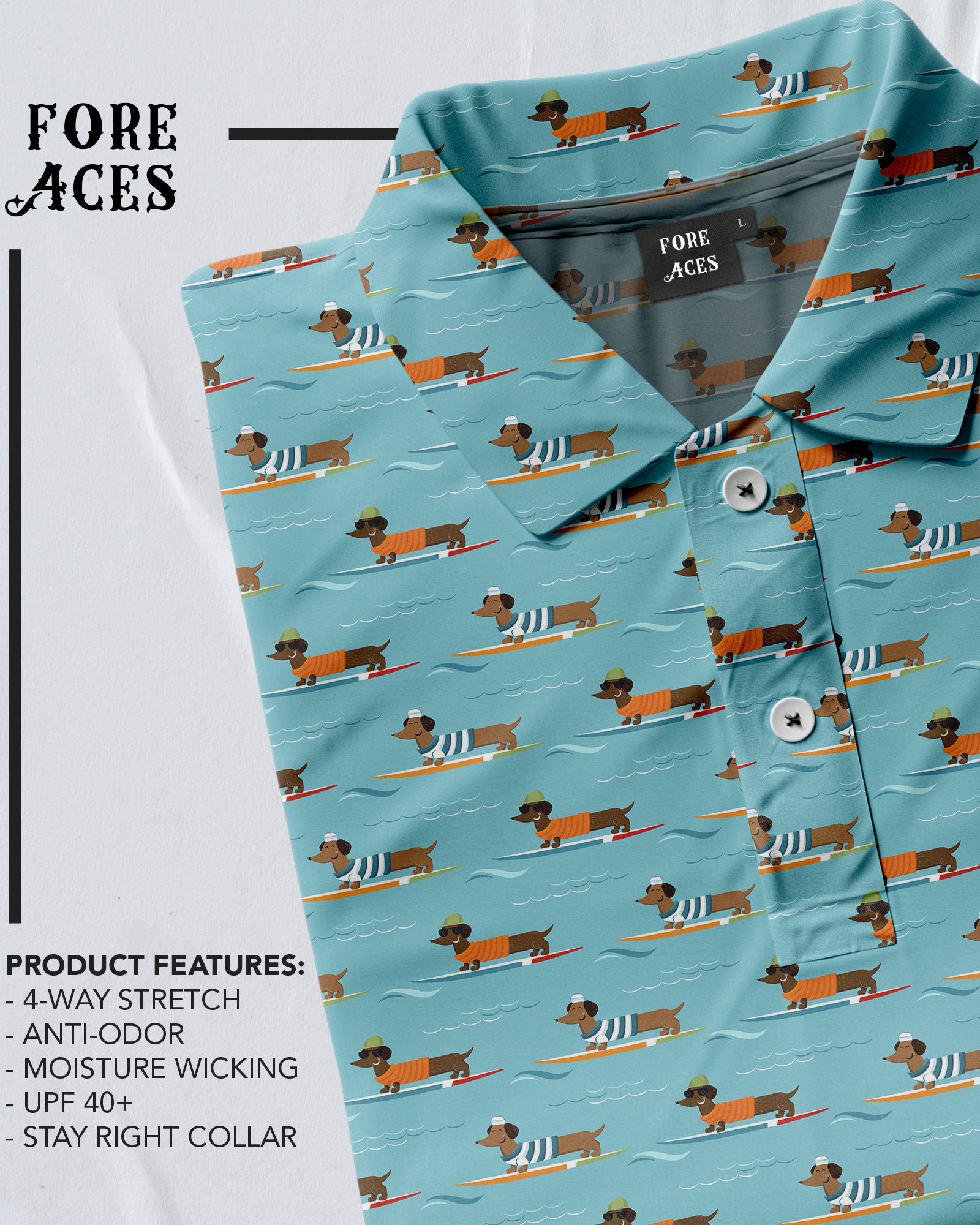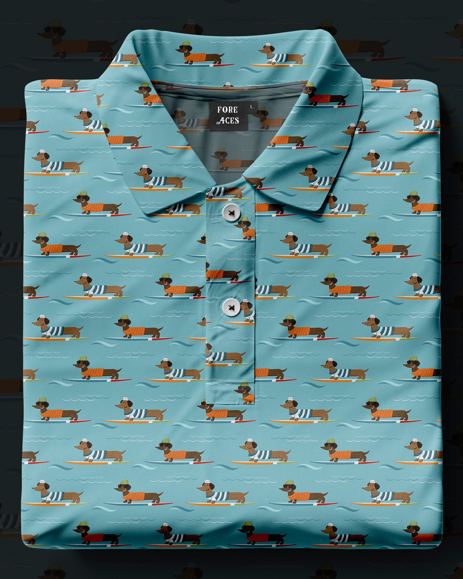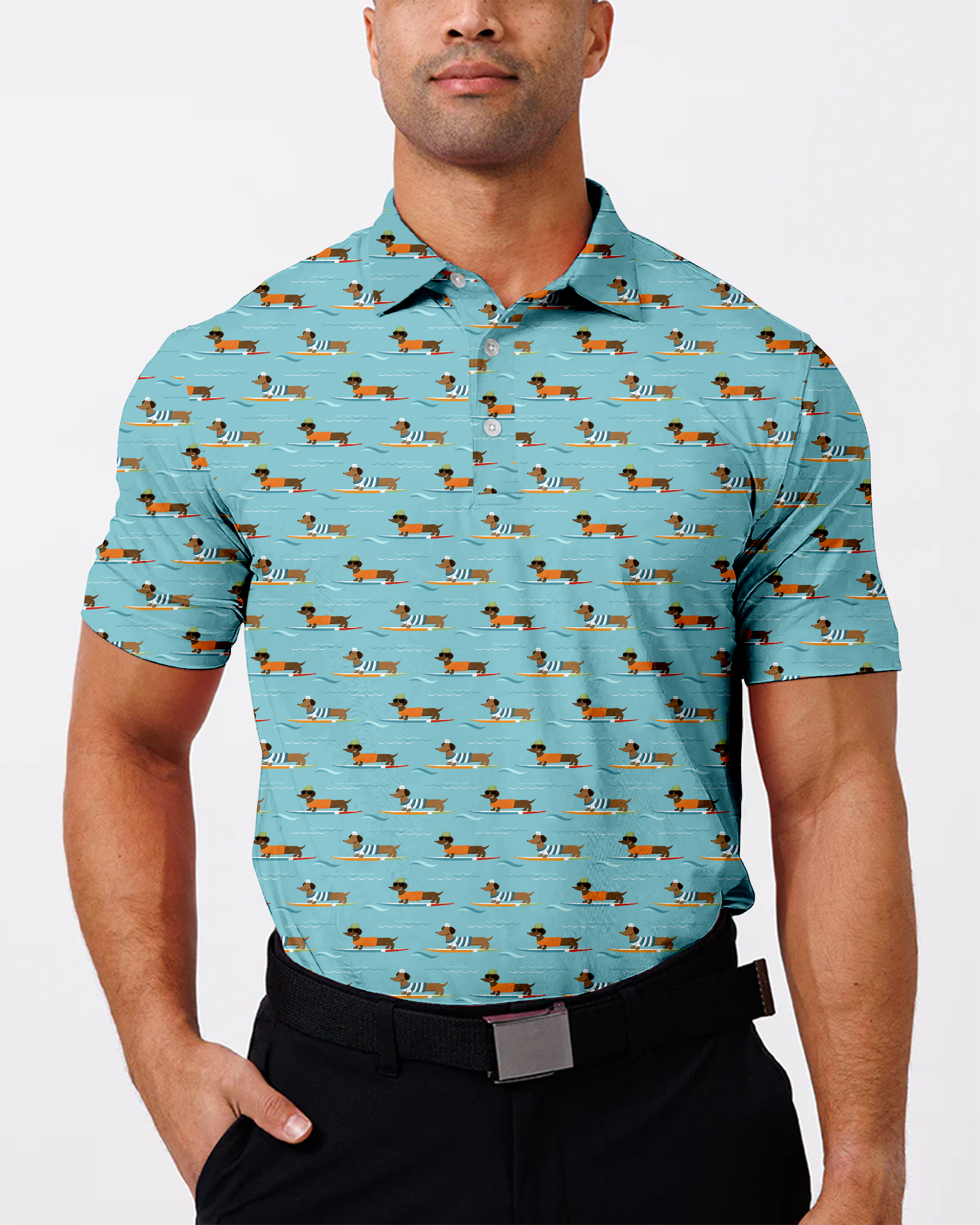 Get ready to hit the waves in style with our Dachshund Surf Polo! This unique polo features a fun design of dachshund dogs catching some waves while surfing, perfect for any golf enthusiast who loves these adorable pups. Made with high-quality materials, this polo is not only stylish but also comfortable to wear on and off the golf course. Stand out from the crowd with this one-of-a-kind shirt that showcases your love for dachshunds and surfing.