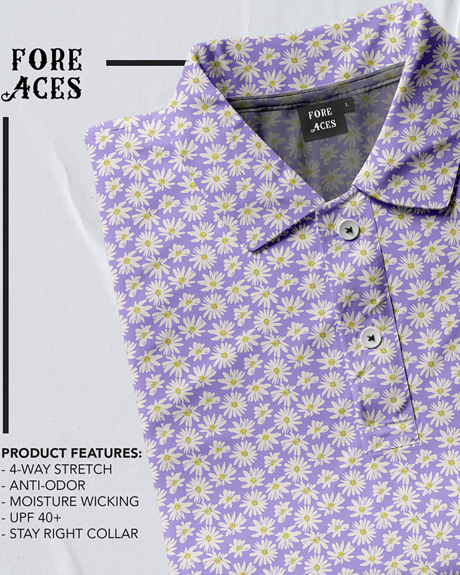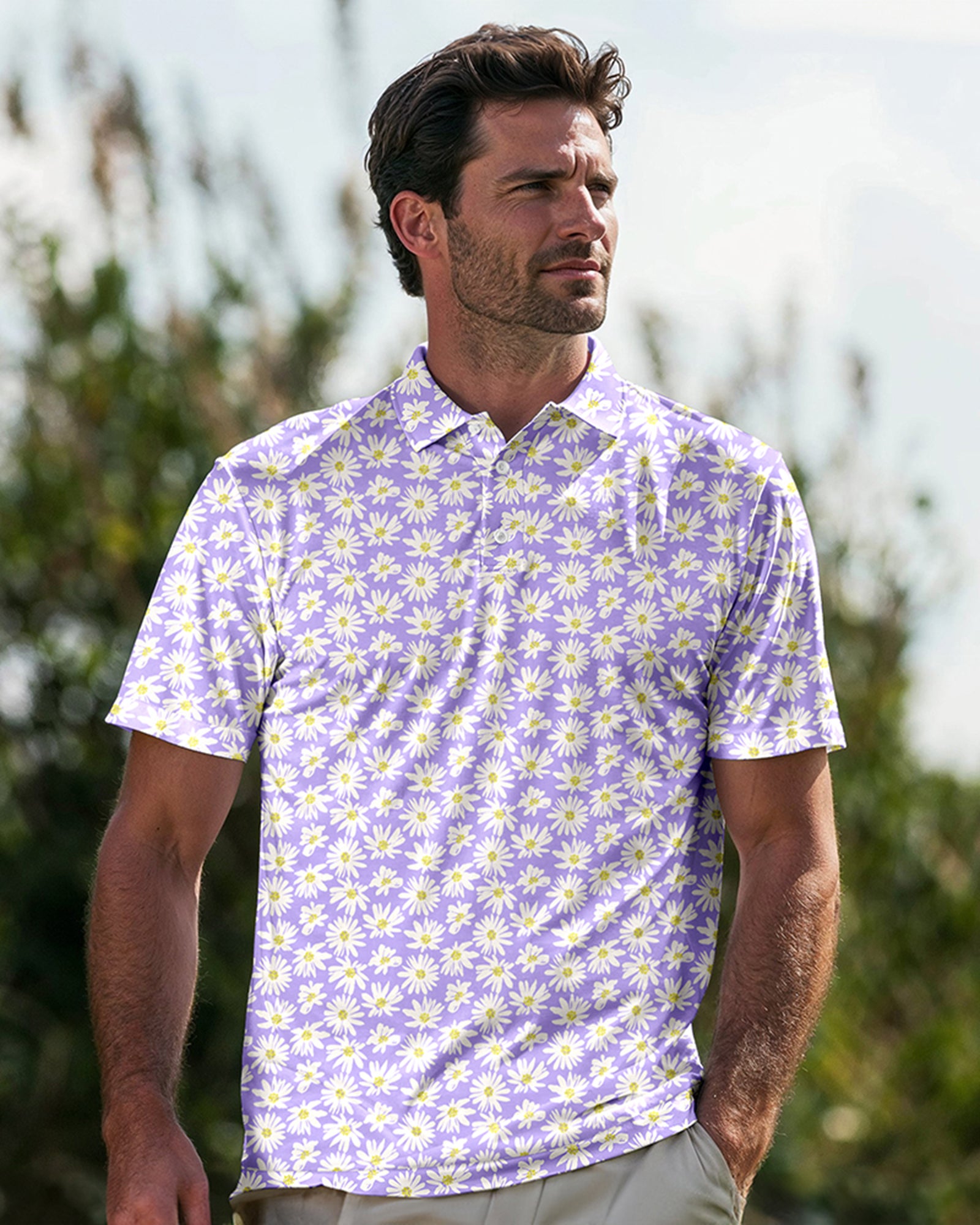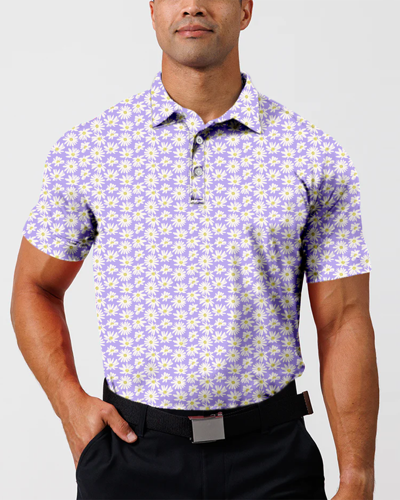 Step into the sunshine with the Fall Daisies Polo! This shirt is not just a fashion statement, it's a mood booster. With its cheerful daisy print, you'll spread smiles as if you were handing out flowers. It's made with a breathable fabric that keeps you cool, even when the heat is on. Plus, the easy-care material means