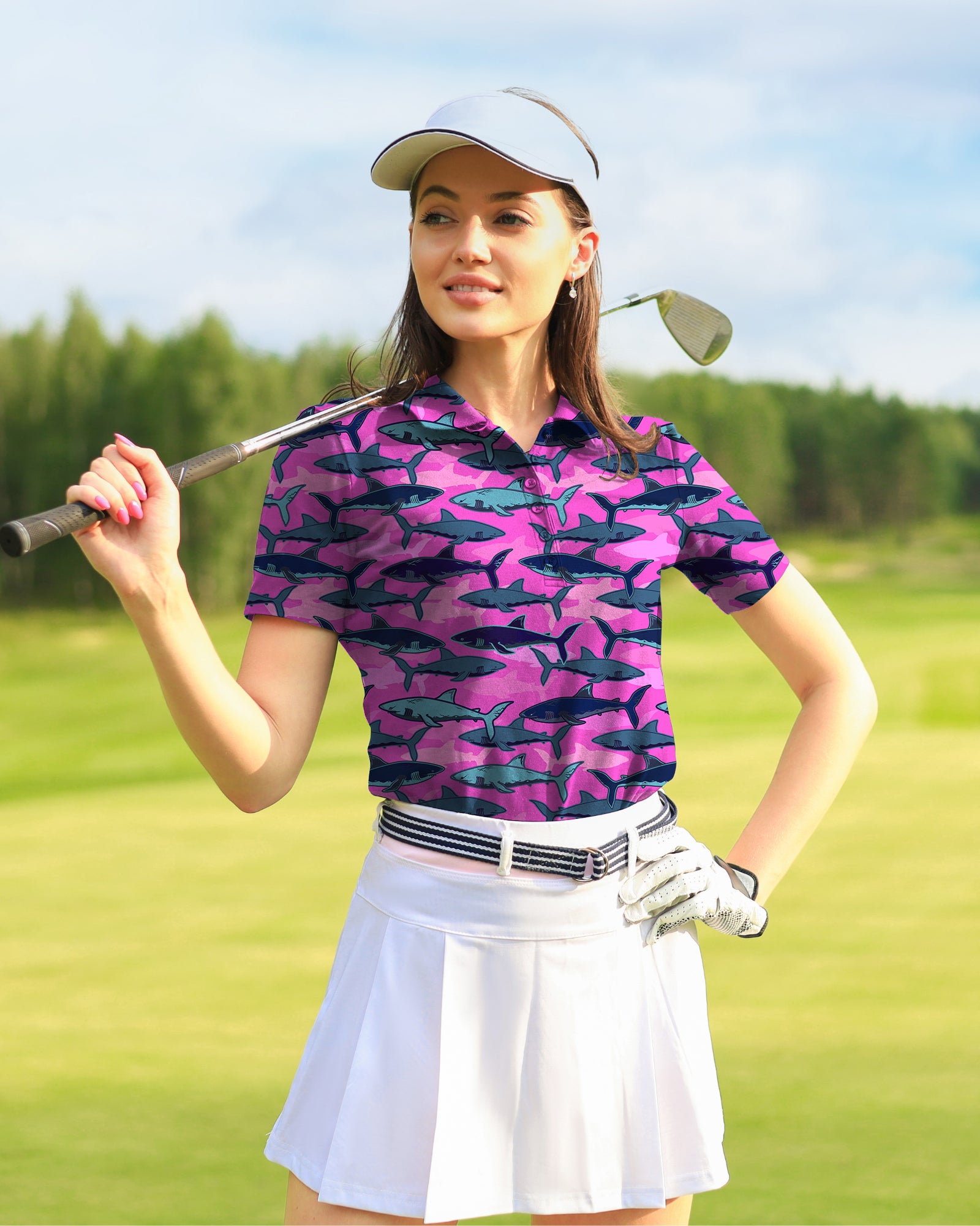 Ladies you belong on the course! We made our Electric Sharks Polo so you can stand out, feel confident, and show everyone you're here to have a great time. We're changing the golf game for women one polo at a time!