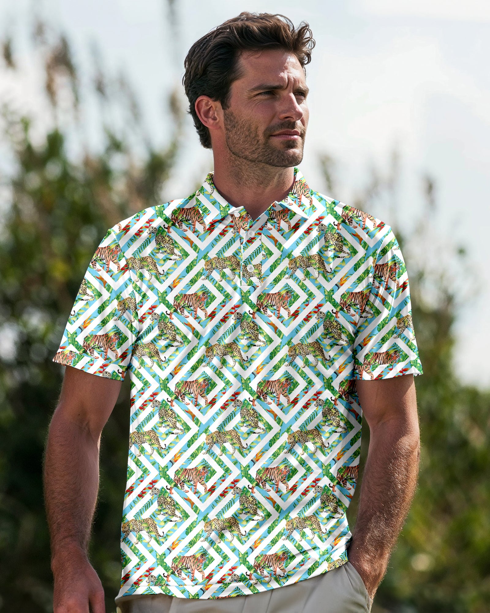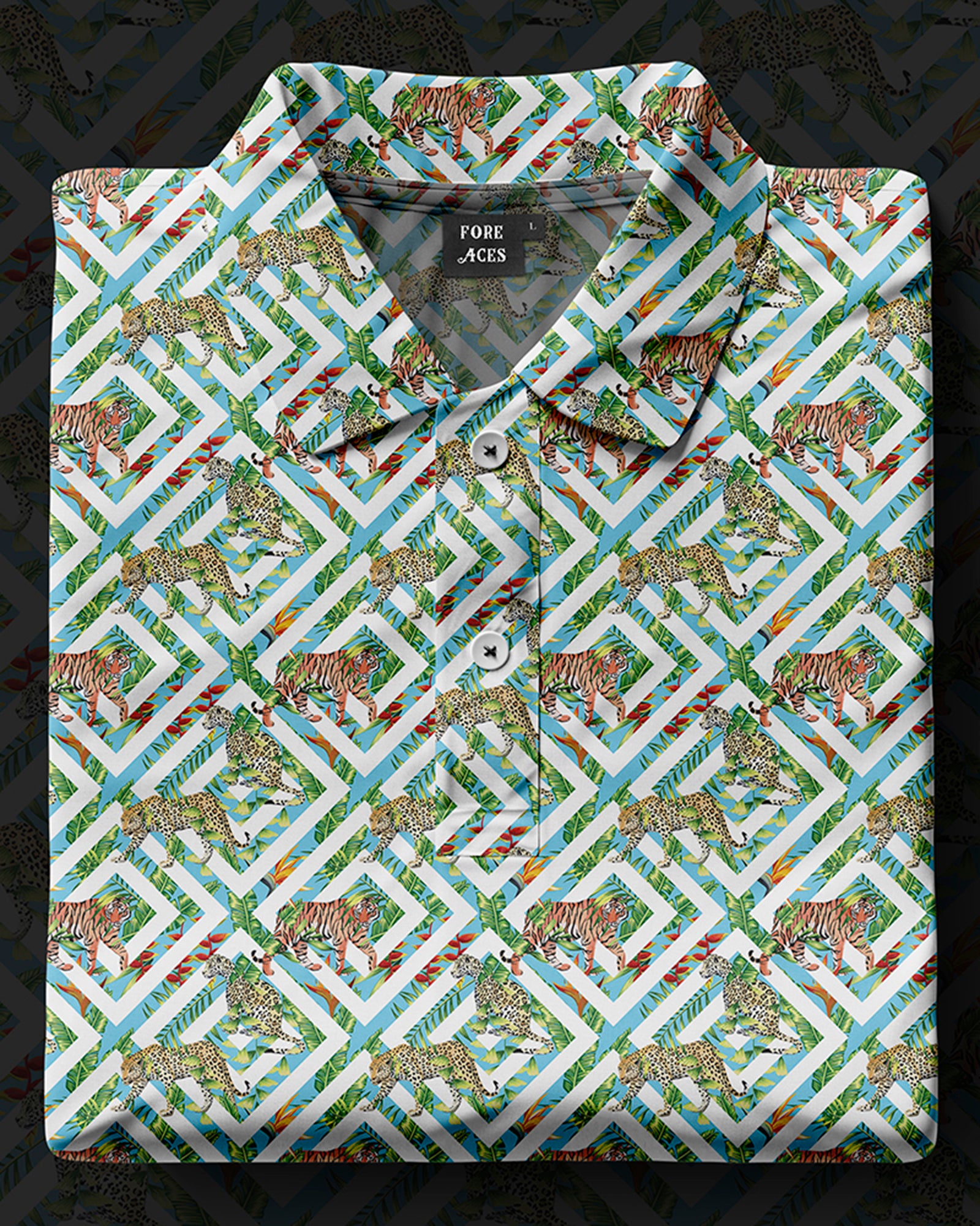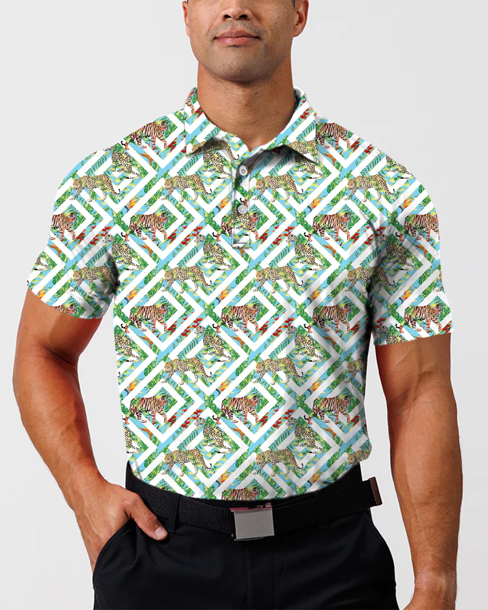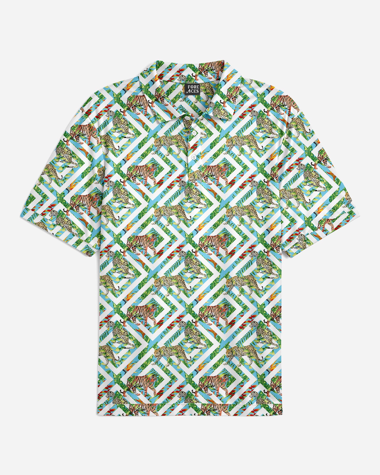 Introducing the "Fierce Jungle" Polo – where untamed elegance meets the sophistication of the fairway. Crafted with meticulous attention to both style and performance, the "Fierce Jungle" Polo ensures you command attention on the course with its bold and daring motif. Step into the wild side of golfing fashion, exuding confidence and flair with every swing. Embrace the spirit of the jungle and unleash your inner beast.