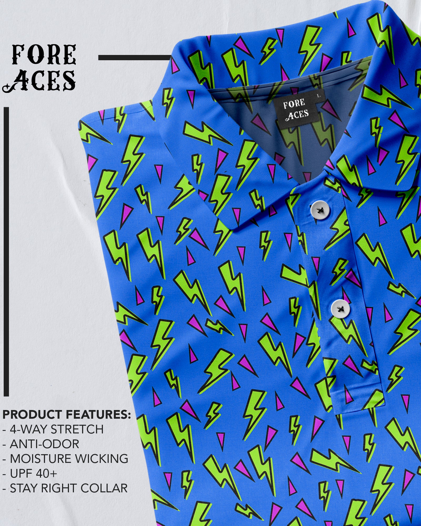 Turn heads on the golf course with the 'Flash Polo' and its striking lightning bolt design. This shirt is perfect for golfers who want to bring a jolt of humor and style to their game, leaving others in awe of their electrifying fashion sense.