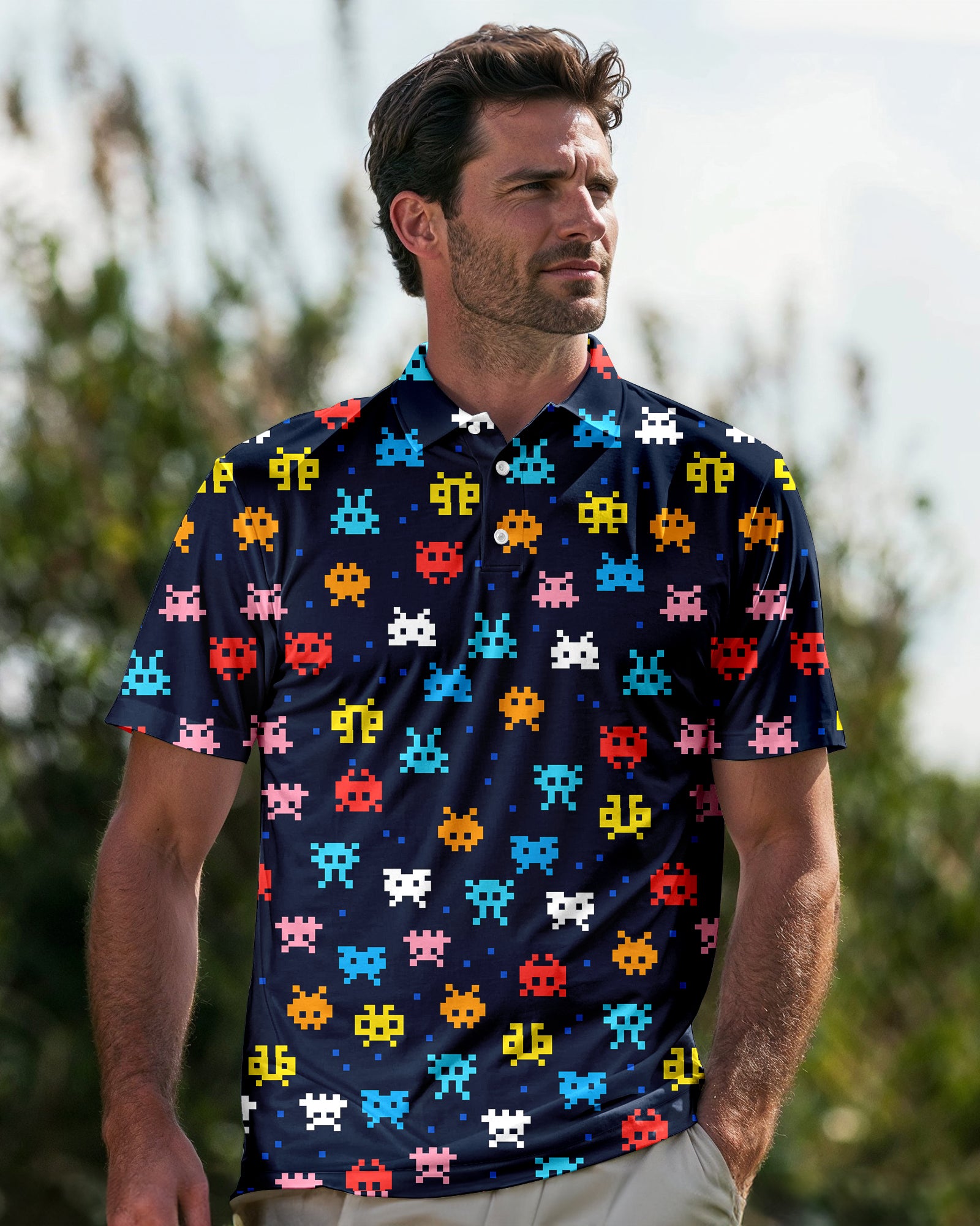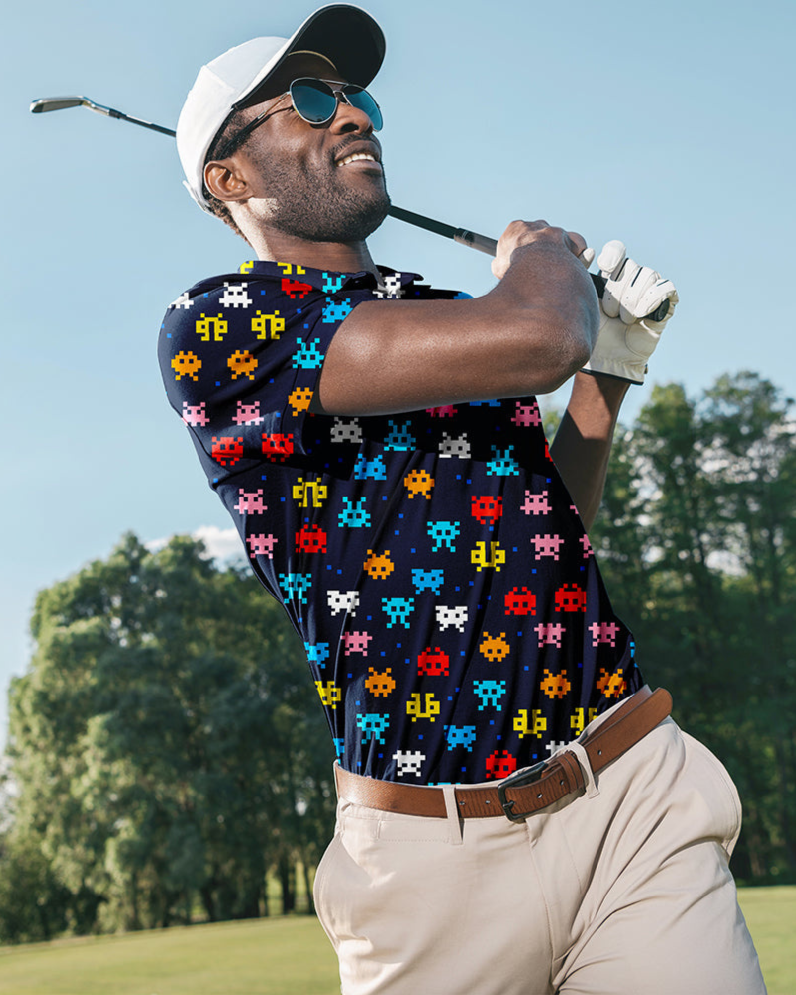 Unleash your inner gamer on the greens with the 'Good Ole Game' polo, featuring a playful gaming icon that adds a touch of pixelated charm to your golf attire. It's a stylish fusion of virtual nostalgia and real-life golfing prowess, making sure you're ready to level up your game in style.