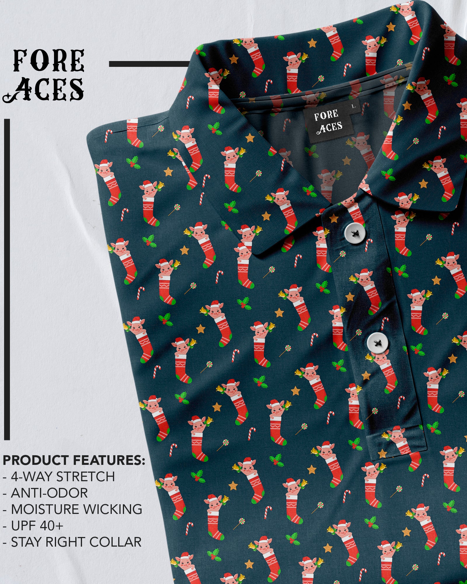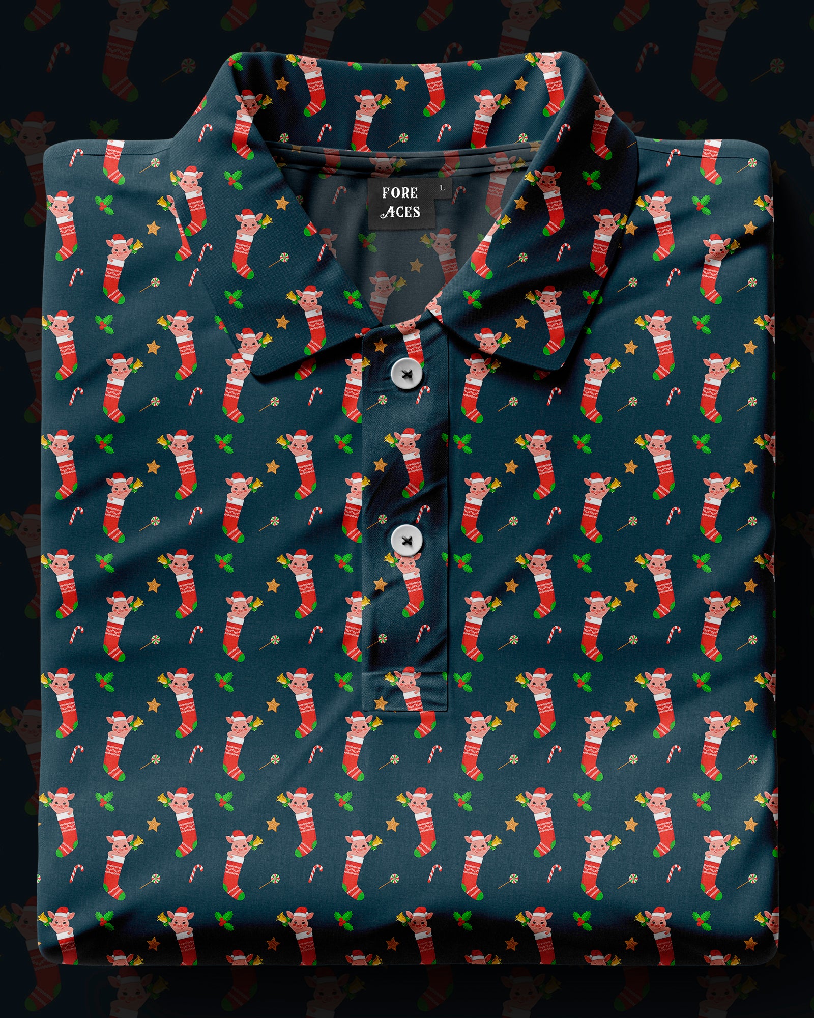 Celebrate the season with a playful twist in the Jolly Piglet Polo! Featuring an adorable design of tiny pigs snugly nestled in festive stockings, this polo is the perfect blend of holiday cheer and quirky charm. Crafted from premium, soft-touch fabric, it’s as comfortable as it is cute—ideal for holiday parties, cozy gatherings, or simply spreading smiles wherever you go. Add a dash of whimsy to your winter wardrobe and make this delightful design your go-to for festive fun!
