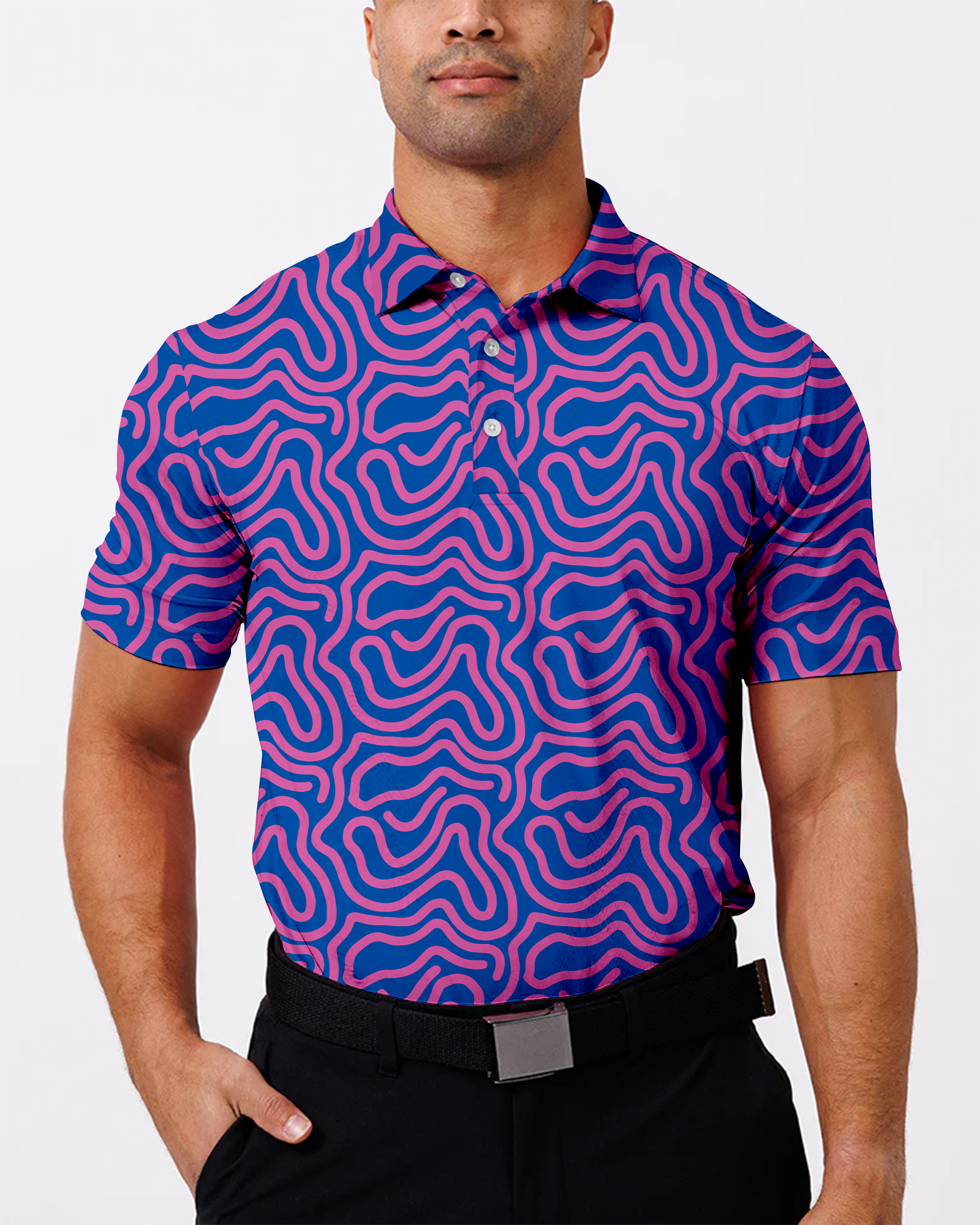 Introducing the Maze Craze Polo golf shirt, the perfect blend of style and functionality for your next round on the course. Made with high-quality materials, this polo offers a comfortable fit and allows for a full range of motion during your swing. The unique maze design adds a touch of modern flair to your golf wardrobe, making you stand out on the green. Stay cool and confident in the Maze Craze Polo as you navigate the course with ease.