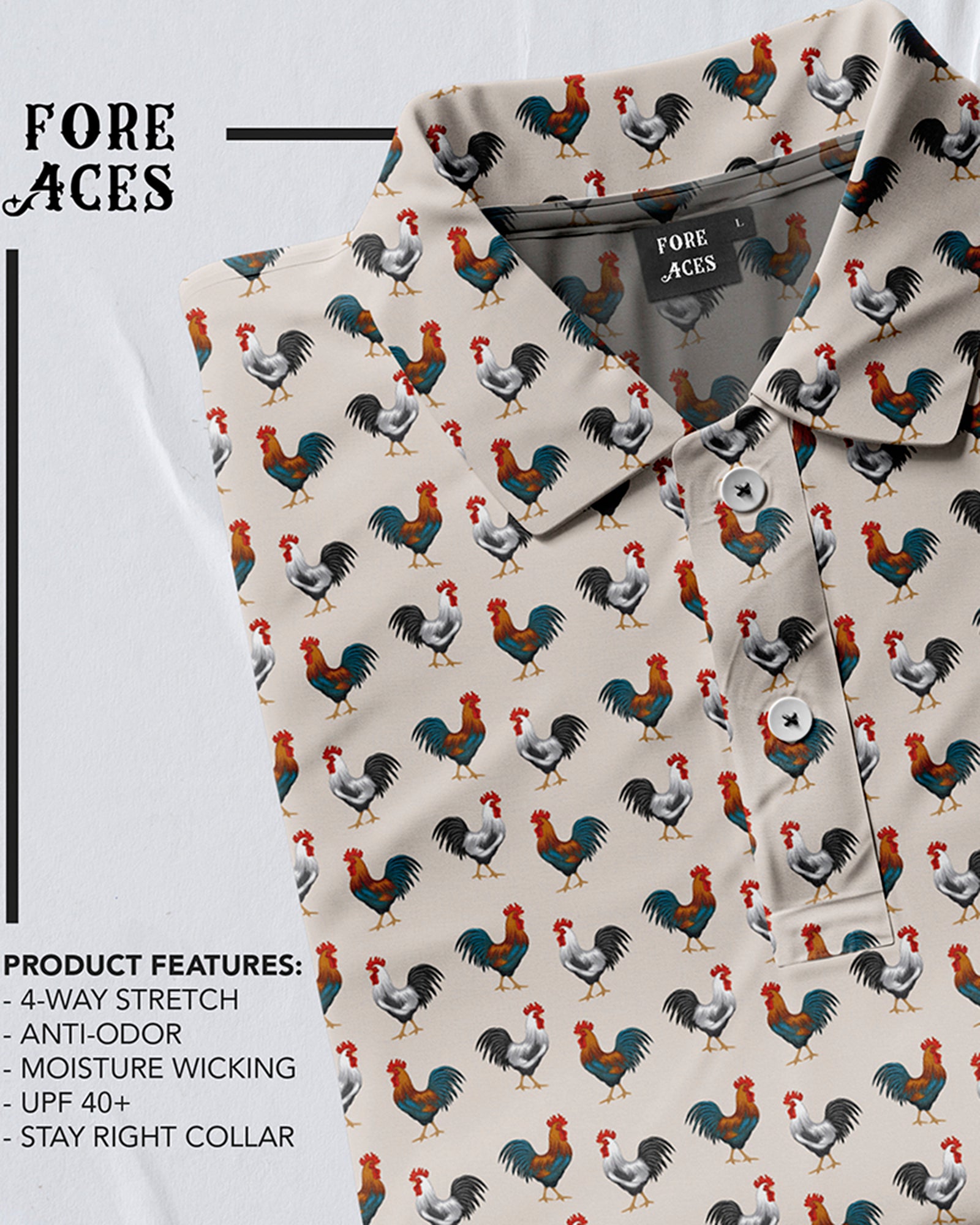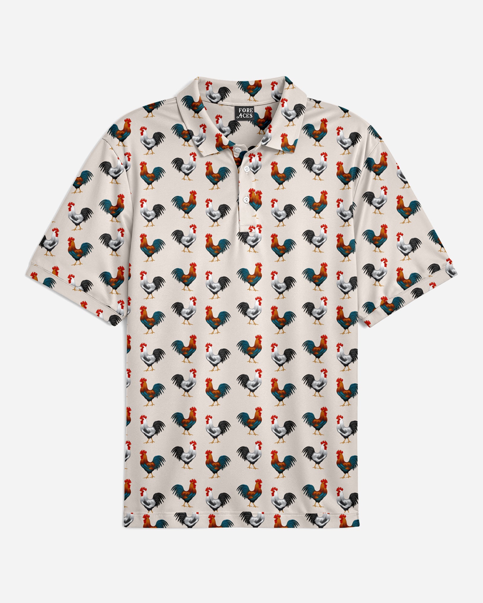 Get your feathers ruffled in style with the Mr. Cocky Polo! Roam the greens with a swagger that says, 'I'm clucking awesome!' Just watch out for the fowl language on the scorecard! Good cluck to you this season!