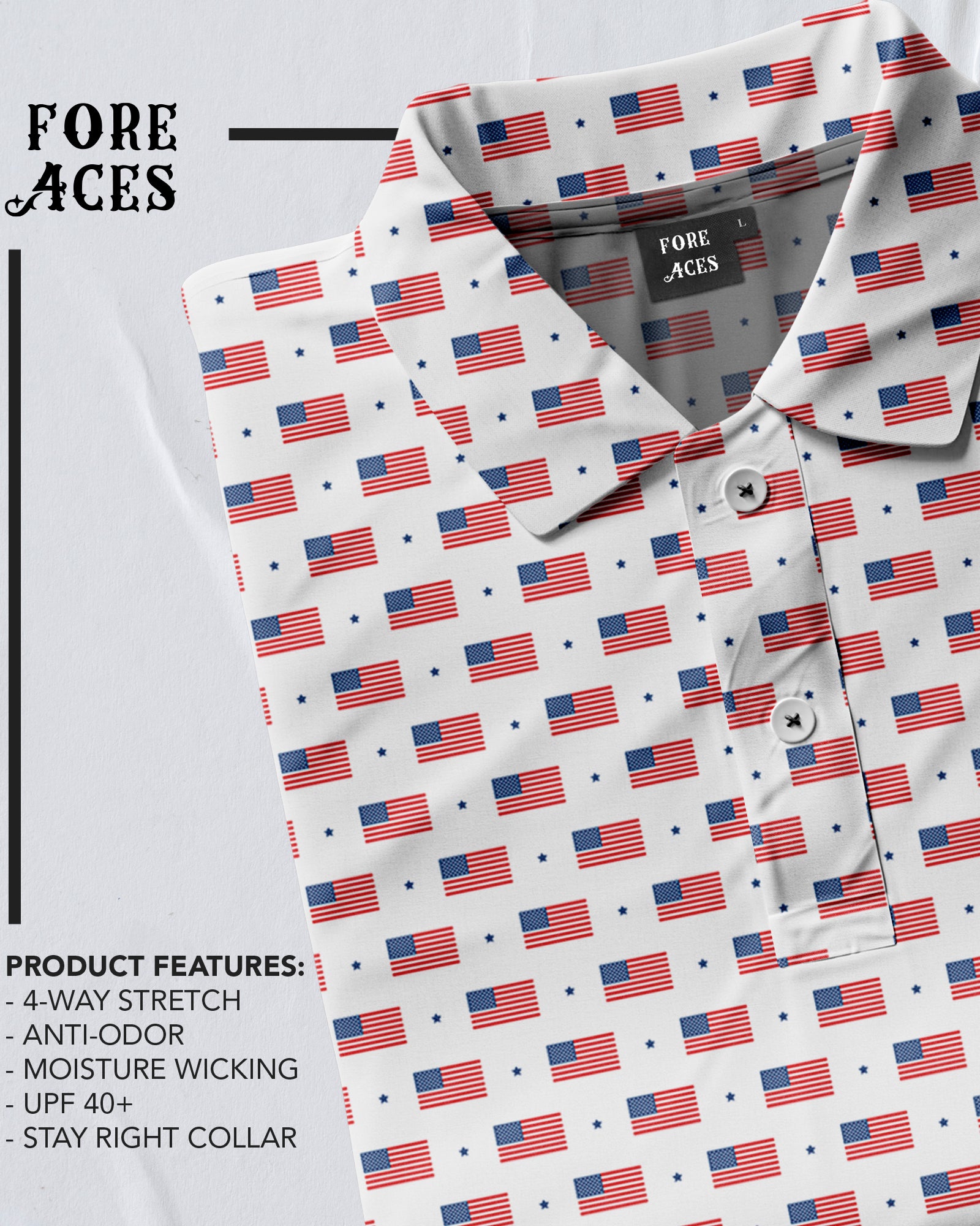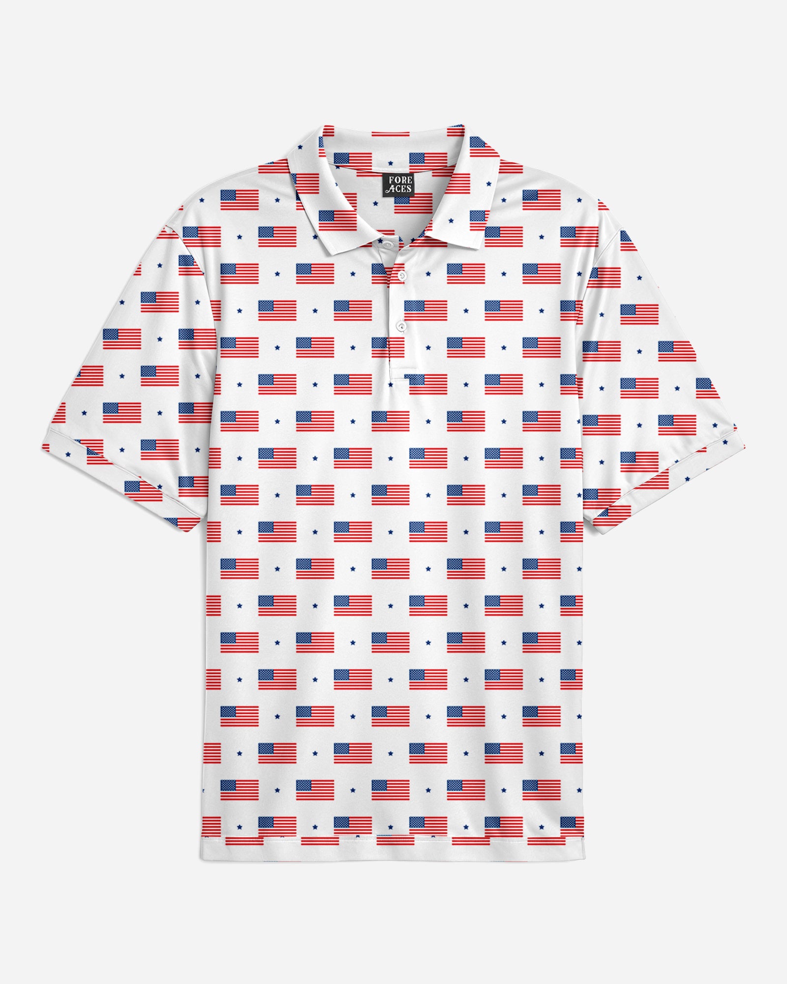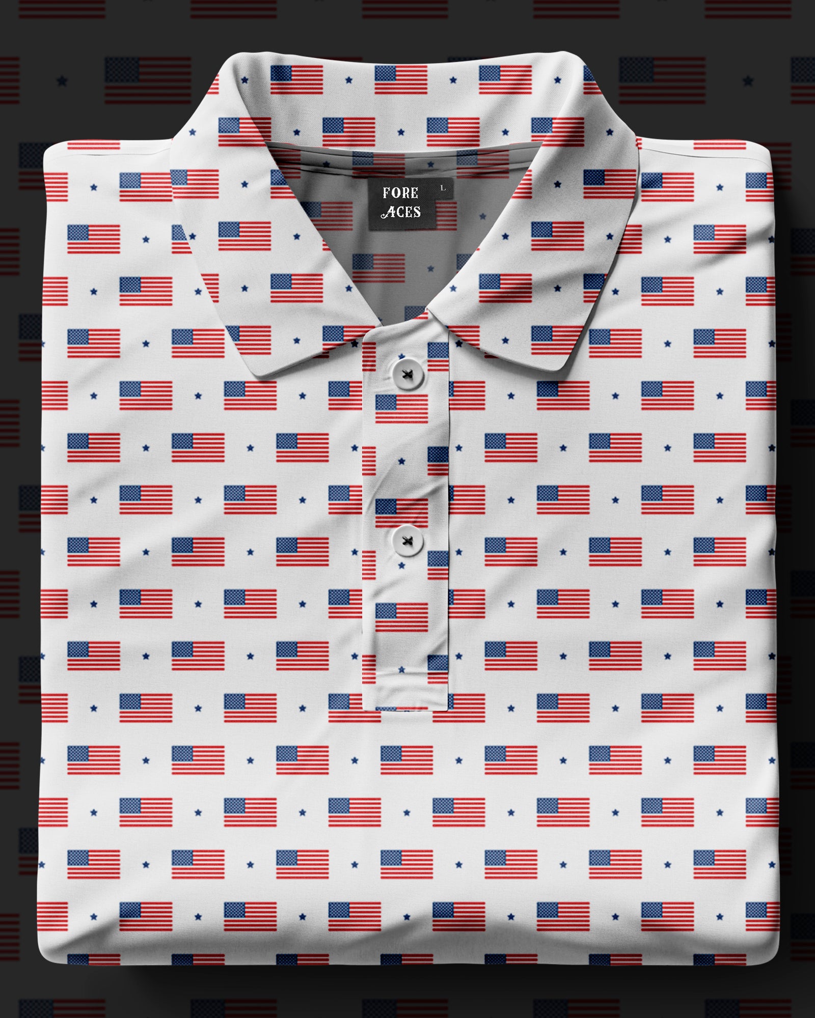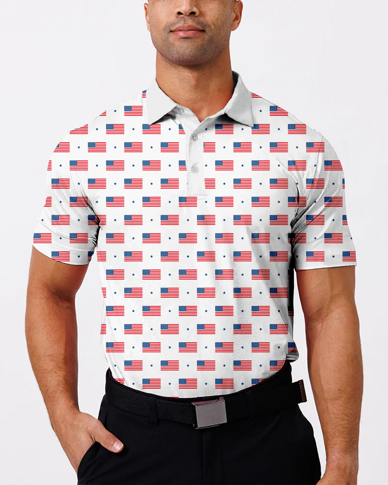 Embrace the spirit of patriotism with the Murica Polo, a stylish garment that's perfect for any casual occasion or golf course outing. This polo features a vibrant American flag design, often with the stars and stripes displayed prominently. Made with comfortable, breathable fabric, it's ideal for those warm summer days. Whether you're attending a Fourth of July barbecue or just showing your pride year-round, the Flag Polo is a versatile addition to any wardrobe.