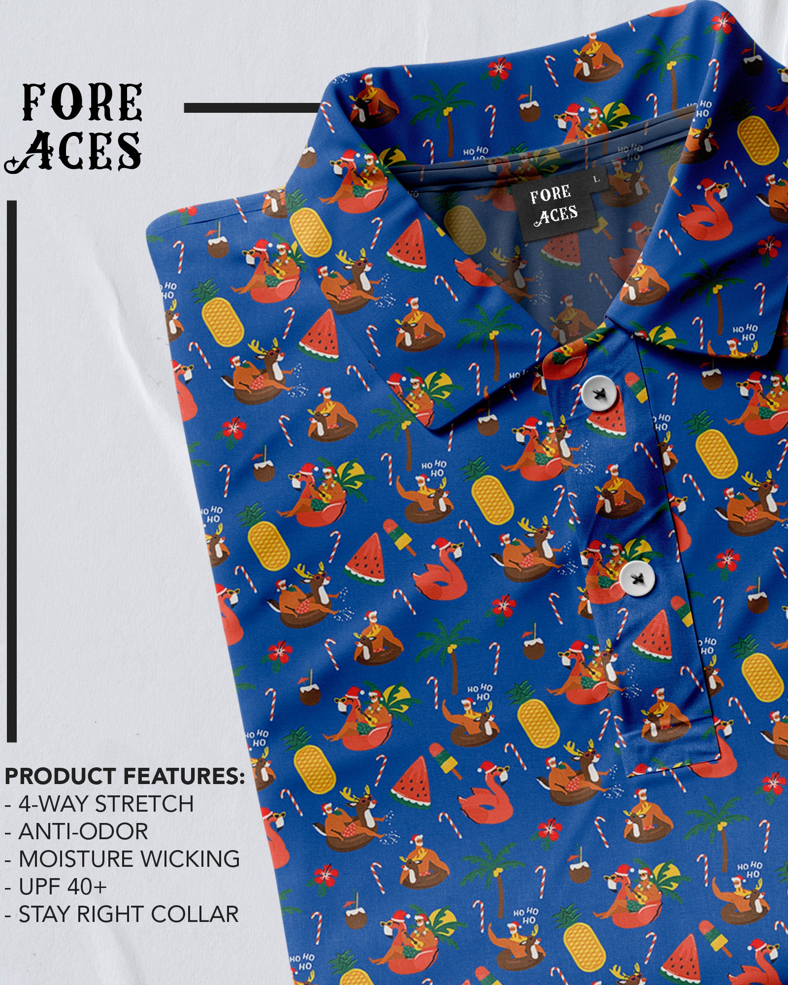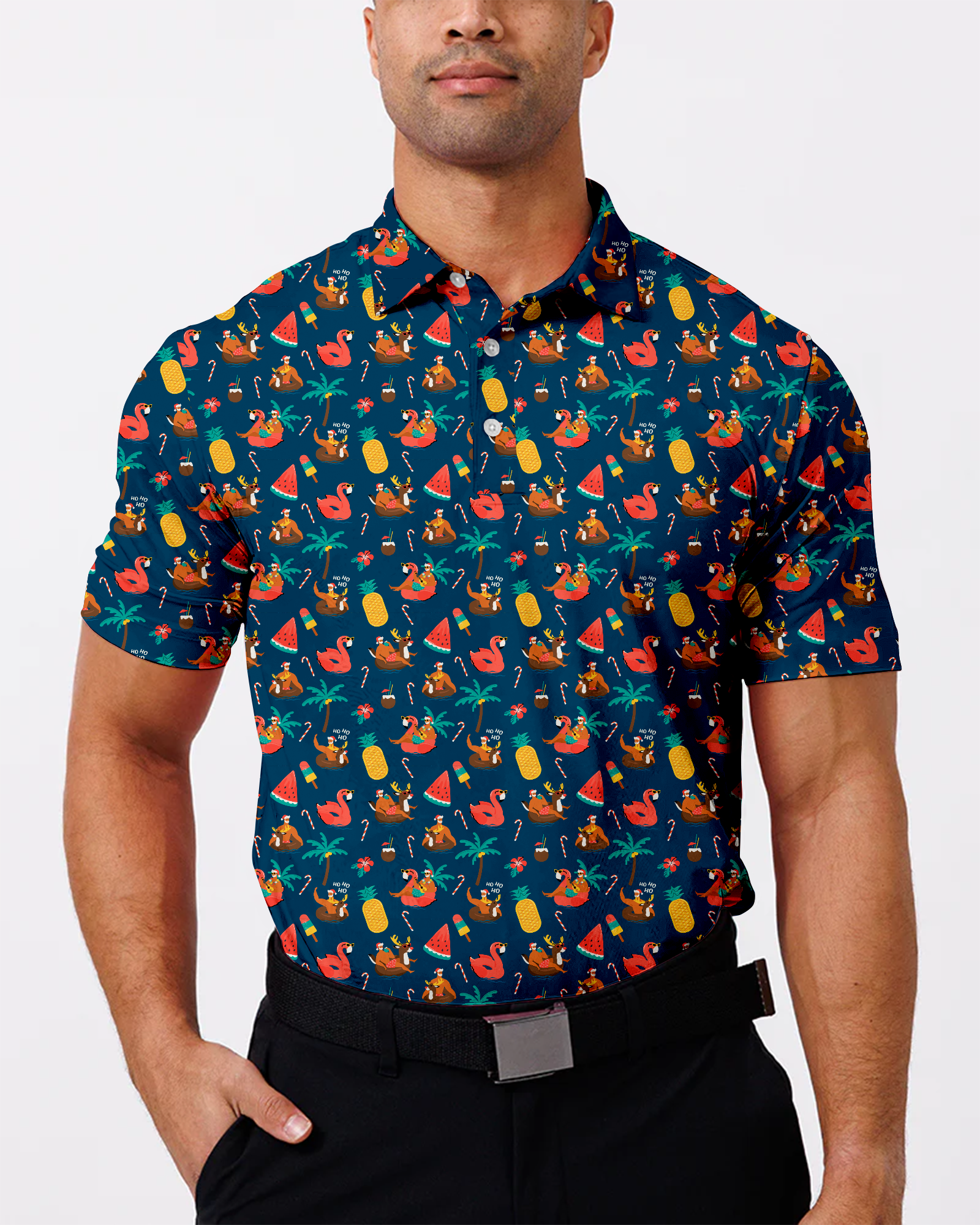 Celebrate the holiday season in style with our Fruity Christmas Polo! This festive polo shirt features a colorful and fun design inspired by traditional Christmas fruits. Whether you're hitting the golf course for a holiday round or attending a Christmas party, this polo is sure to spread some holiday cheer. Made from premium materials, this polo offers comfort, breathability, and flexibility for a full range of motion during your swing. Stand out on the fairway with the Fruity Christmas Polo and show off your festive spirit in a playful and stylish way.