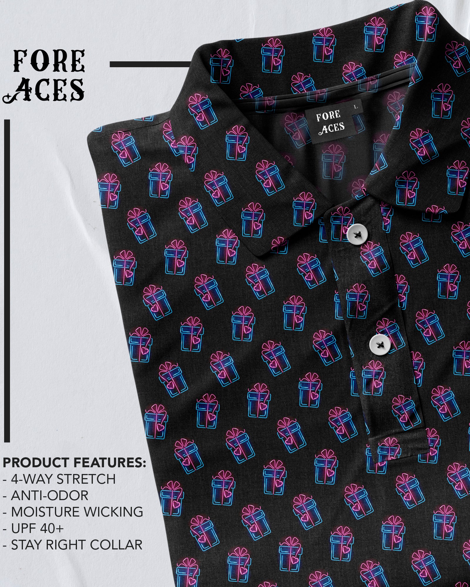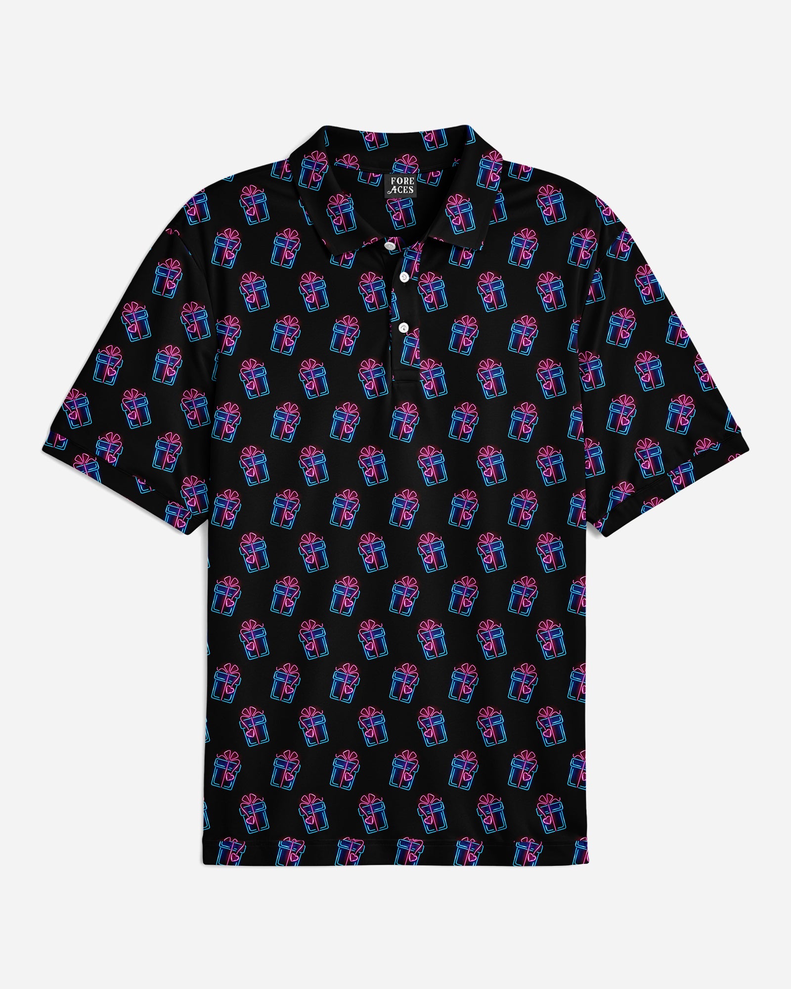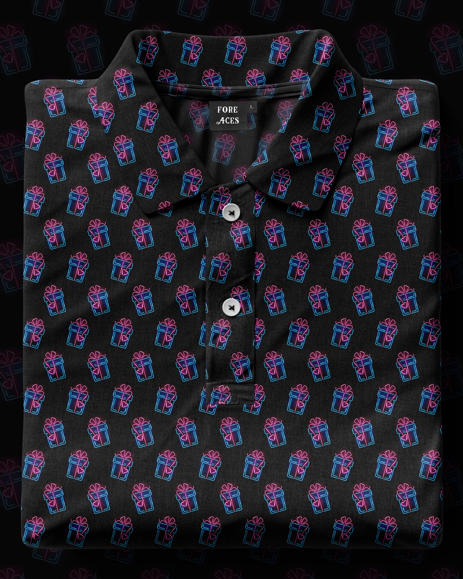 Add a vibrant twist to your holiday wardrobe with the Neon Gift Polo! Featuring bold neon blue and pink Christmas gifts, this polo brings a fun and festive flair to the season. Crafted from soft, high-quality fabric, it offers both comfort and style, making it perfect for holiday parties, cozy gatherings, or spreading holiday cheer wherever you go. With its eye-catching colors and playful design, this polo is your go-to for a bright and merry holiday look!