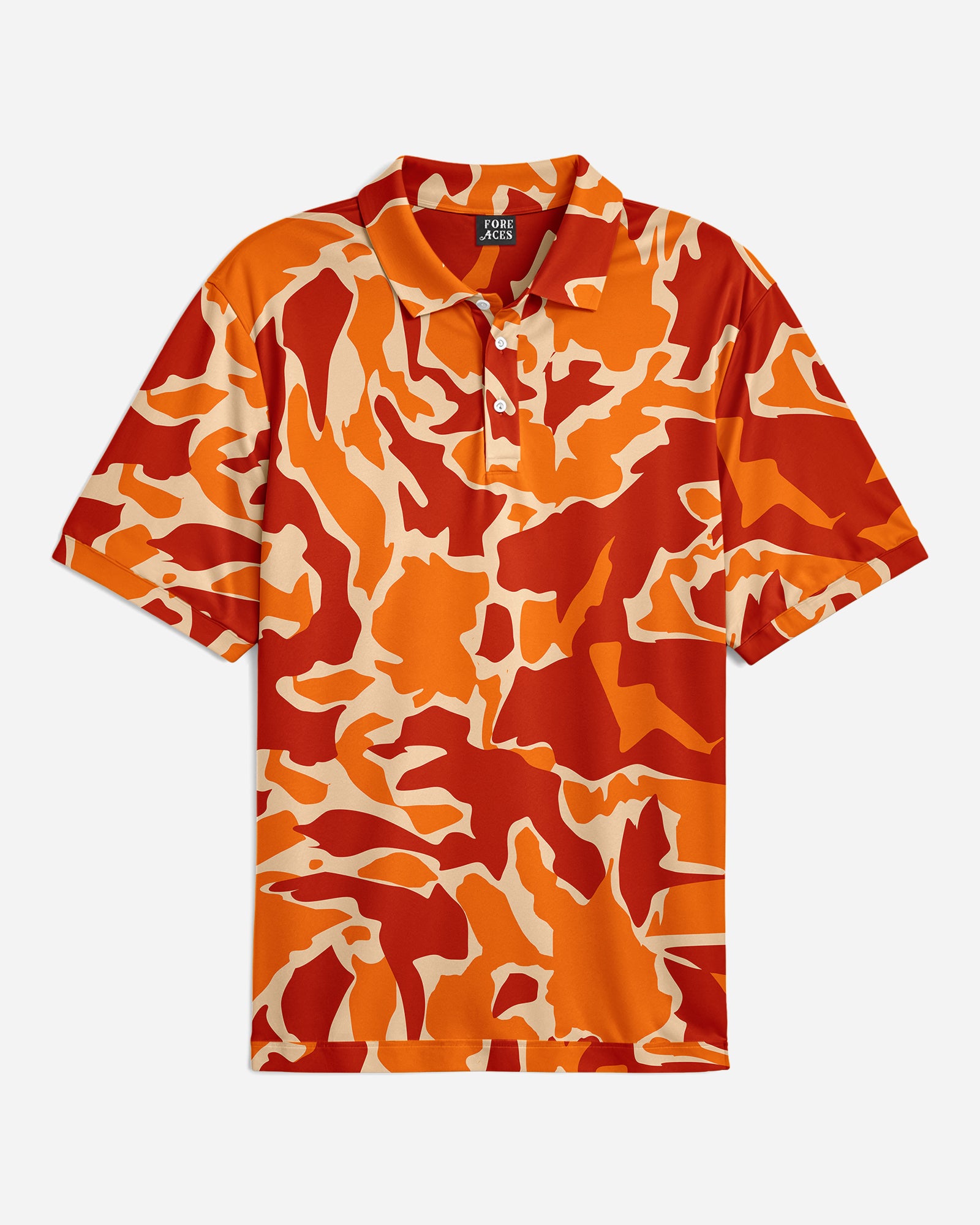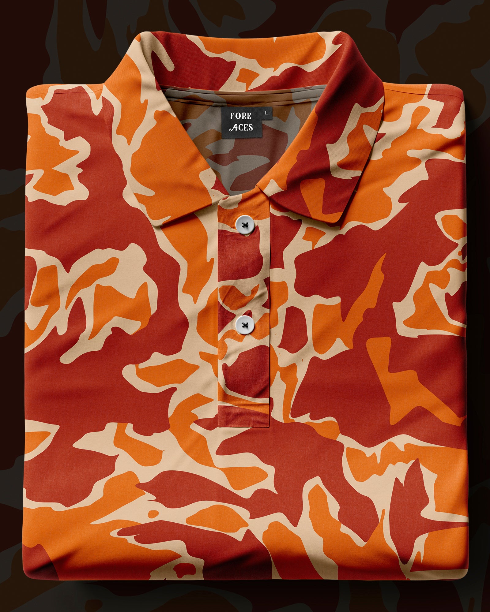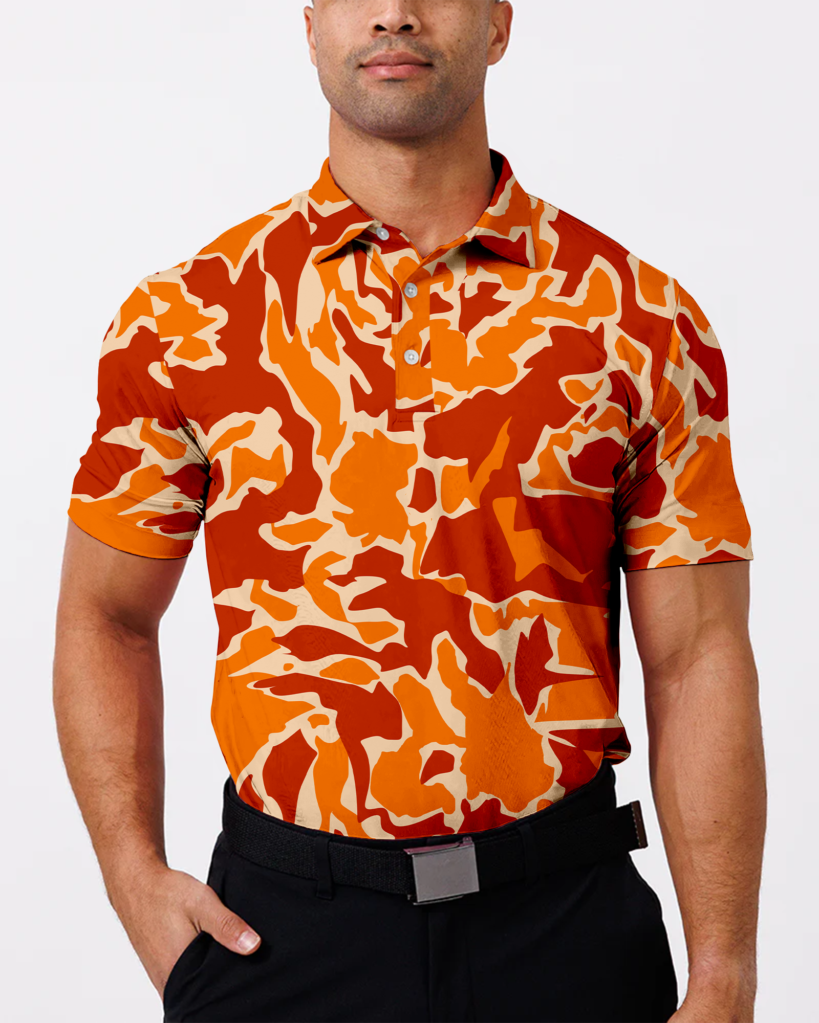 Introducing our Orange Camo Polo golf shirt, the perfect blend of style and functionality for the modern golfer. Crafted with precision, this polo features a vibrant orange camouflage pattern that adds a touch of uniqueness to your golfing attire. Made from high-quality materials, it offers exceptional comfort and breathability, allowing you to stay cool and focused on the course. With its classic polo collar and button placket, this shirt exudes a timeless elegance that will make you stand out on the green. Whether you're a seasoned golfer or just starting out, our Orange Camo Polo golf shirt is a must-have addition to your golf wardrobe.