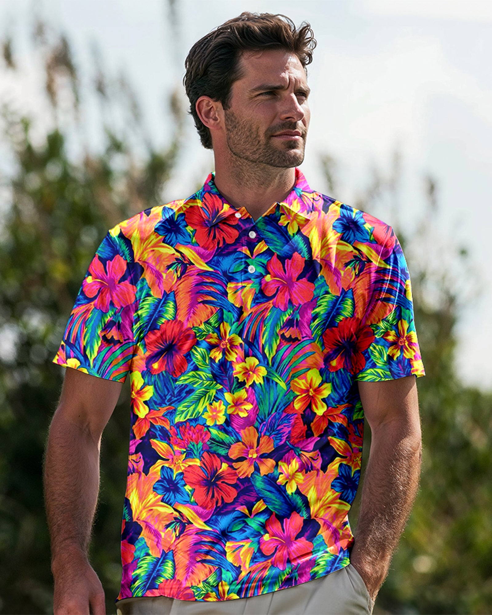Introducing the Radiant Floral Polo golf shirt, a stylish and sophisticated choice for the modern golfer. This polo features a vibrant floral pattern that adds a touch of elegance to your golf attire. Made from high-quality materials, it offers exceptional comfort and breathability, ensuring you stay cool and dry on the course. With its classic polo design and flattering fit, this shirt is perfect for both casual rounds and competitive play. Elevate your golf wardrobe with the Radiant Floral Polo and make a statement on and off the course.