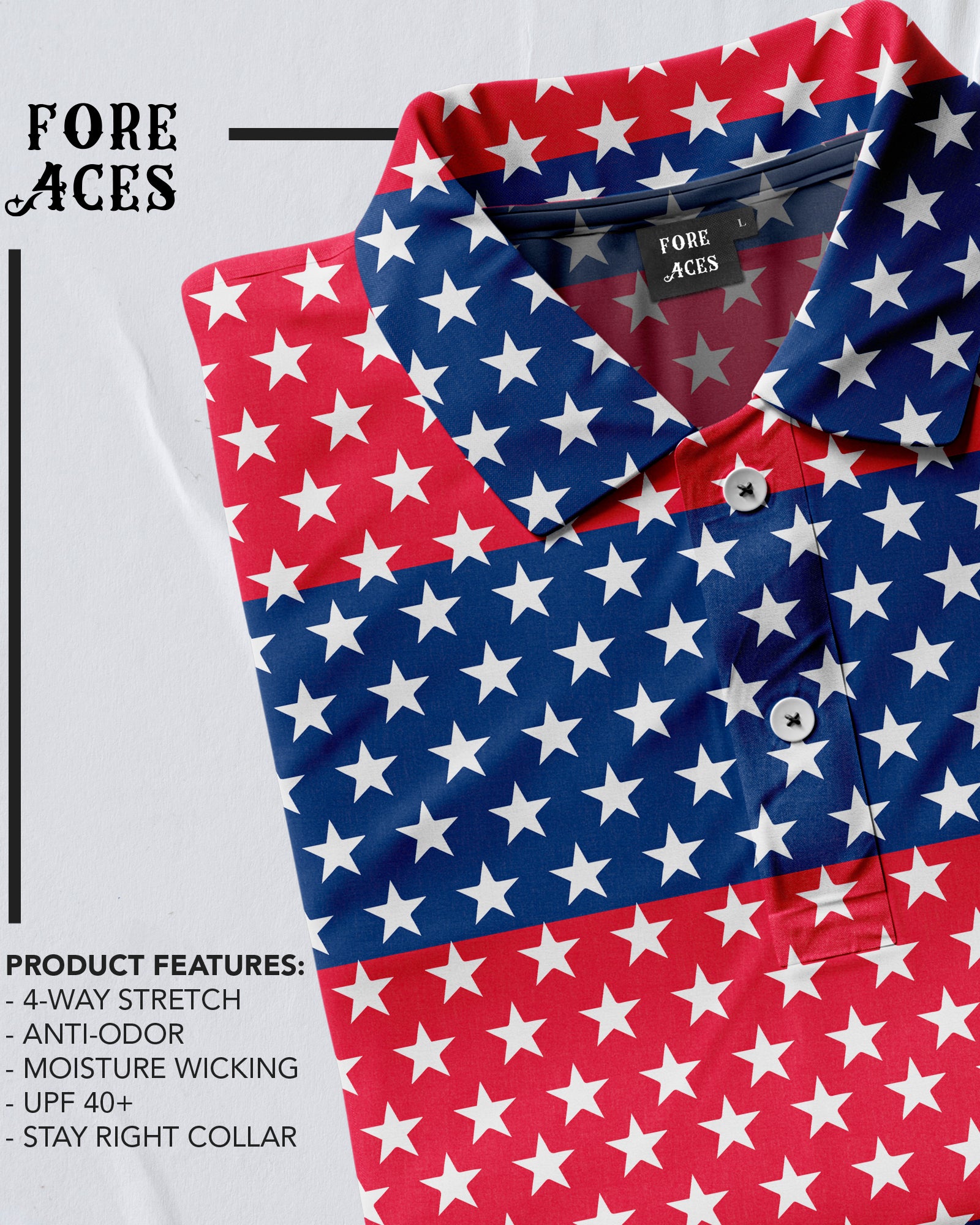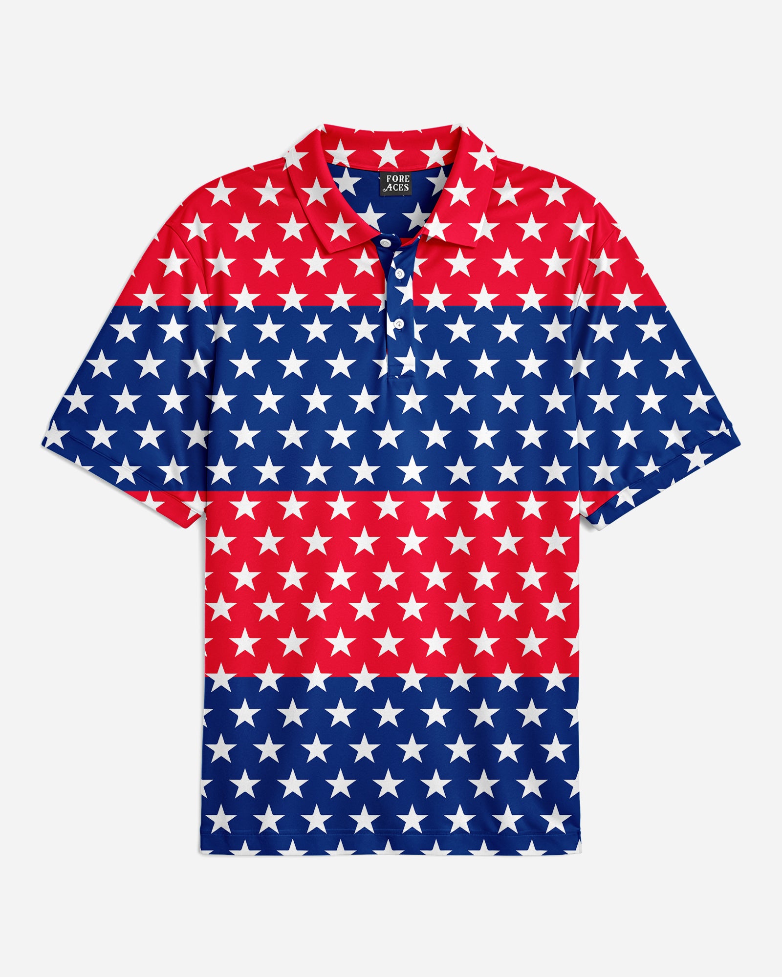Show off your patriotic spirit on the golf course with our Red, White & Blue Polo. This stylish polo features stars design, perfect for celebrating national holidays or showing support for your country. Made with high-quality materials, this polo offers both comfort and style, making it a must-have for any golfer looking to make a statement on the course.