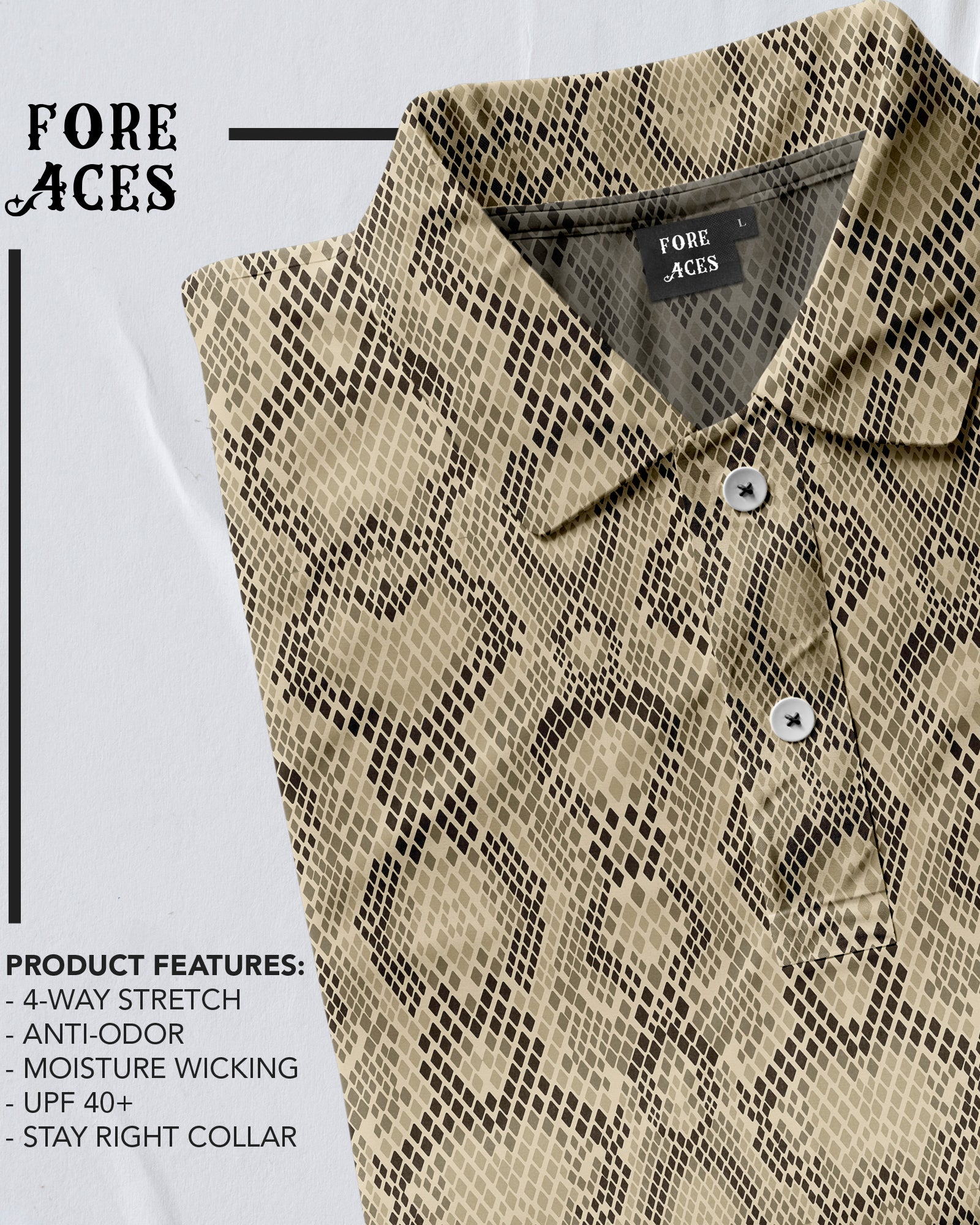 Elevate your golf game with our Snake Skin Polo, featuring a unique design inspired by the intricate scales of a snake. Made with high-quality materials, this polo offers both style and comfort on the course. Stand out from the crowd and make a statement with this one-of-a-kind polo that combines fashion and functionality seamlessly.
