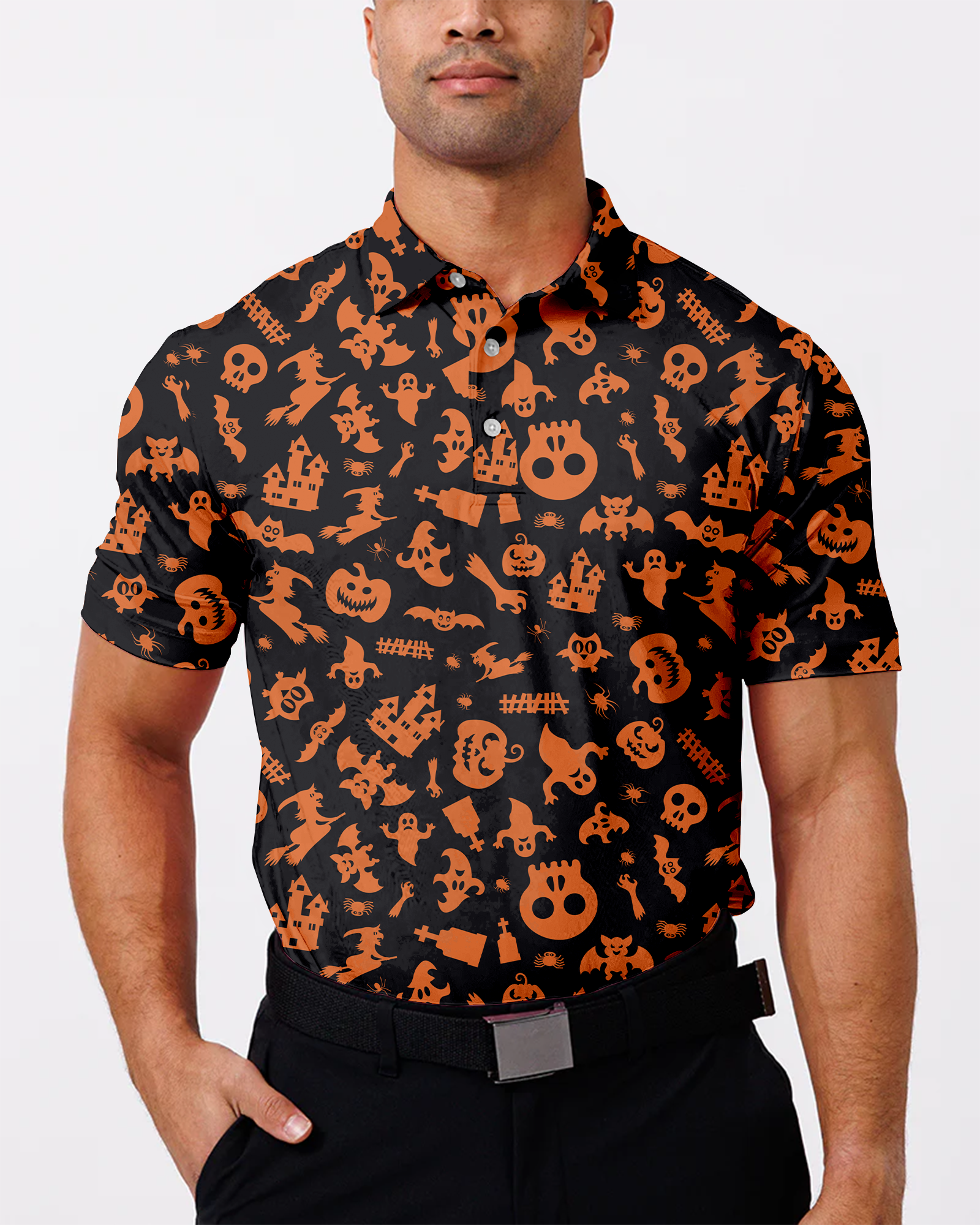 Step up your golf game this Halloween with our Spooky Night Polo! This ghoulishly good polo will have you looking stylish on and off the green.