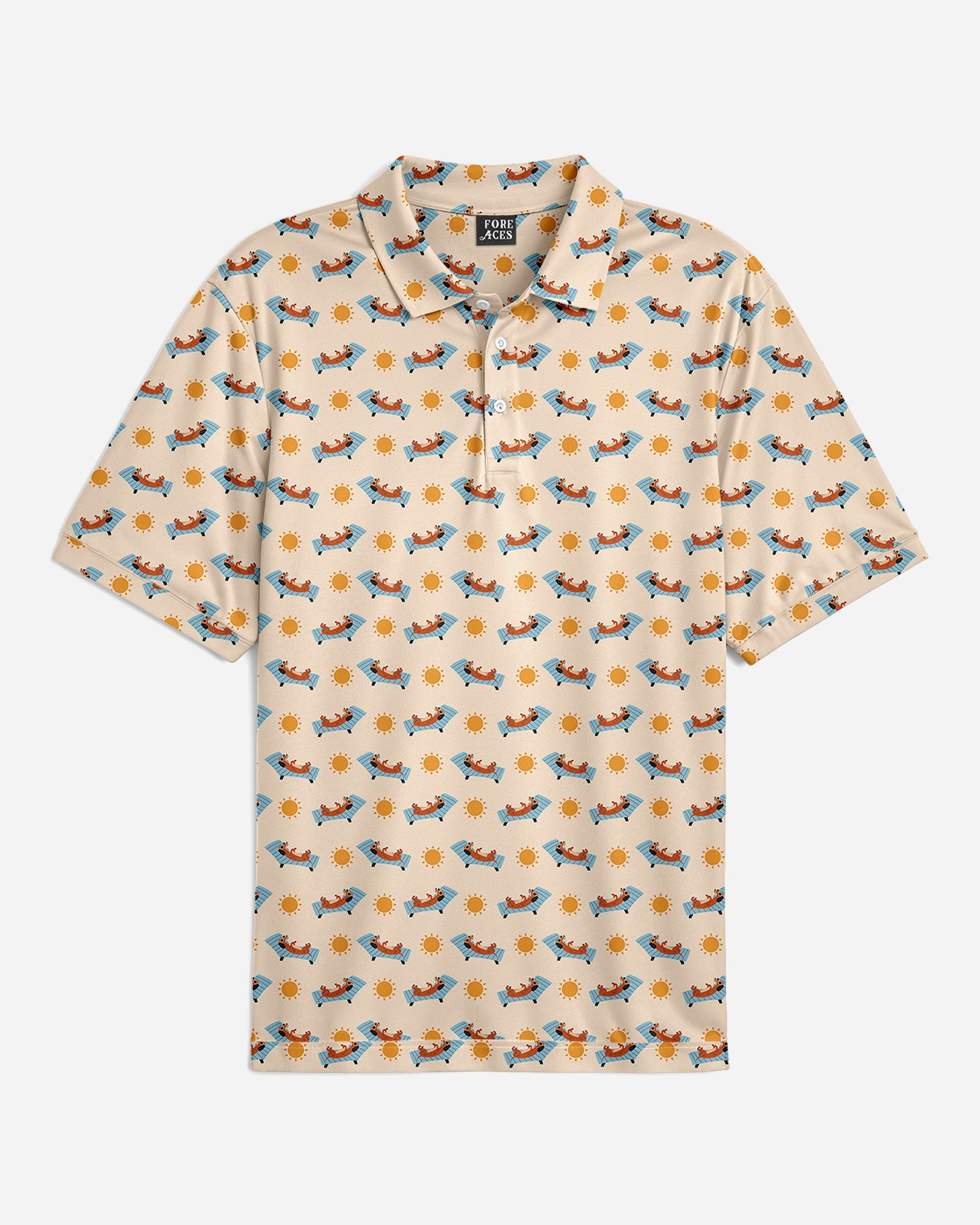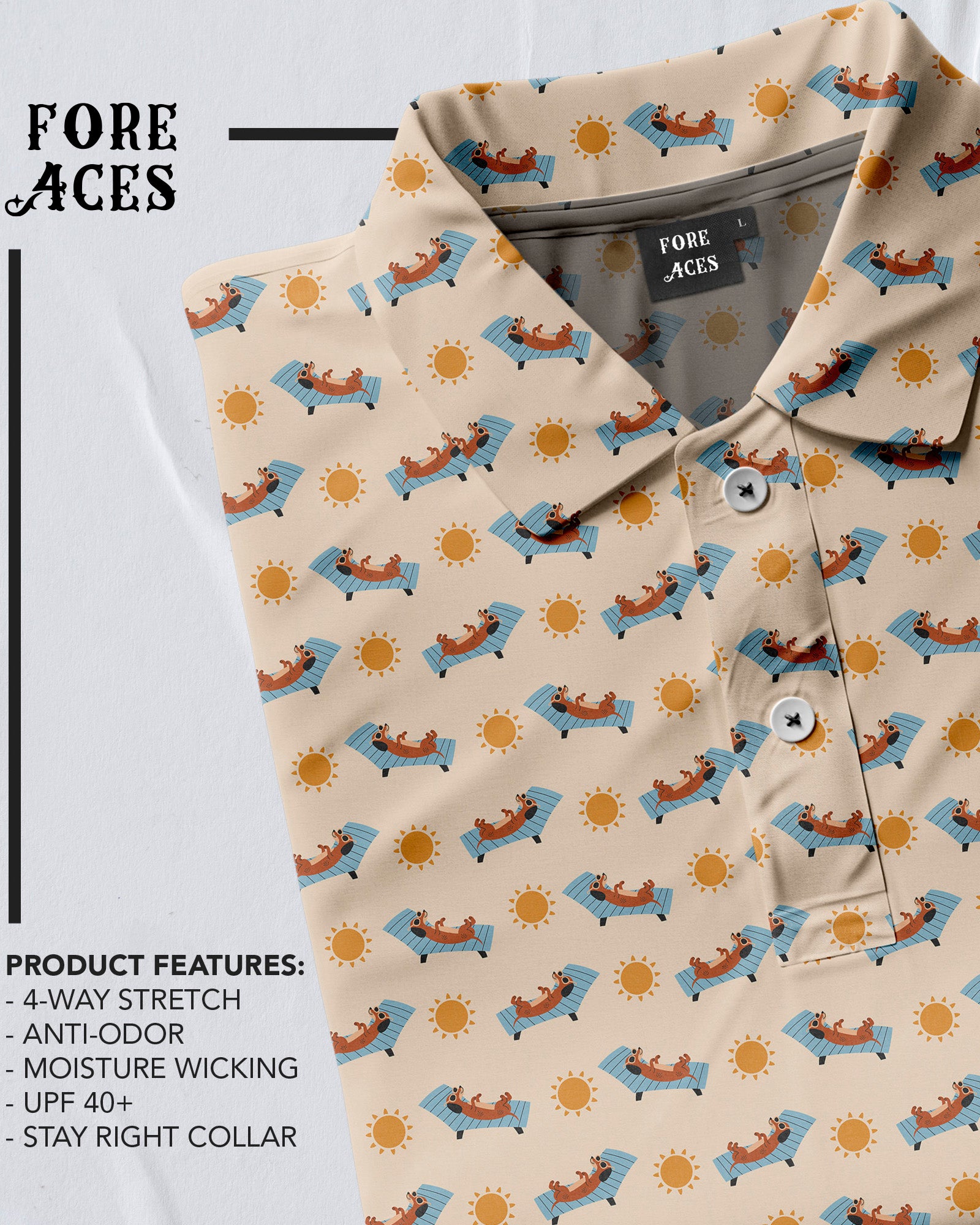 Keep your furry friend stylish and comfortable with our Sunbathing Dog Polo. This adorable polo features the design of a dog laying out in the sun, perfect for those sunny days in the park or backyard. Made with high-quality materials, this polo is not only fashionable but also durable and easy to clean. Your pup will love lounging around in this cute and cozy polo, making it a must-have for any dog owner.