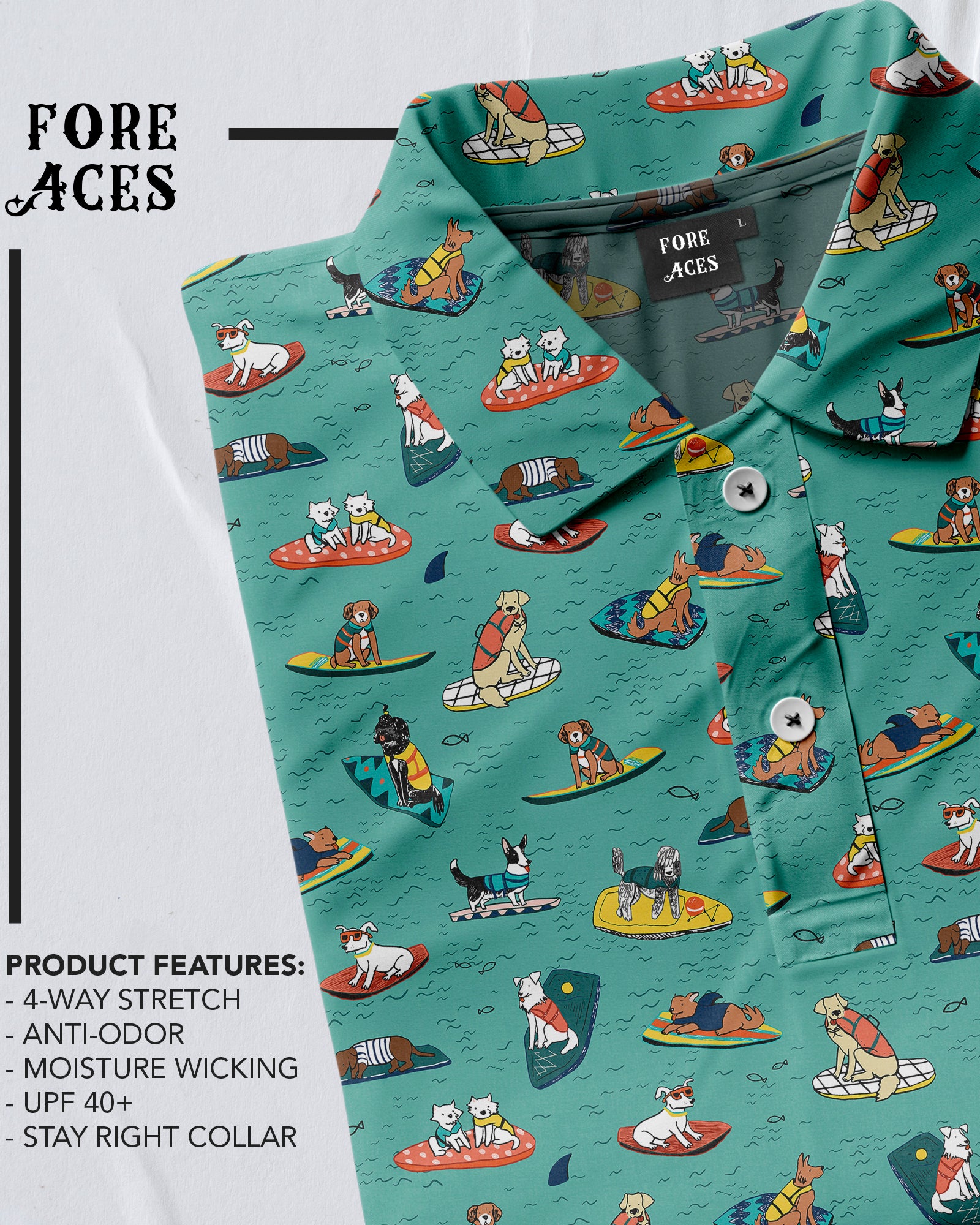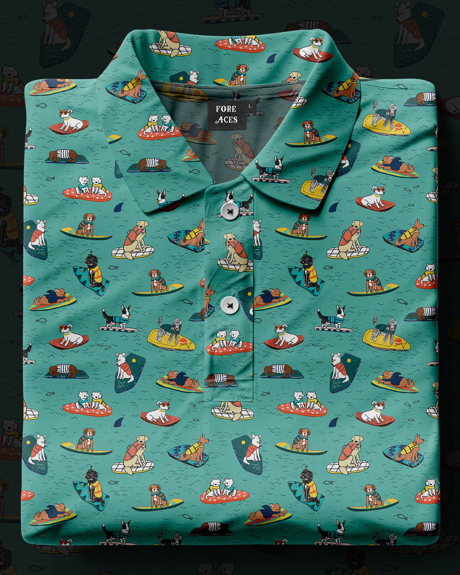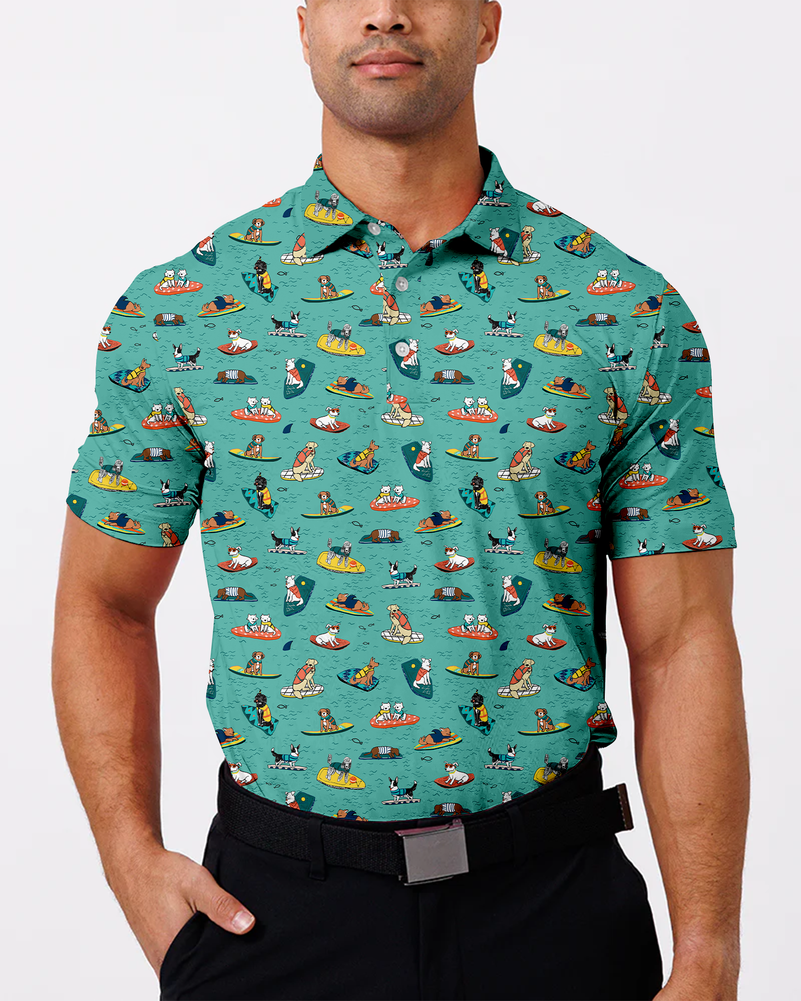 Introducing the Surfing Dogs Polo golf, the perfect blend of style and functionality for the modern golfer. This sleek and trendy polo shirt features a unique design showcasing adorable dogs catching waves, adding a touch of fun to your golfing attire. Whether you're a seasoned golfer or just starting out, the Surfing Dogs Polo golf is a must-have addition to your wardrobe. Get ready to make a statement and unleash your inner surfer on the greens!