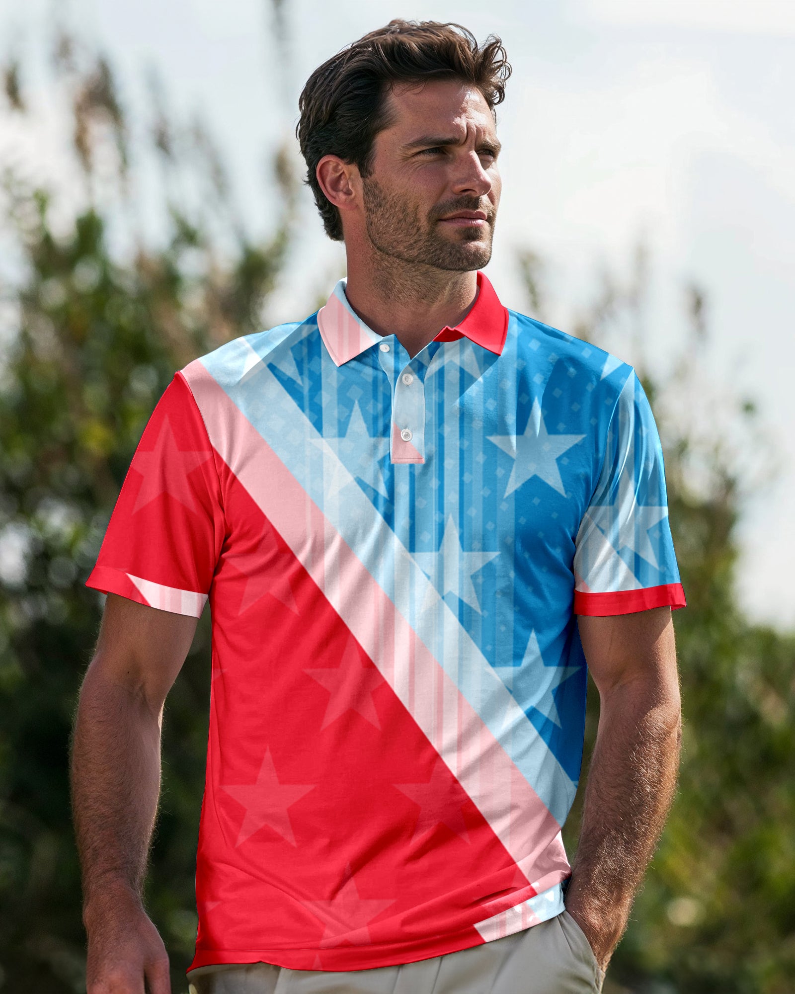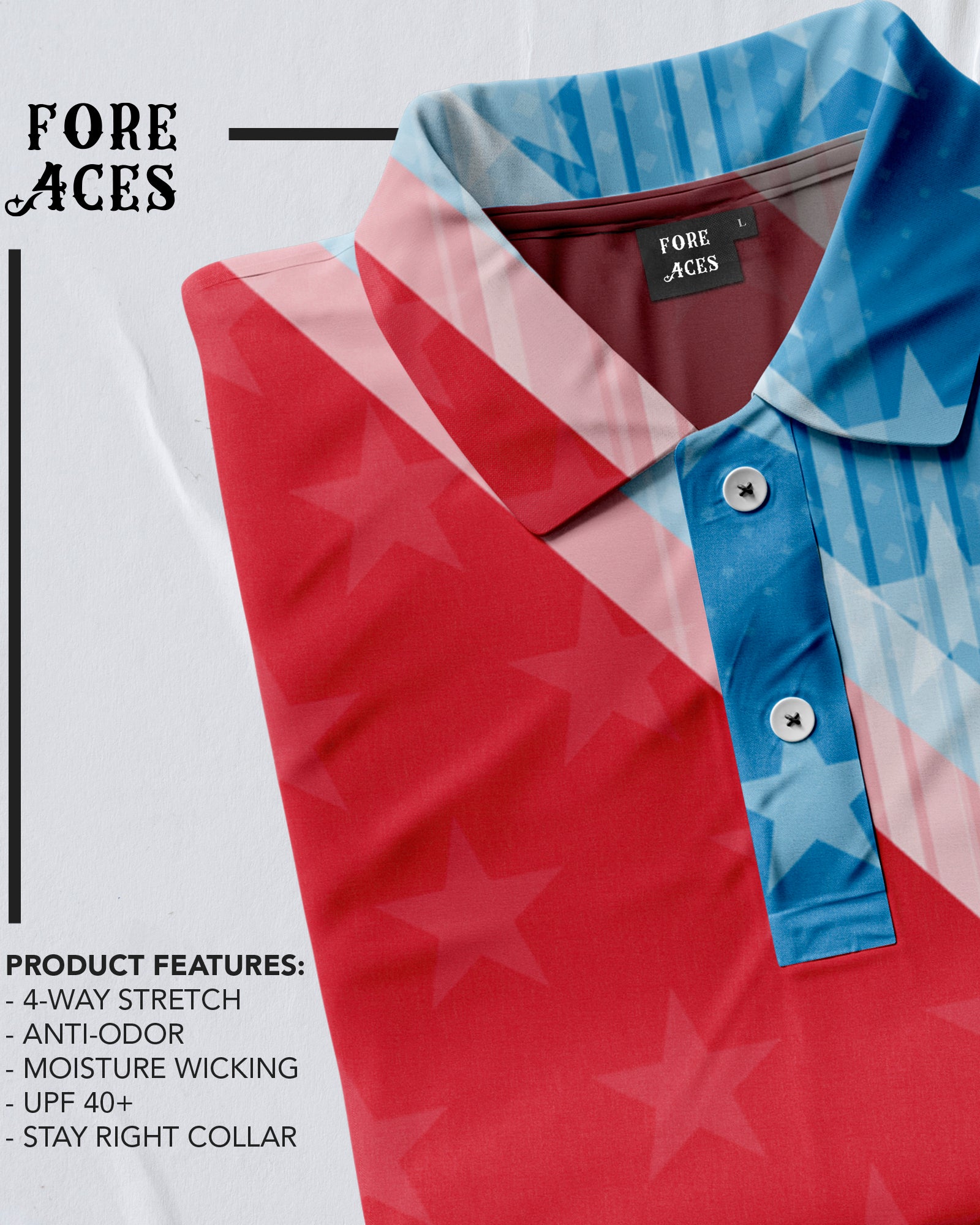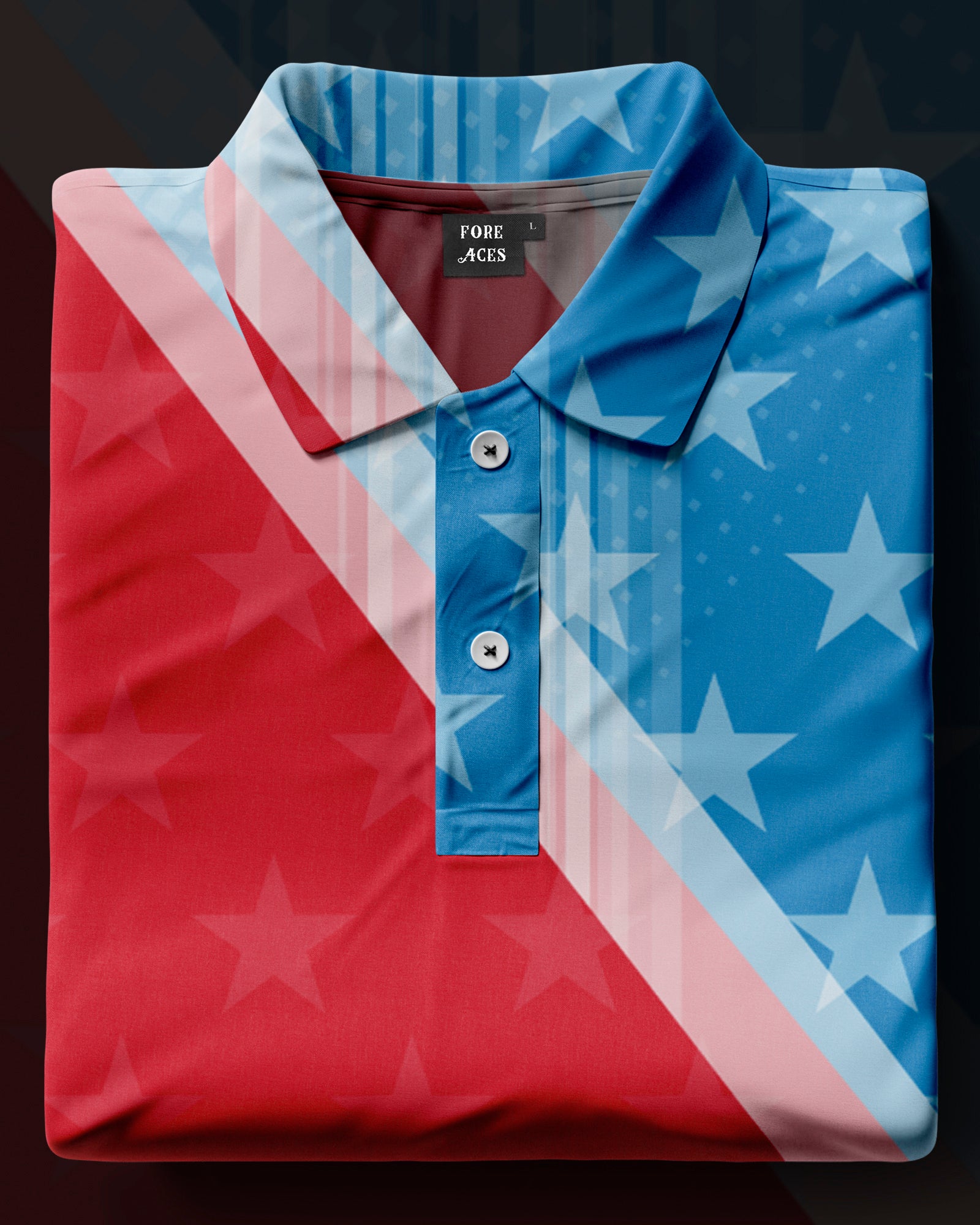 The USA Classic Polo: a vibrant tribute to American spirit and pride. This eye-catching polo shirt features a bold, patriotic design, complete with a harmonious blend of red, white, and blue. Crafted from premium materials, it offers both comfort and durability, making it perfect for any casual or semi-formal event. Whether you're attending a barbecue or a golf outing, the USA Classic Polo is sure to make a statement of national pride and timeless style.