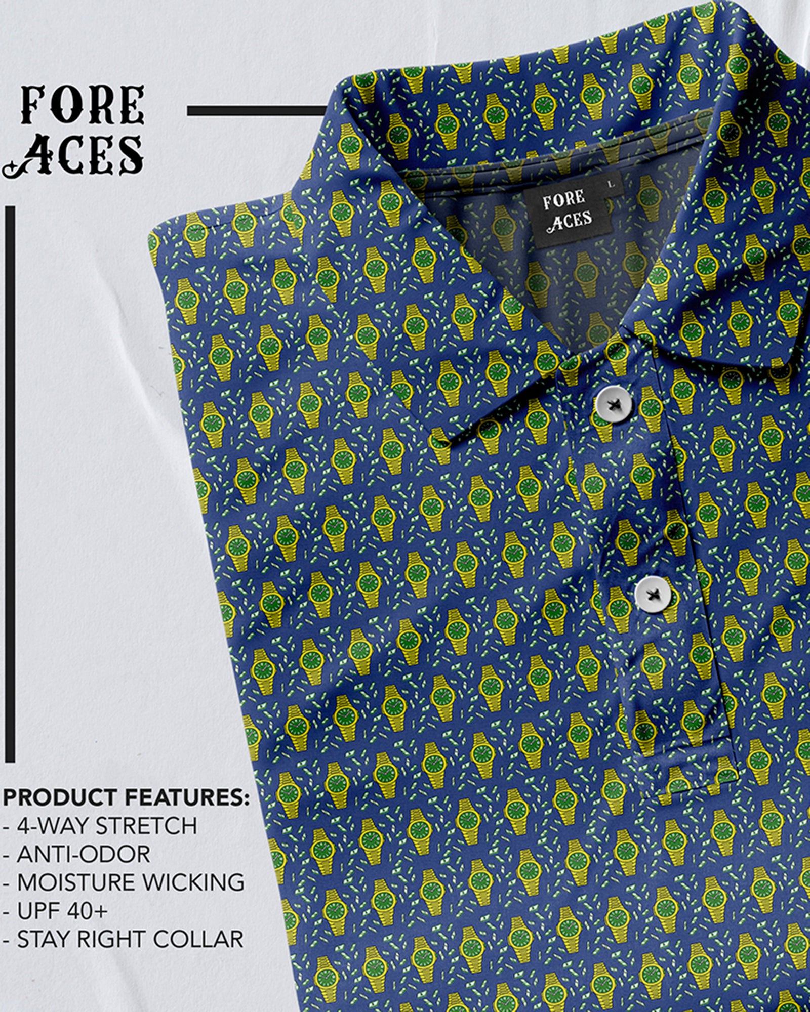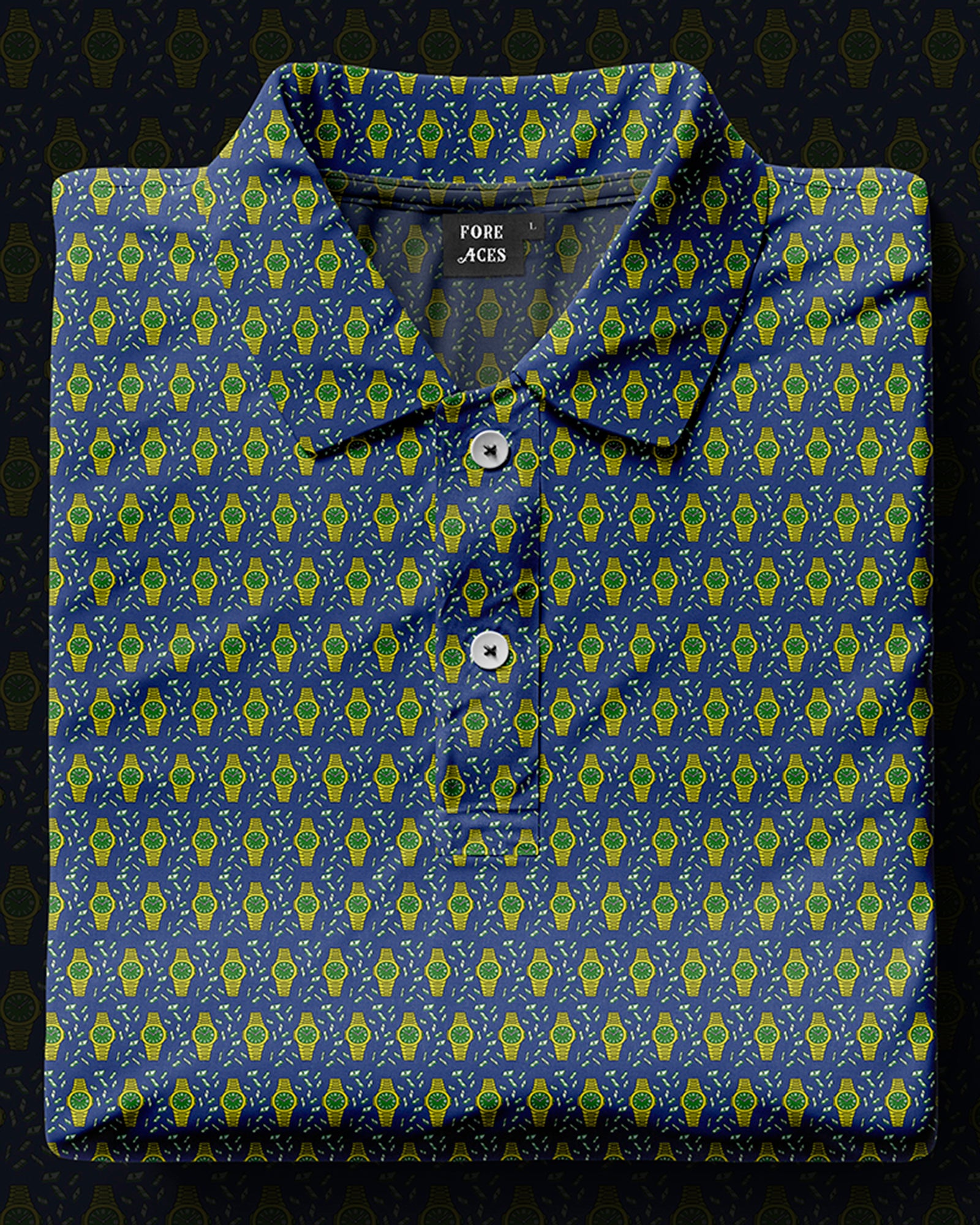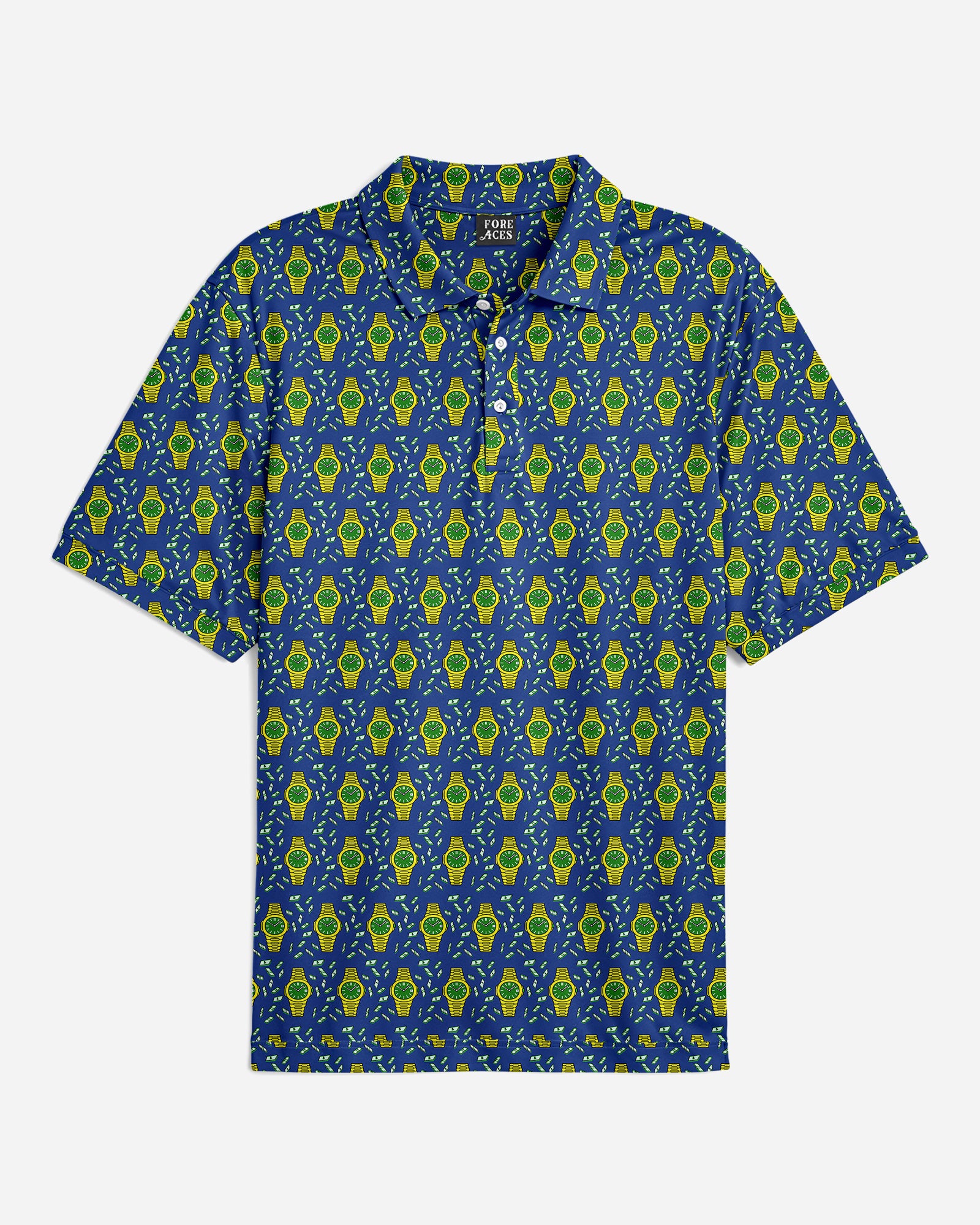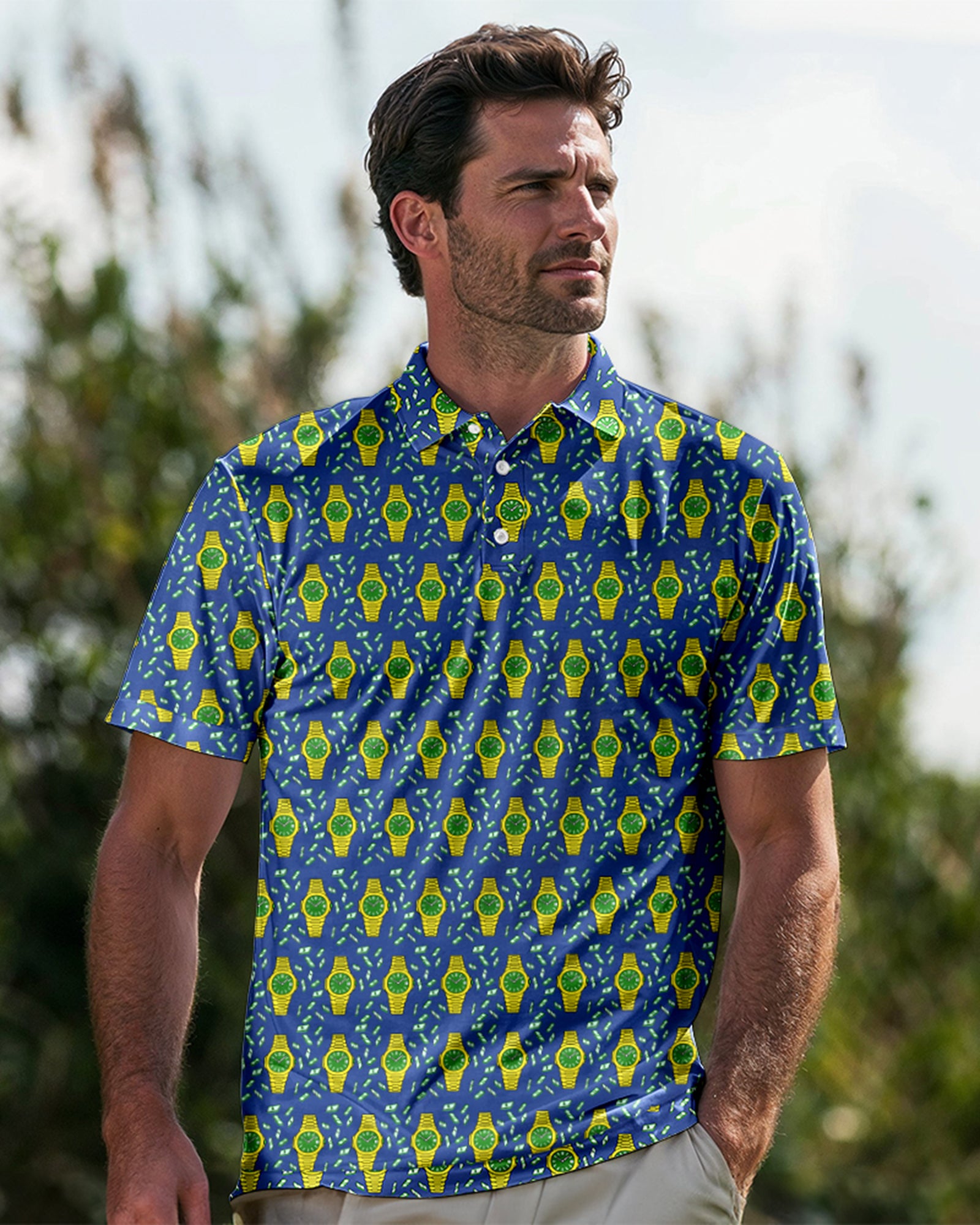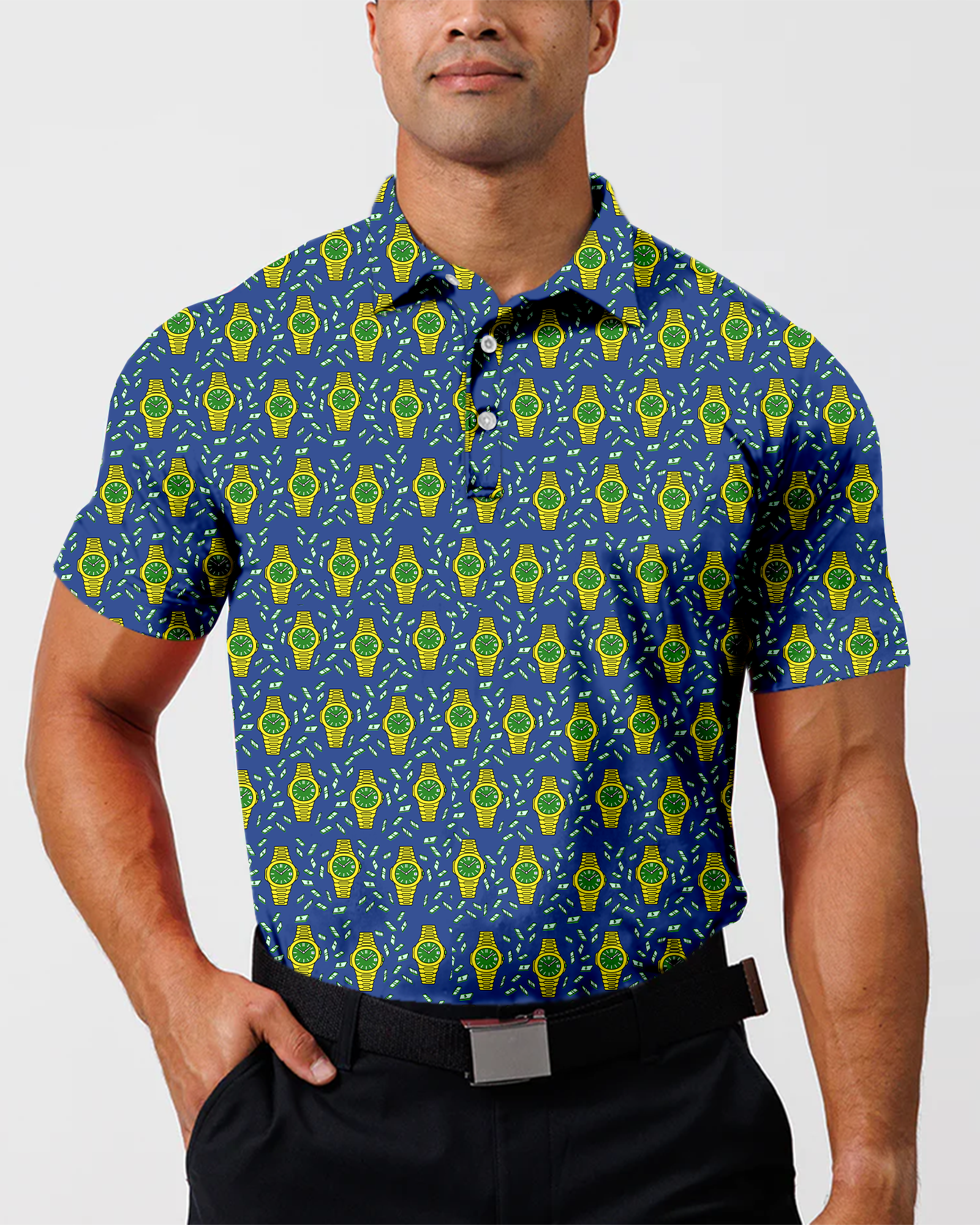 Introducing the "Tee Time Timepiece Polo," the ultimate statement piece for those who dare to stand out. Crafted from the finest threads, this polo isn't just a garment; it's a proclamation of style. With its bold colors that scream "I have arrived!" and a collar so sharp it could cut through the tension in a boardroom, this polo