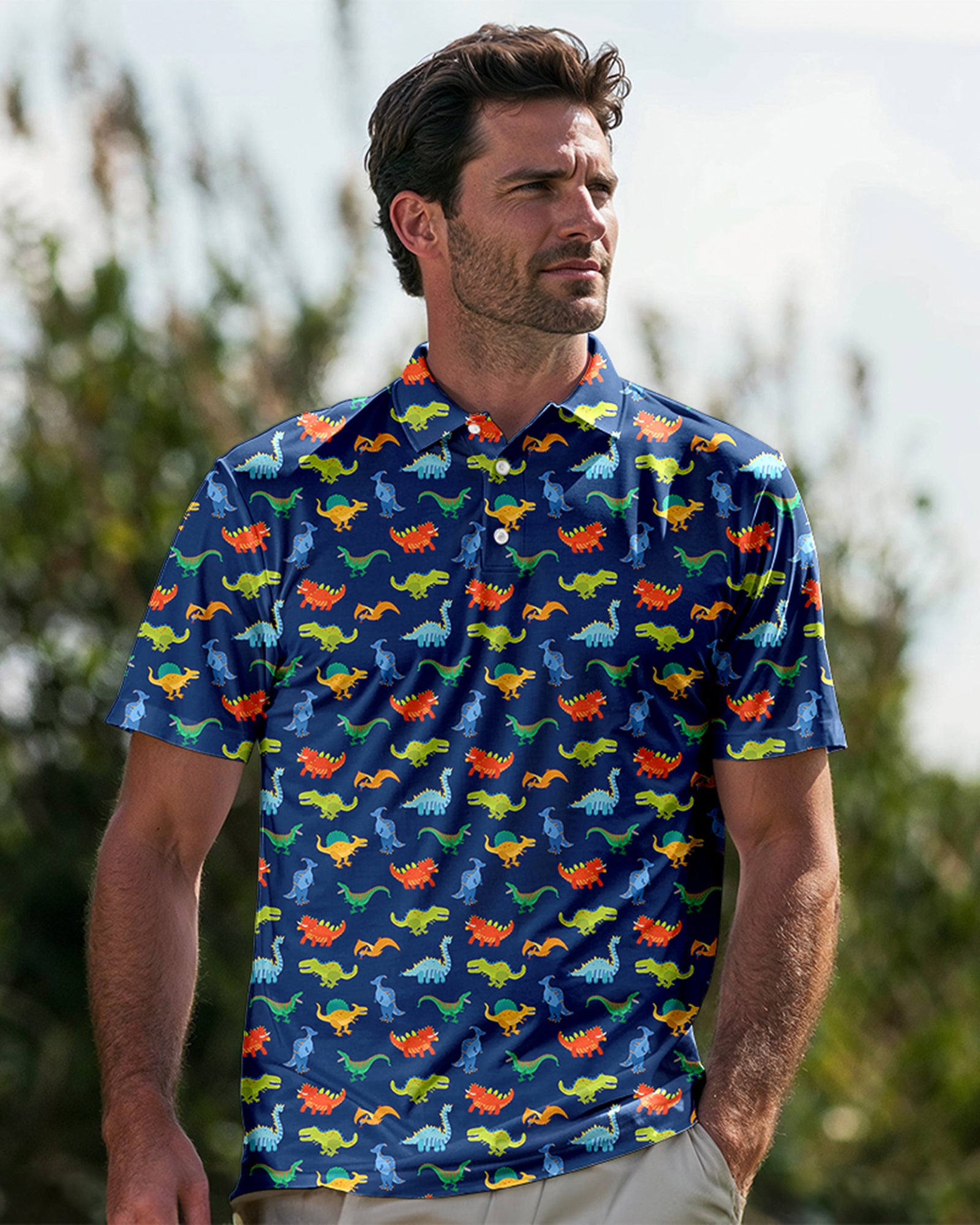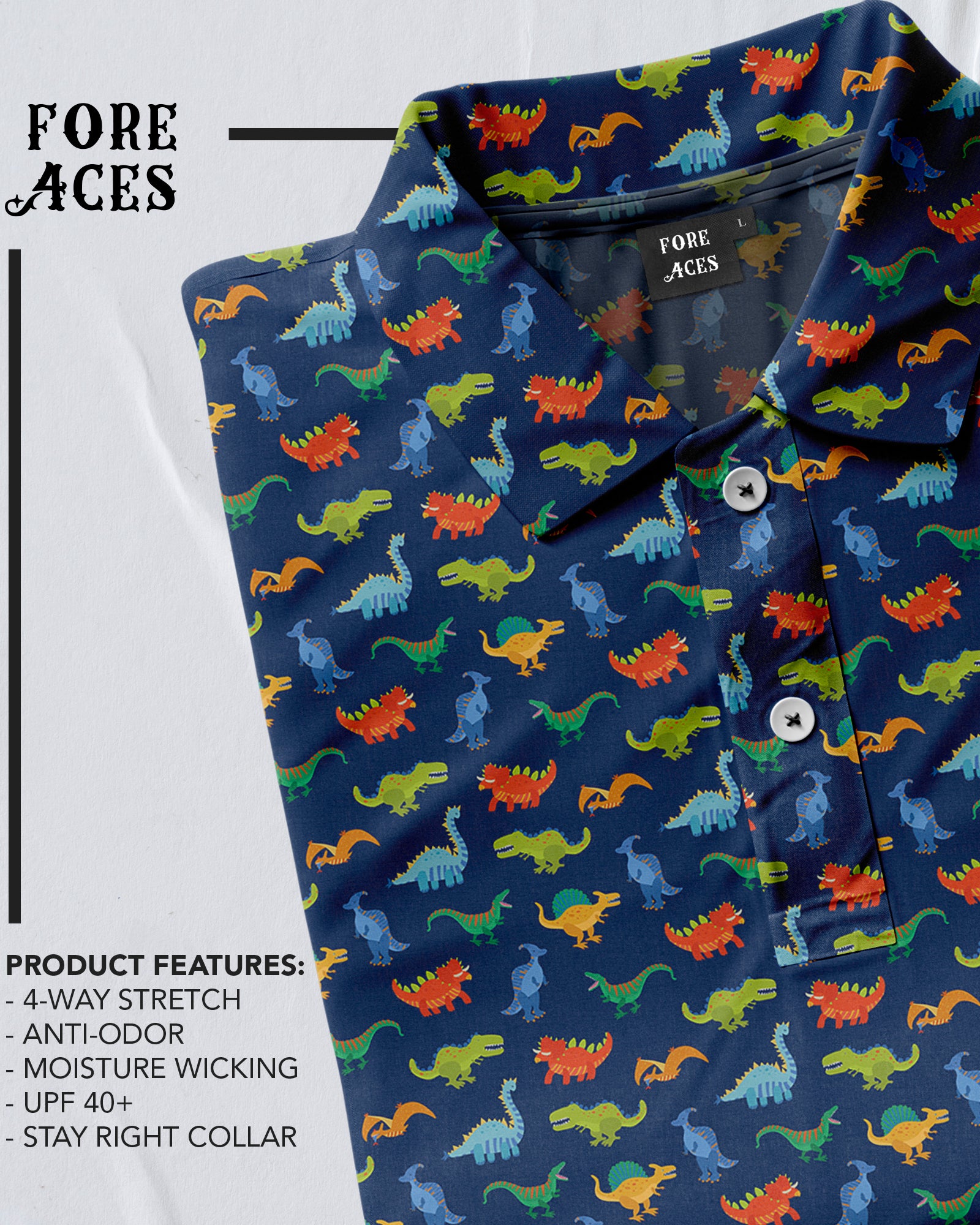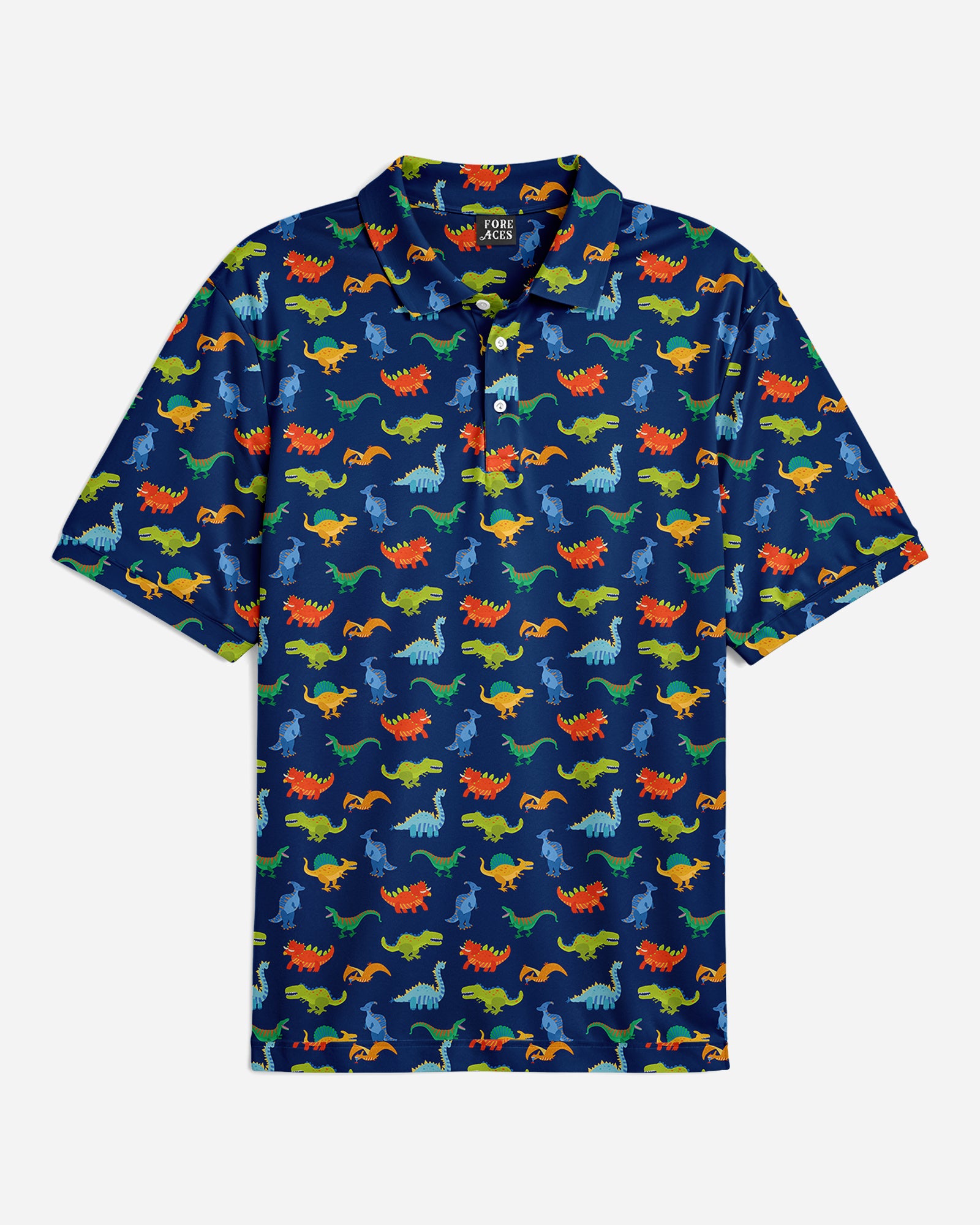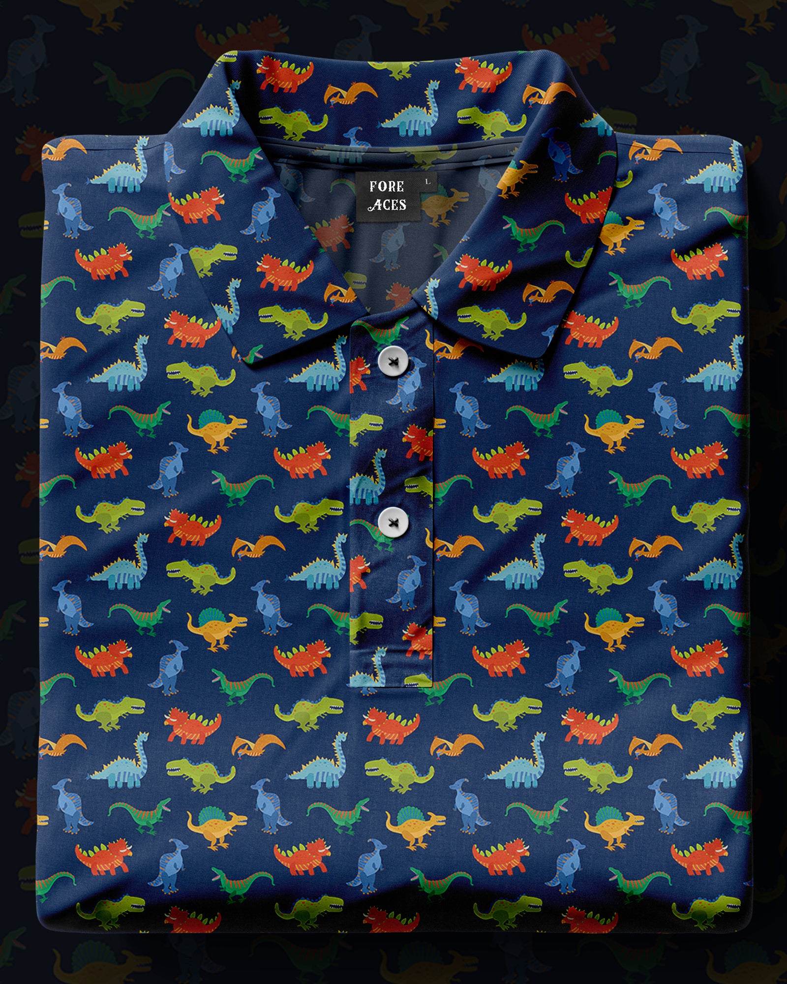 Introducing our Vivid Dinosaur Polo, featuring a vibrant and eye-catching design of colorful dinosaurs. Made with high-quality materials, this polo is perfect for both casual wear and a round of golf. Stand out on the course with this unique and playful shirt that combines style and comfort. Available in a range of sizes, this polo is a must-have for any dinosaur enthusiast or golf lover.