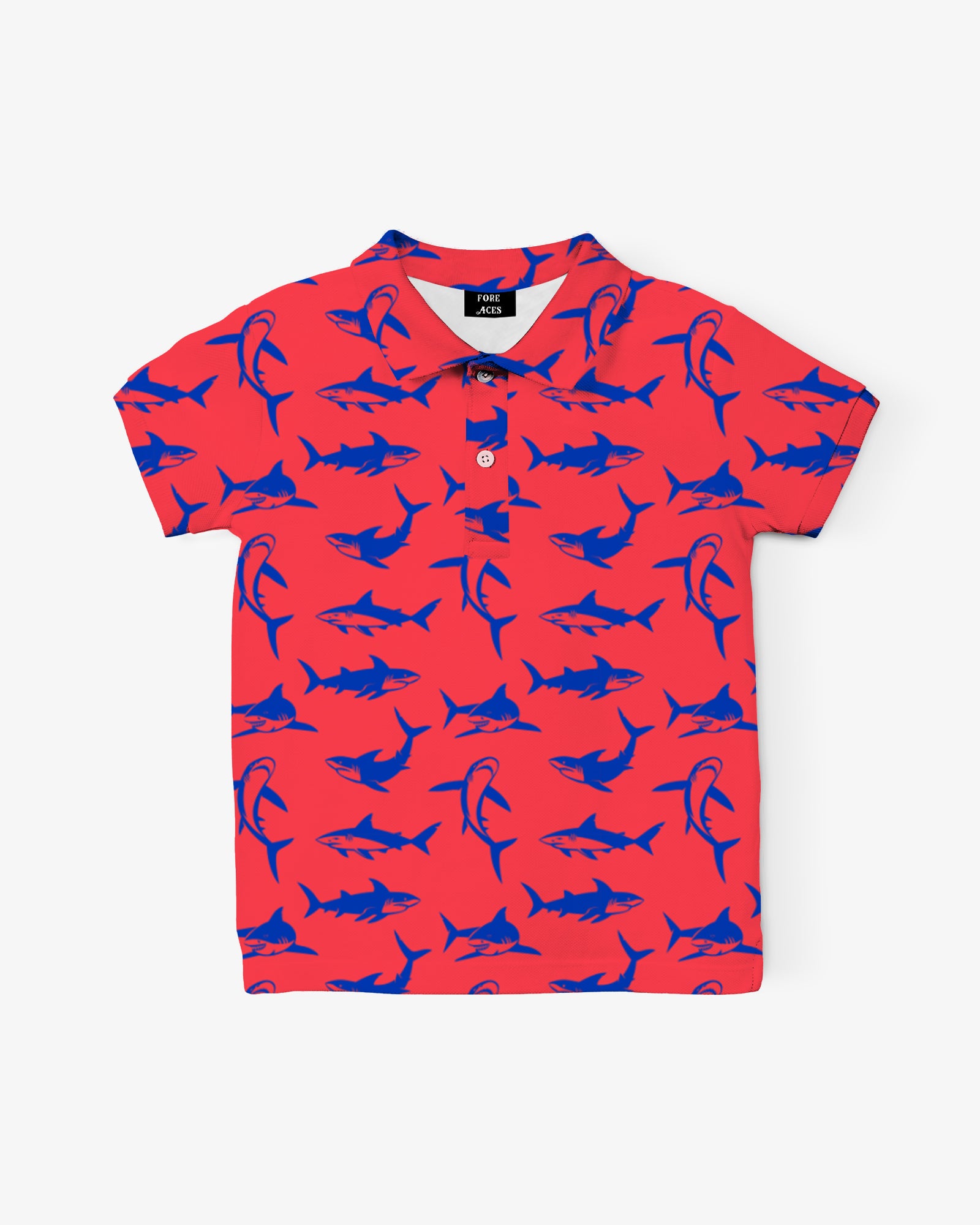 This cool polo shirt is perfect for young golfers who love sharks and the ocean! The design features colorful sharks swimming underwater, creating a fun and unique look that stands out on the golf course. Made with high-quality materials, this polo is comfortable to wear all day long while playing golf or hanging out with friends. Get ready to make a splash with the Underwater Frenzy Youth Polo!