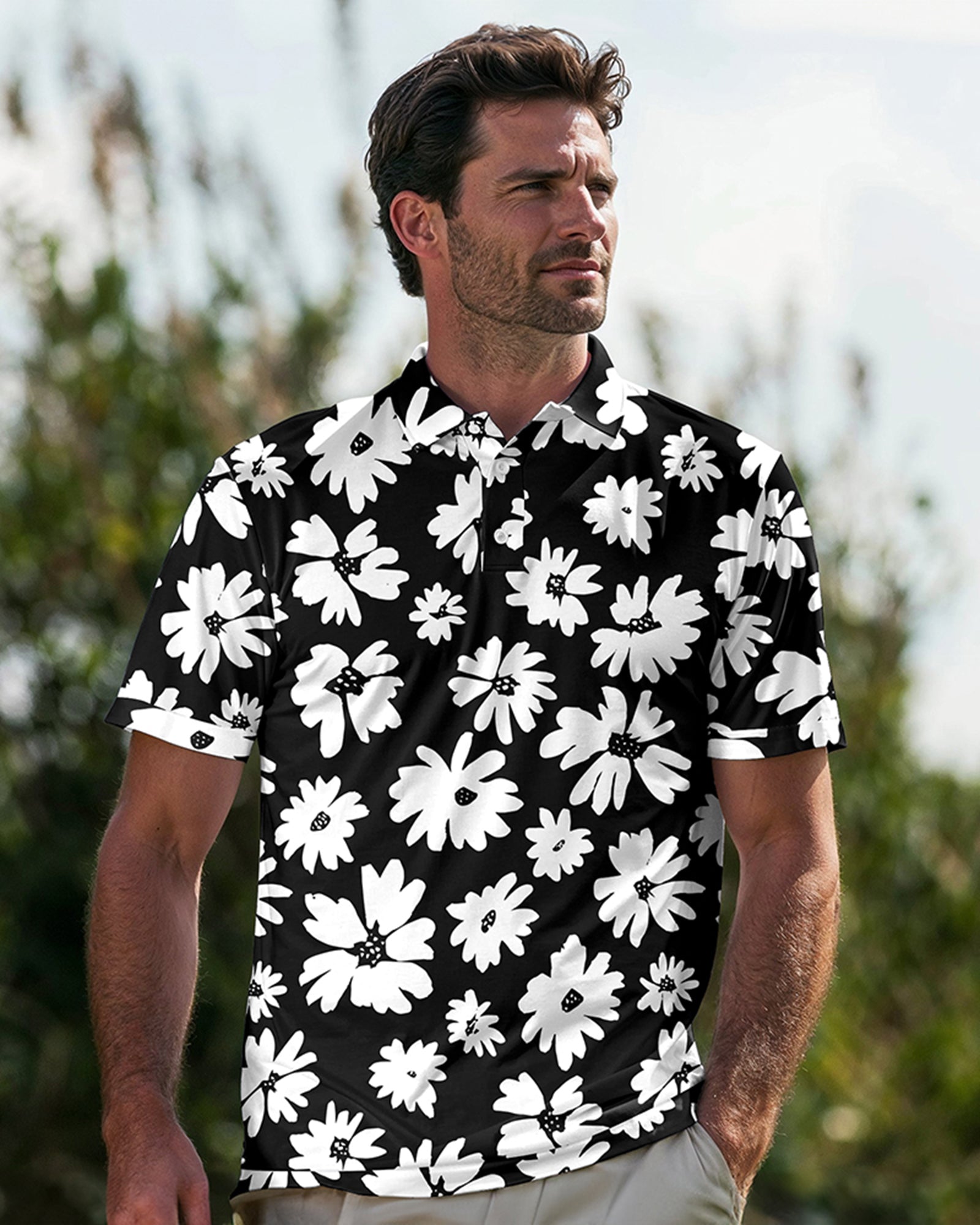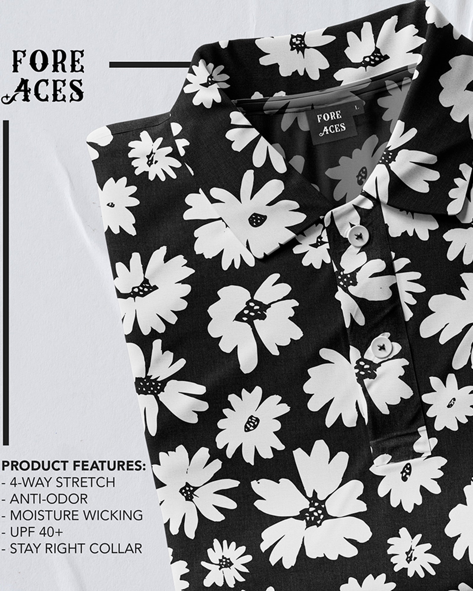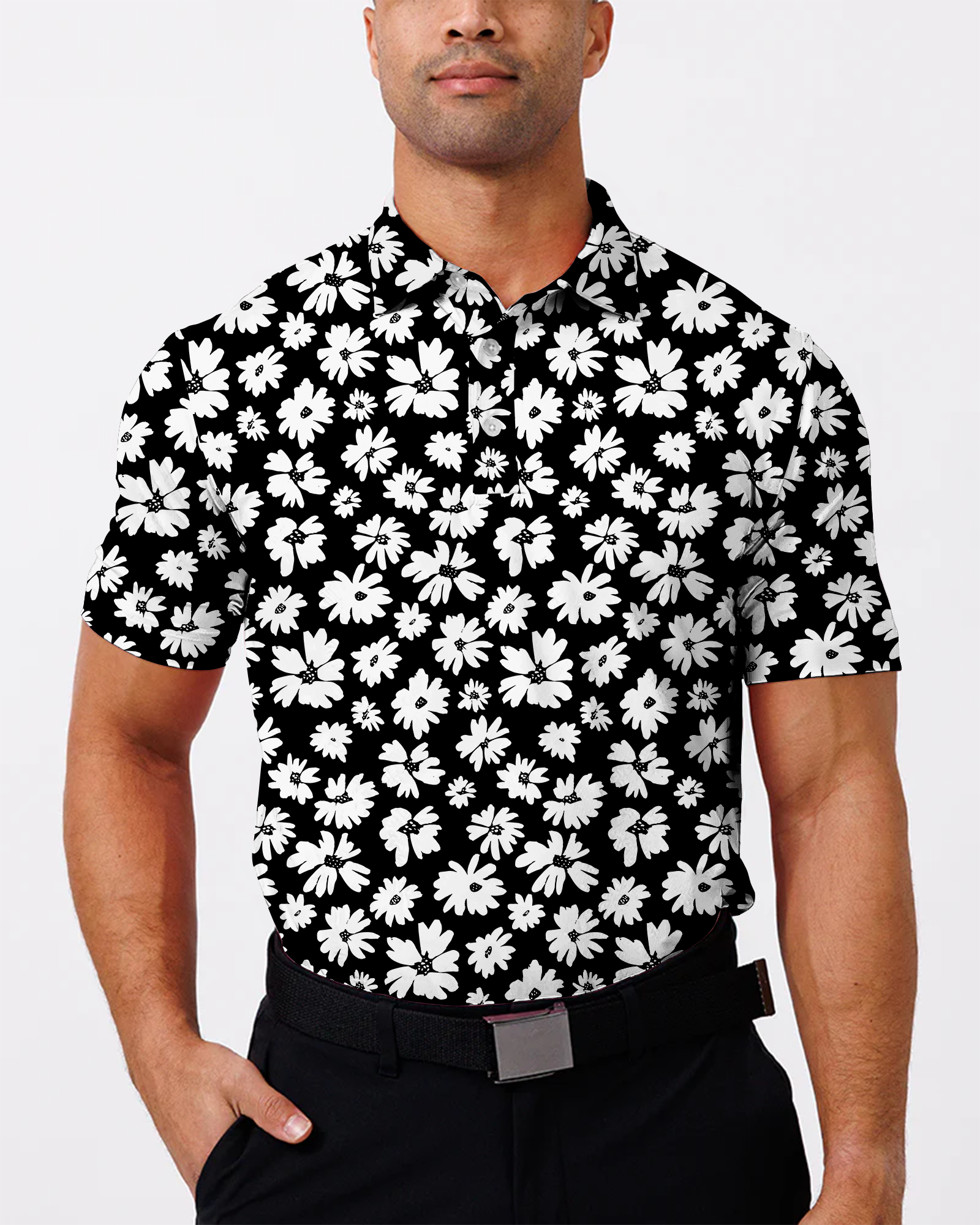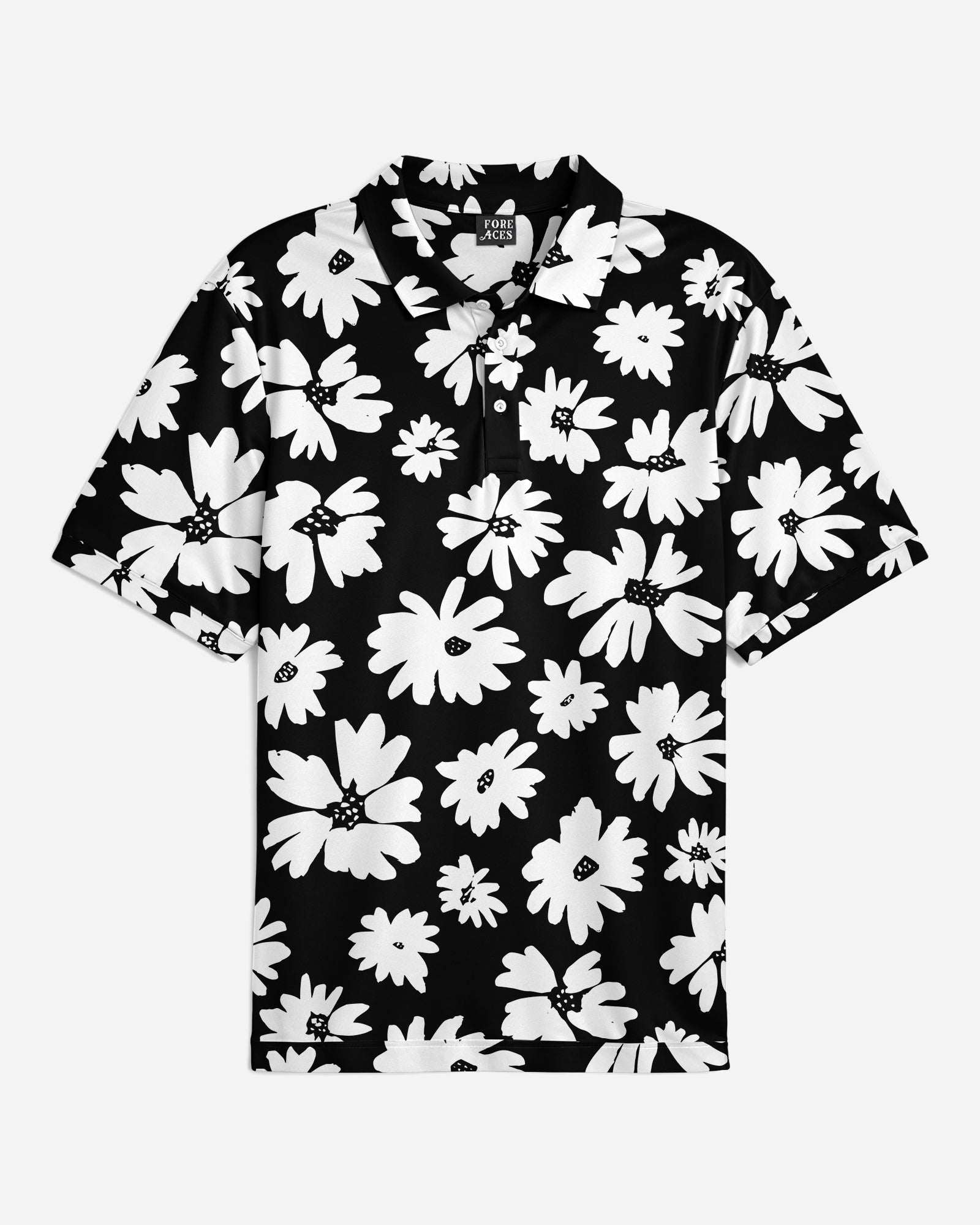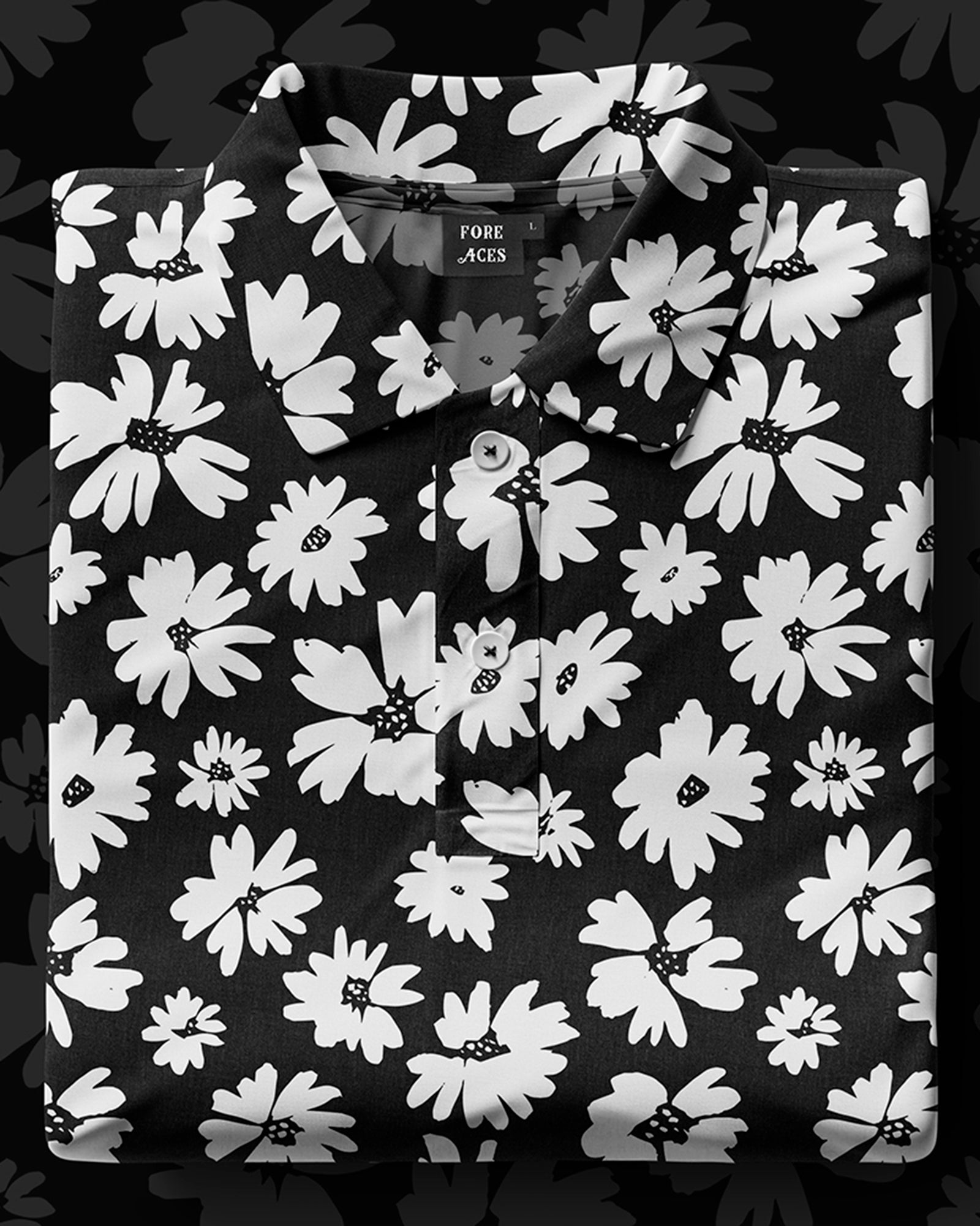 The wild side meets floral finesse for a golf wardrobe that's truly unique! This polo is a captivating blend of bold zebra stripes and delicate daisy patterns, creating a striking contrast that's sure to turn heads on the course. Stand out in style with the 'Zebra Daisy' Polo – not your average golf attire, but a statement piece for those who embrace individuality.