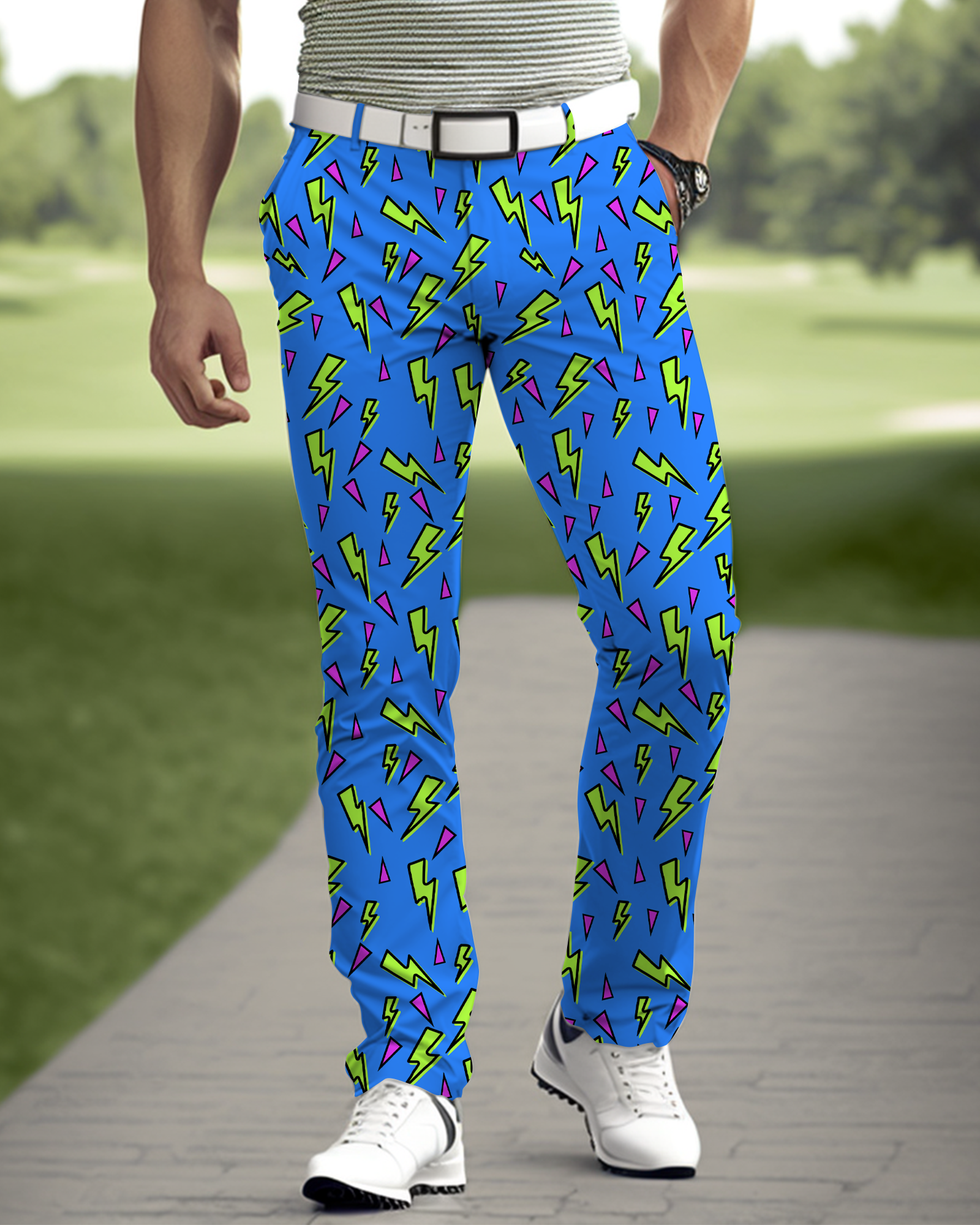 Turn heads on the golf course with the 'Flash Pants' and its striking lightning bolt design. These pants are perfect for golfers who want to bring a jolt of humor and style to their game, leaving others in awe of their electrifying fashion sense.