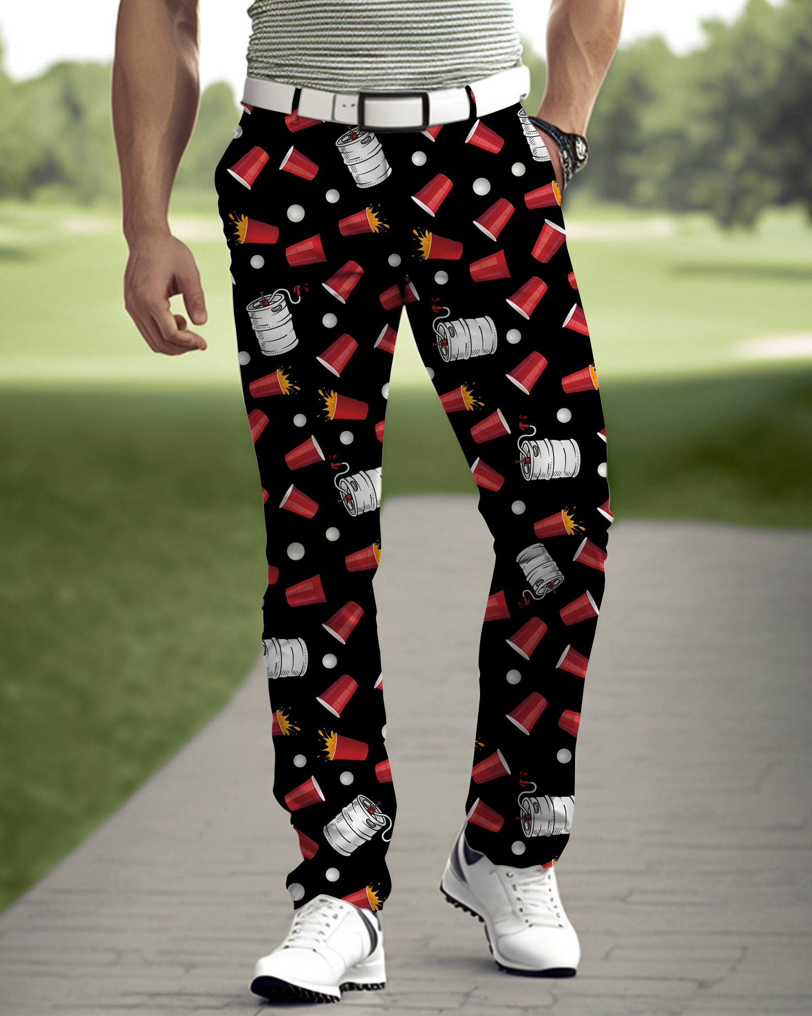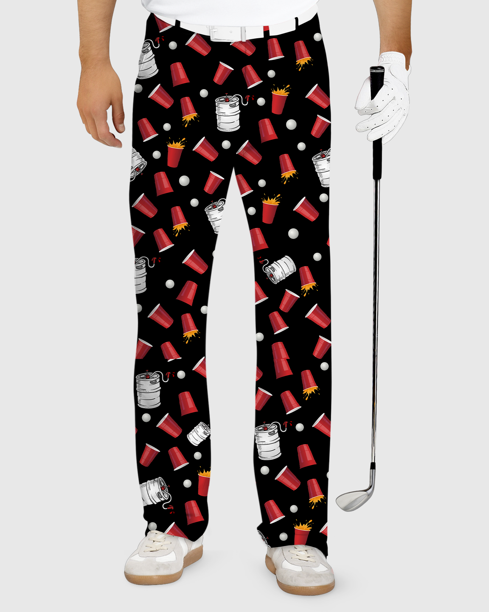 Tee off with a refreshing twist in our 'Kegs and Cups Pants.' They are the perfect attire for golfers who know that the best way to improve their swing is with a cold beverage in hand. Cheers to a hole-in-one!