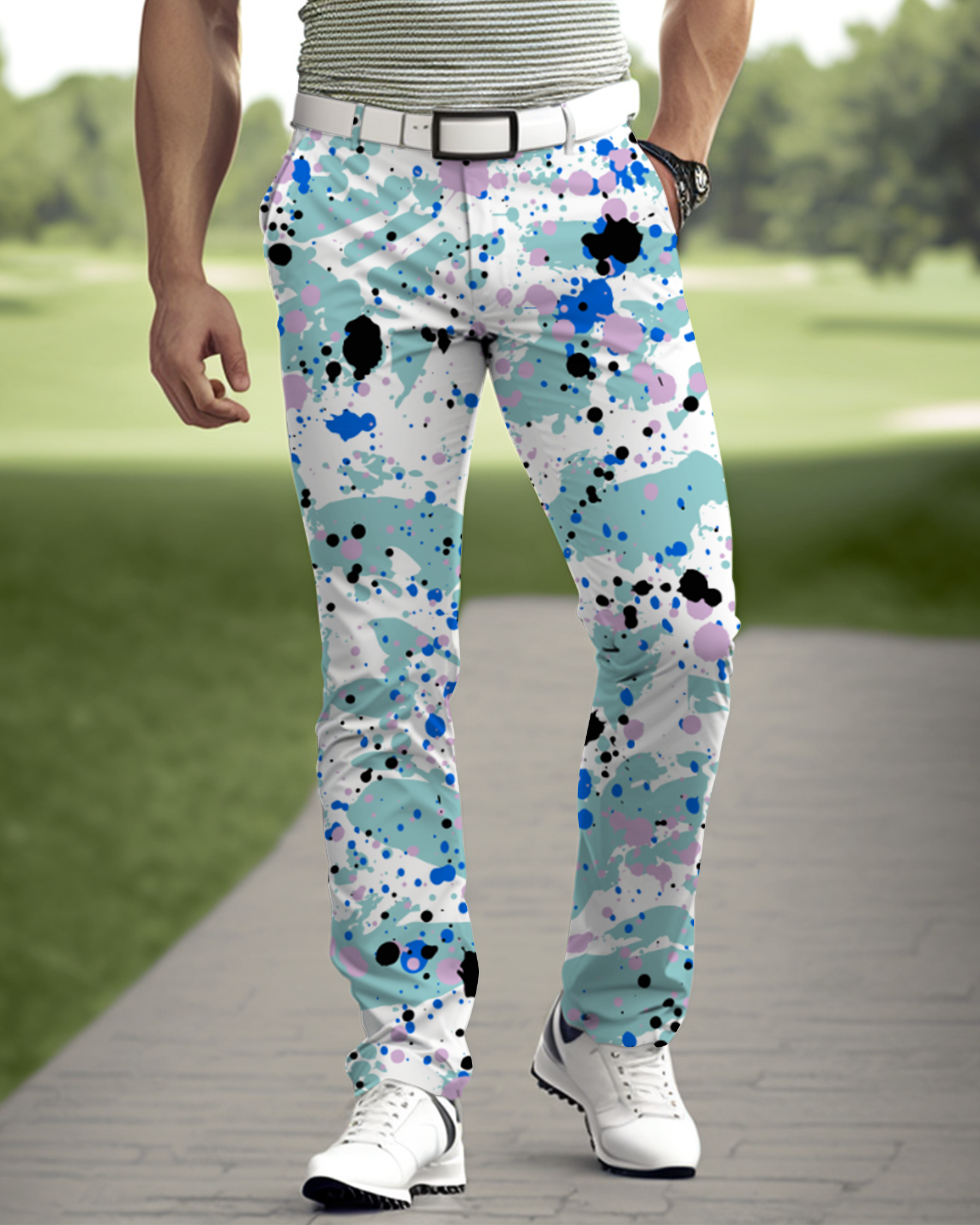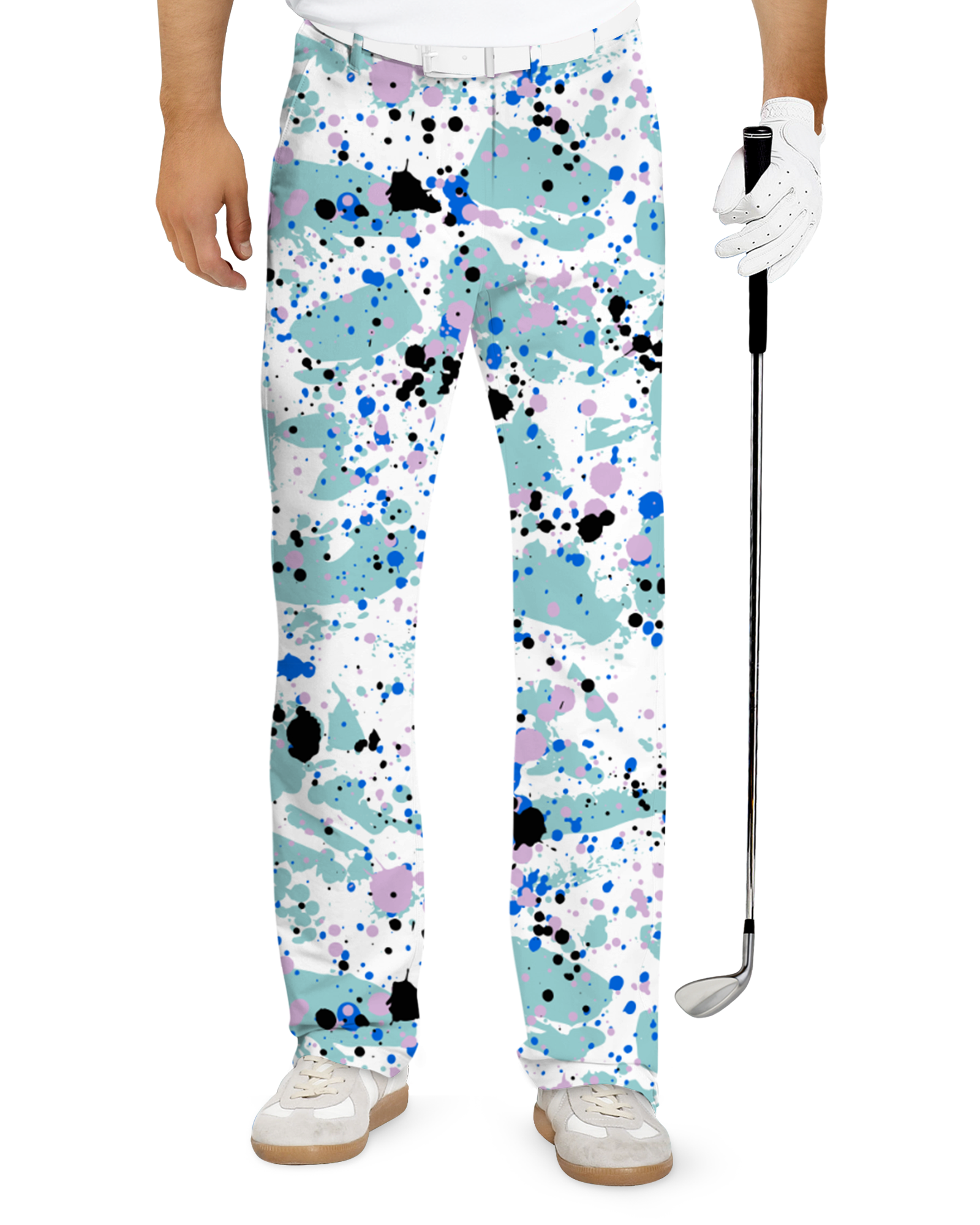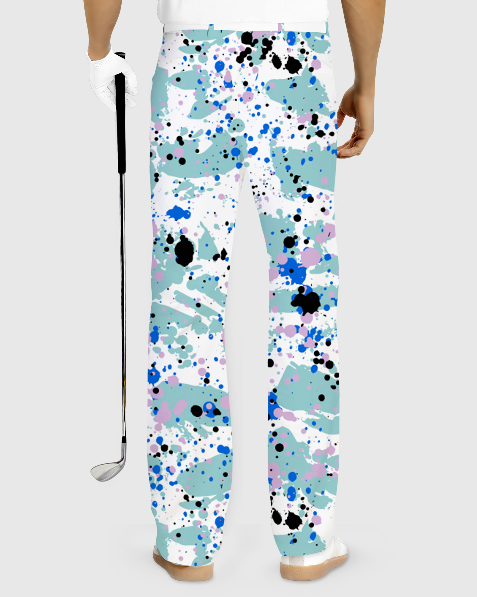 The 'Paint Splatter Blues Pants' is perfect for golfers who leave it all on the course. With its vibrant paint splatter design, you'll show everyone that you're not afraid to make a colorful mess while chasing that perfect swing!