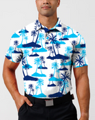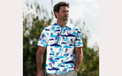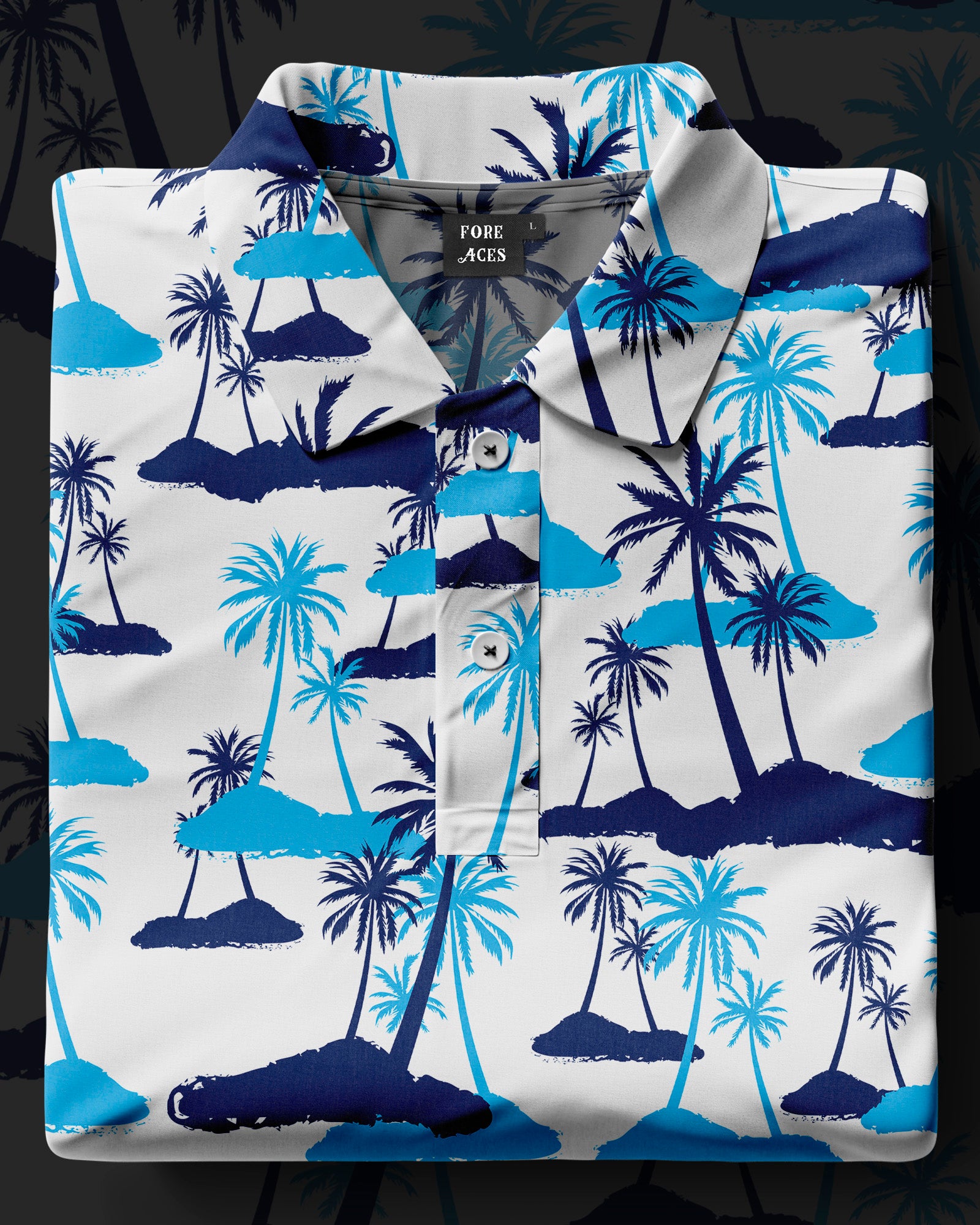 Nothing like the Blue Oasis Polo as it is the perfect addition to your vacation wardrobe. This stylish and comfortable shirt features a vibrant blue and white tropical print, adding a touch of paradise to your look. Crafted with high-quality materials, this polo offers both style and comfort, making it ideal for any tropical getaway or casual outing. Embrace the relaxed vibes and stand out in our Blue Oasis Polo.