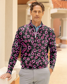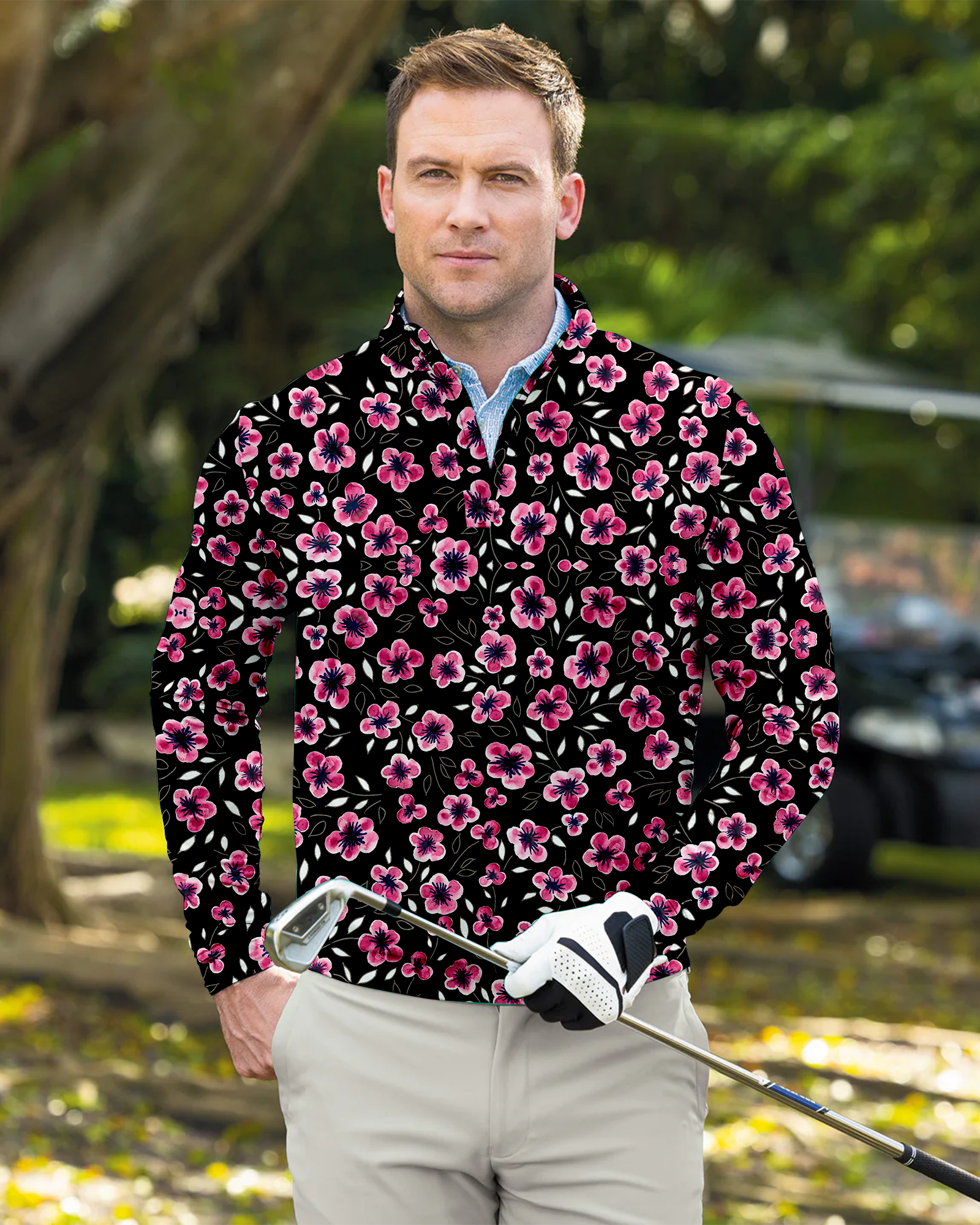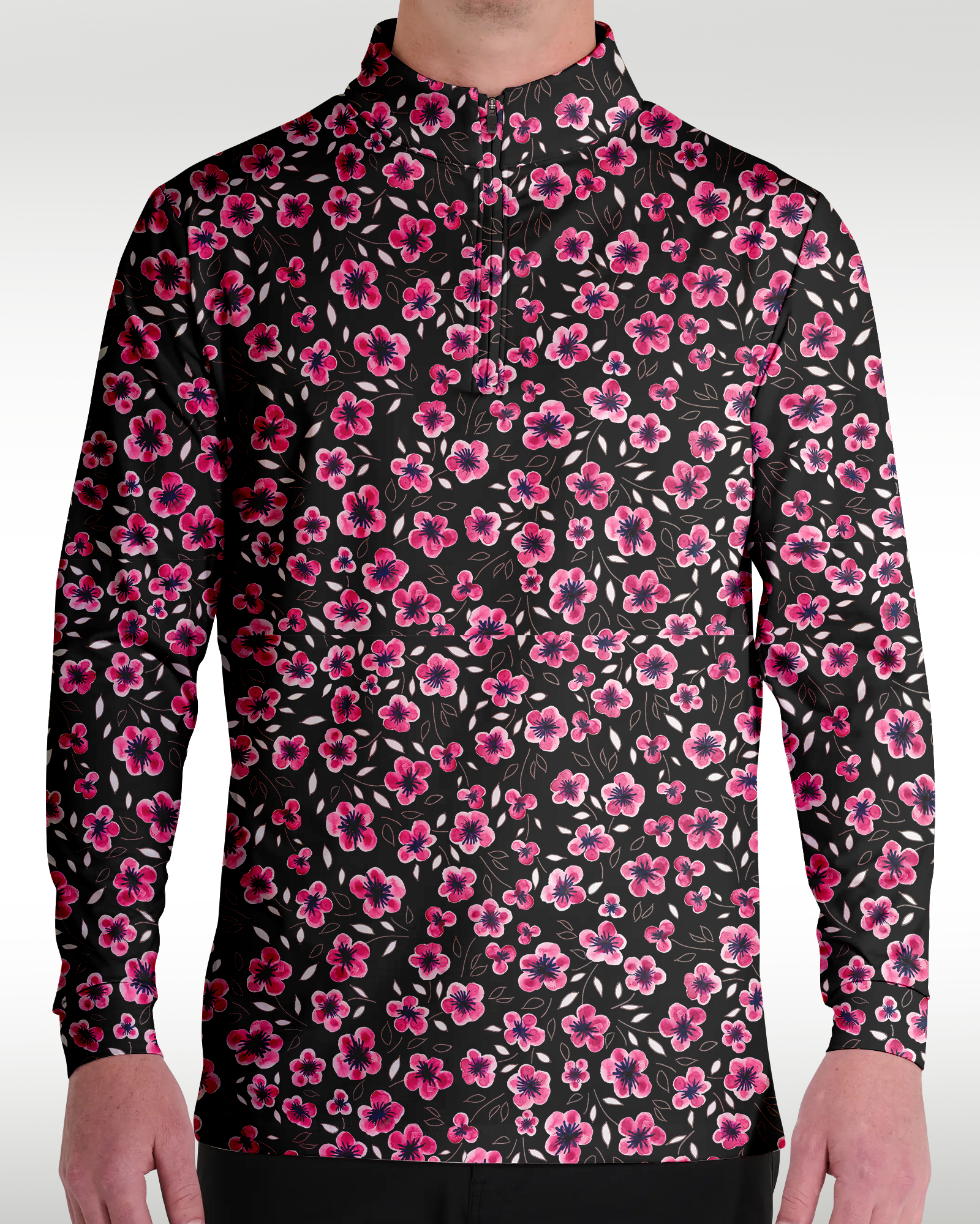 Ready to unleash your inner flower power on the fairways? Our 'Floral Out Quarter-Zip' is here to ensure you're the blooming sensation of the golf course! Bloom boldly on your competition.