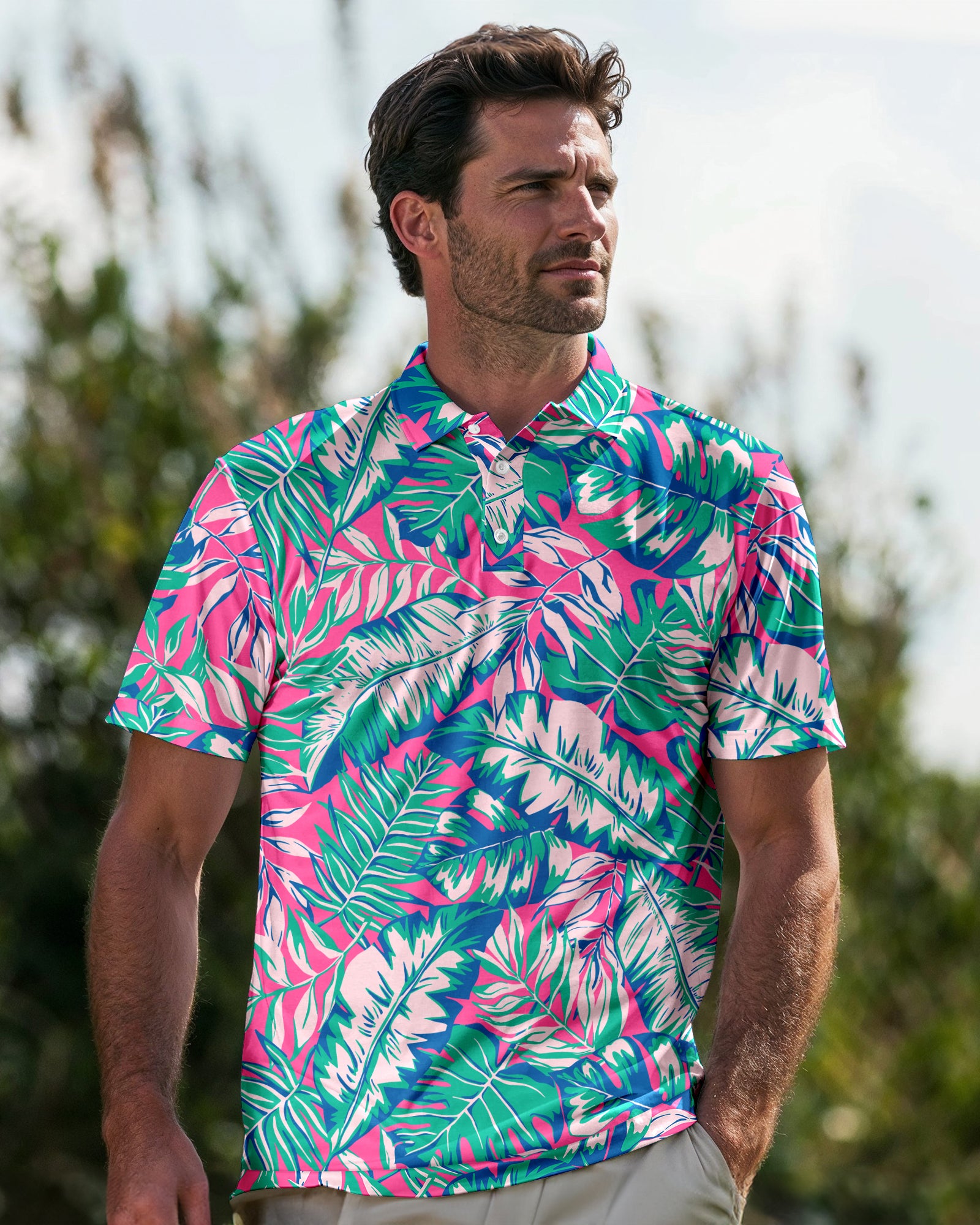 Elevate your golf game with our Jungle Polo, designed for both style and performance on the course. Made with high-quality materials, this polo offers a comfortable fit and allows for easy movement during your swing. The leafy pattern adds a touch of flair to your golf wardrobe, making you stand out on the green. Stay cool and confident as you conquer the course in our Jungle Polo.