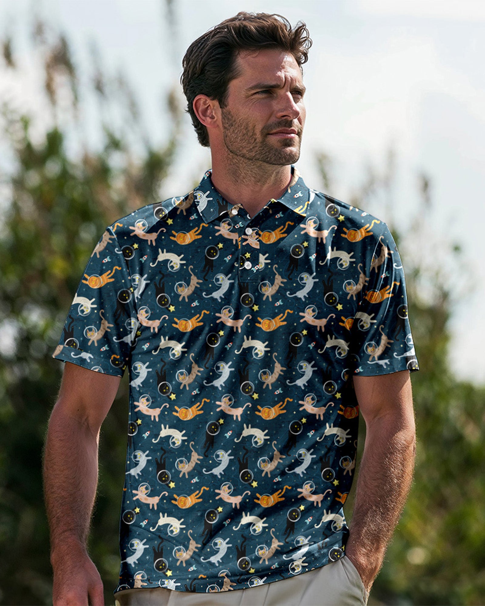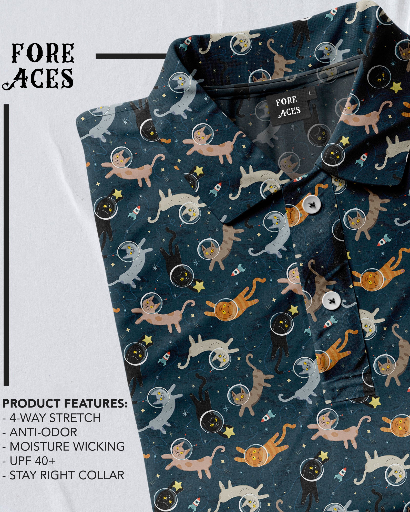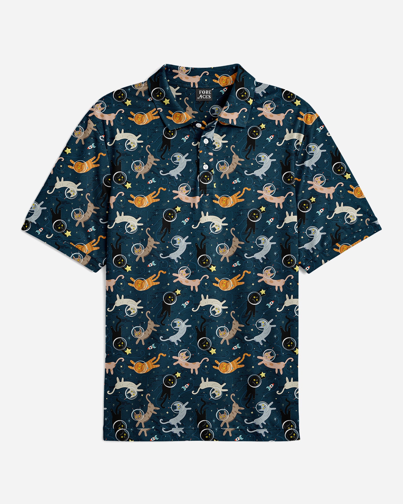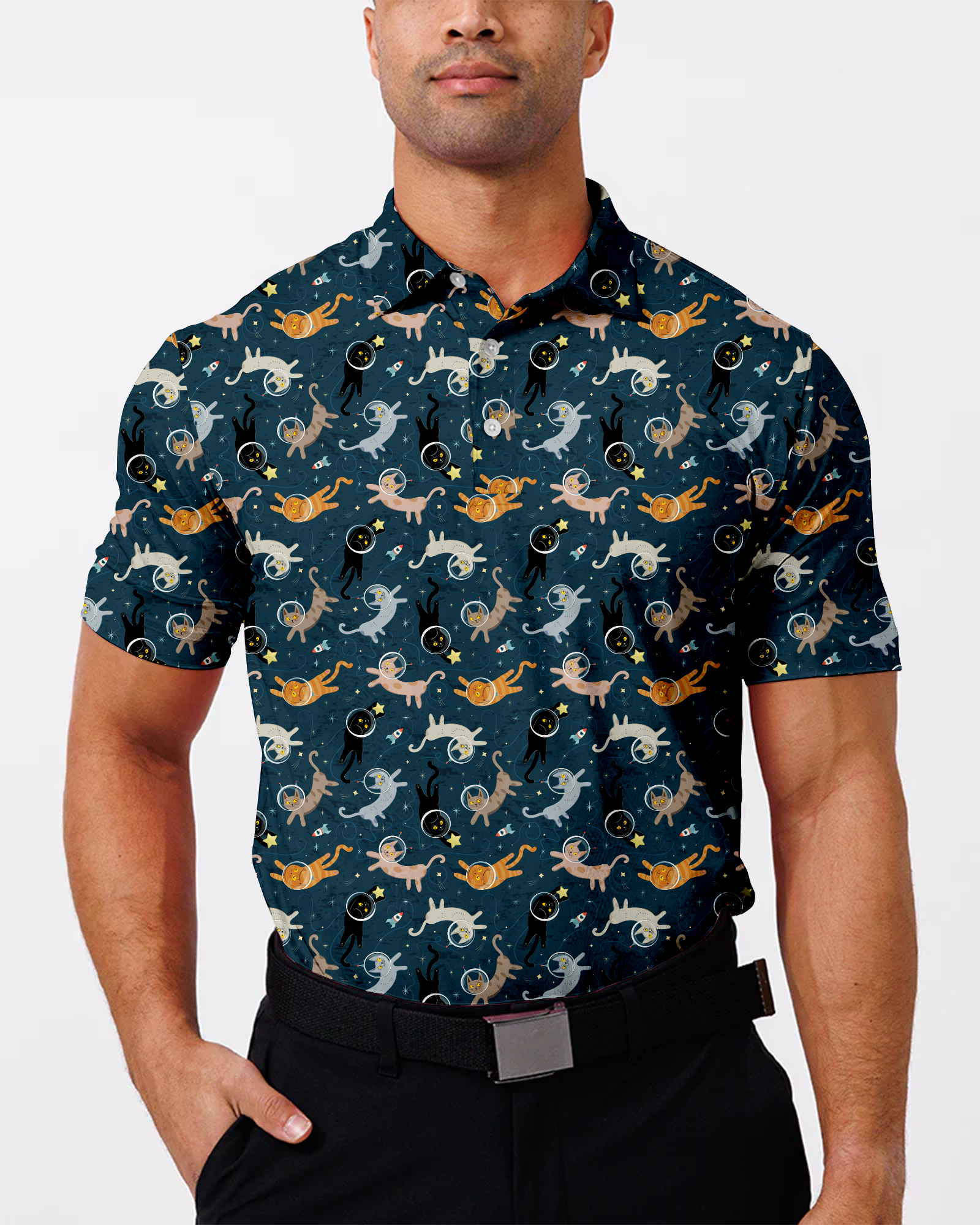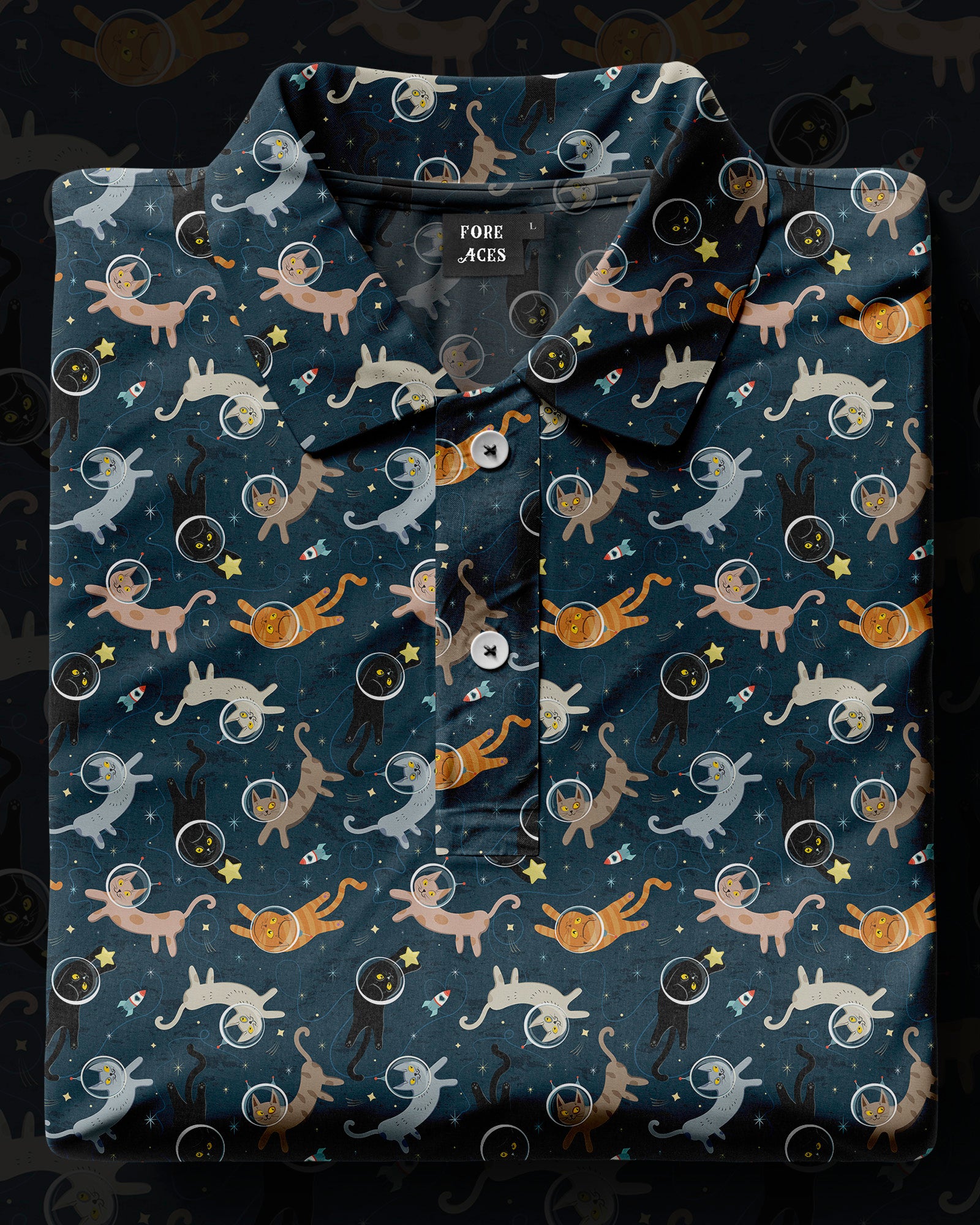 Introducing our Outer Space Cats Polo, featuring a fun and unique design of cats in space. Made with high-quality materials, this polo is not only stylish but also comfortable to wear. Whether you're a cat lover or a space enthusiast, this polo is the perfect addition to your wardrobe. Get ready to turn heads and start conversations with this one-of-a-kind polo.