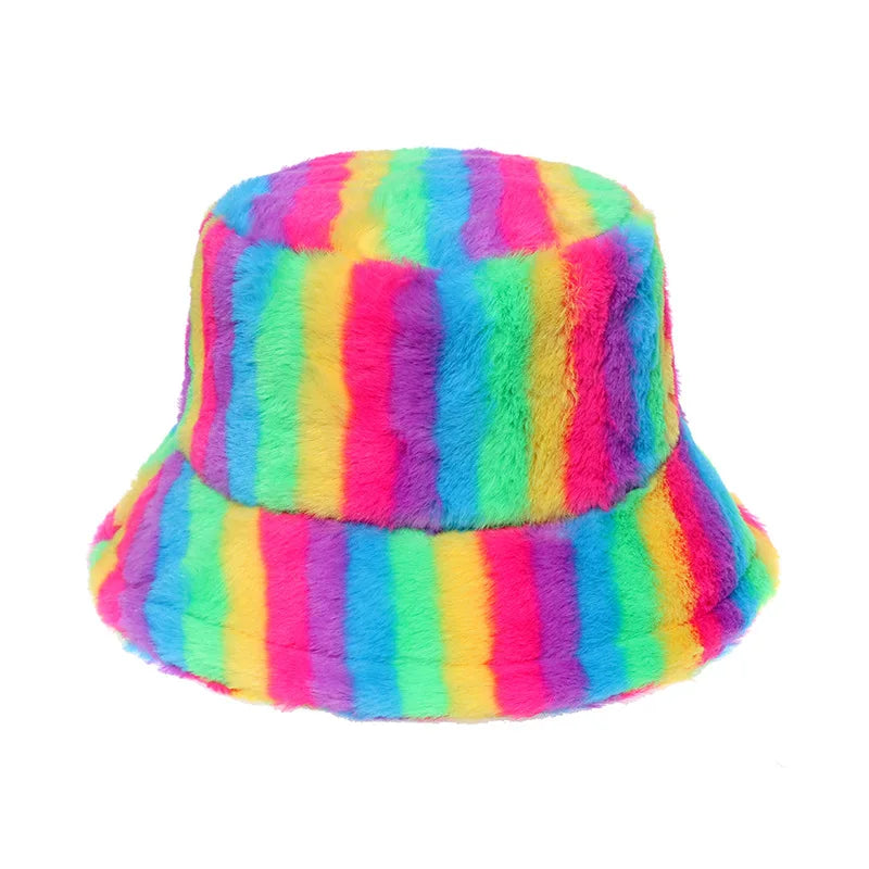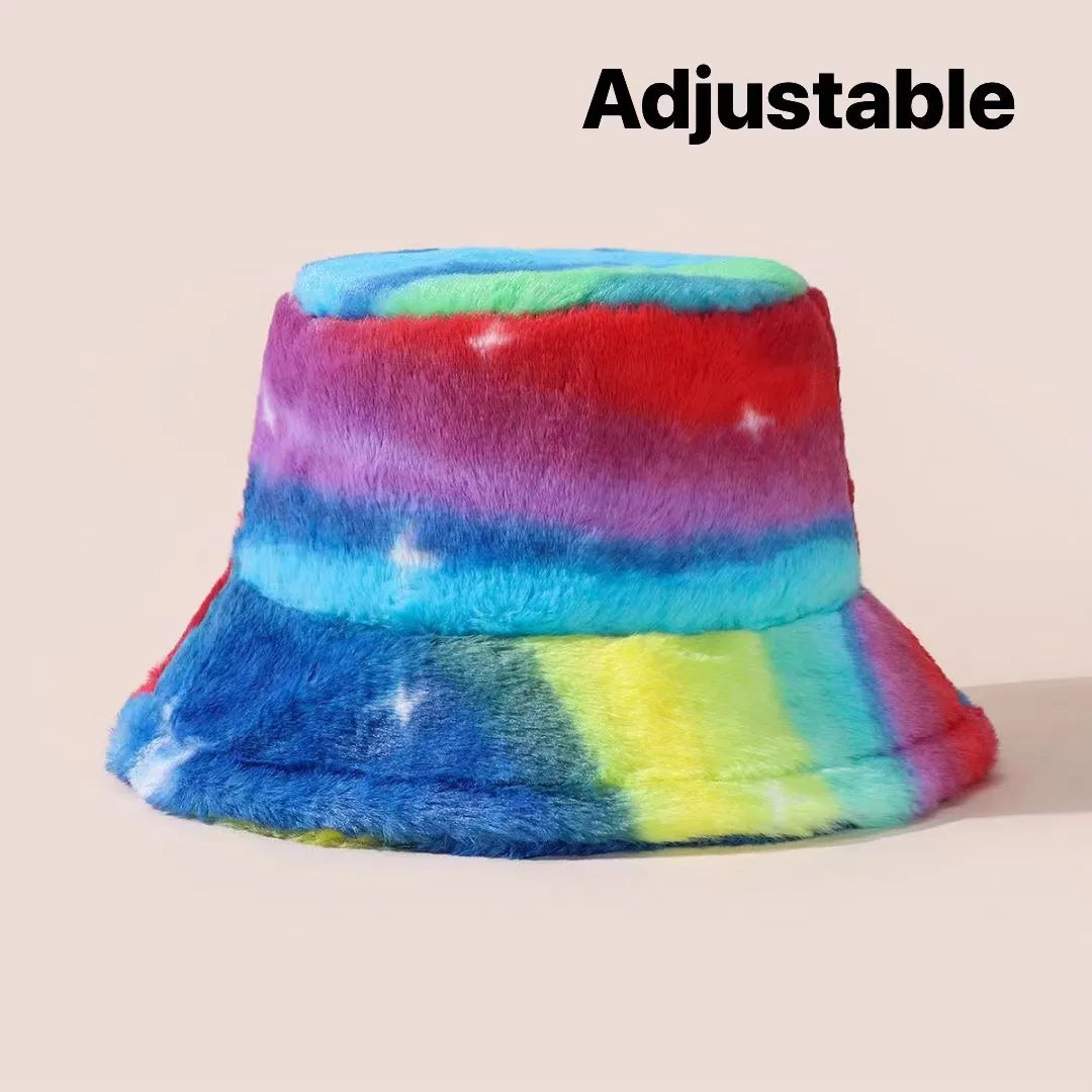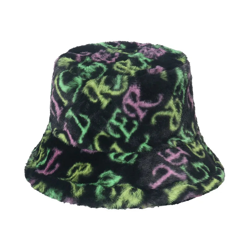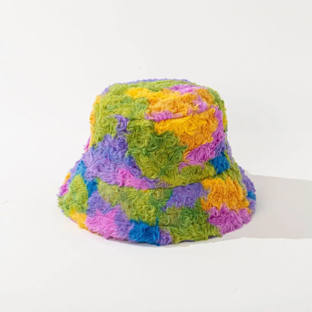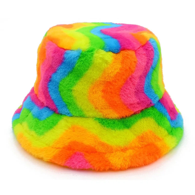 Add a touch of psychedelic style to your outfit with our Animal Fuzzy Bucket Hat. This fun and funky hat features a fuzzy texture and a unique, colorful pattern.